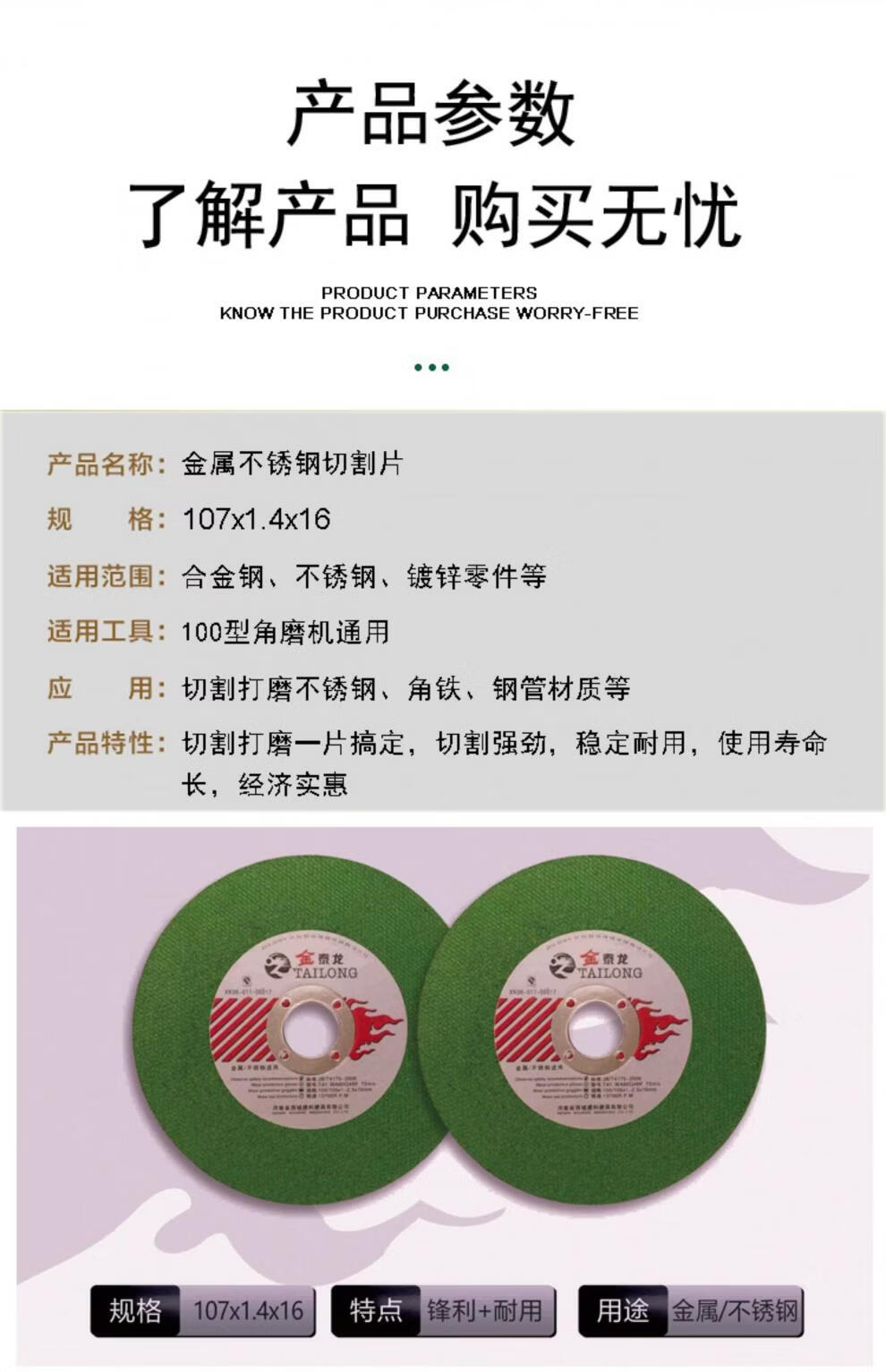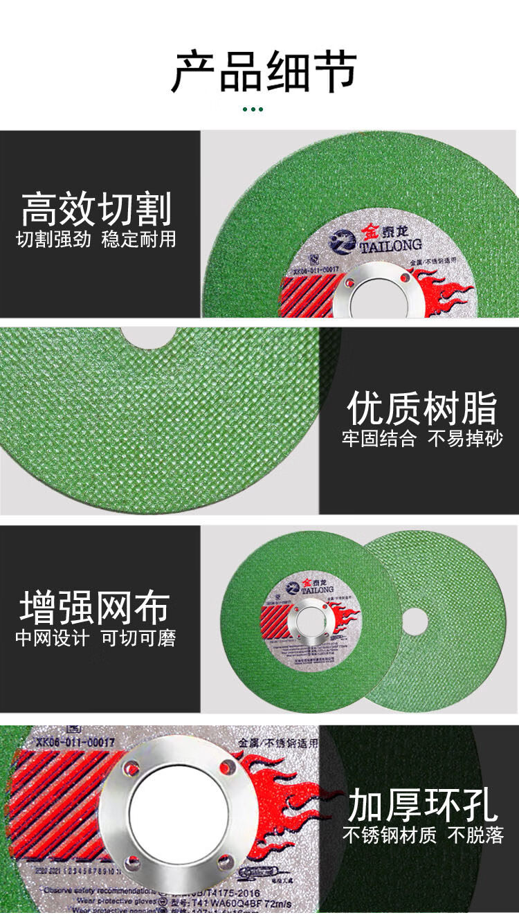 Cutting blade angle grinder cutting blade angle grinder grinding wheel blade 100 stainless steel metal saw blades complete hand grinding wheel blade Jin Tailong (green) 100 pieces