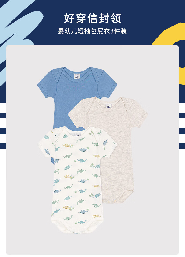 PETIT BATEAU 2026 spring and summer new product French sailing children's clothing baby crawling clothes 3-piece A0FOJ multi-color A0FOJ99 90cm