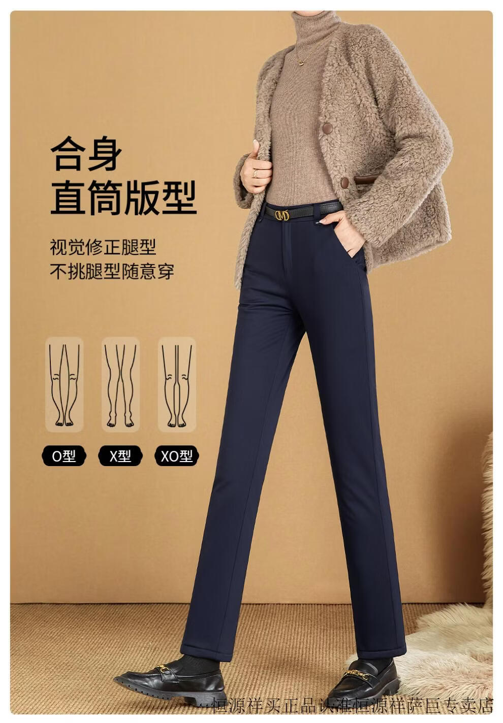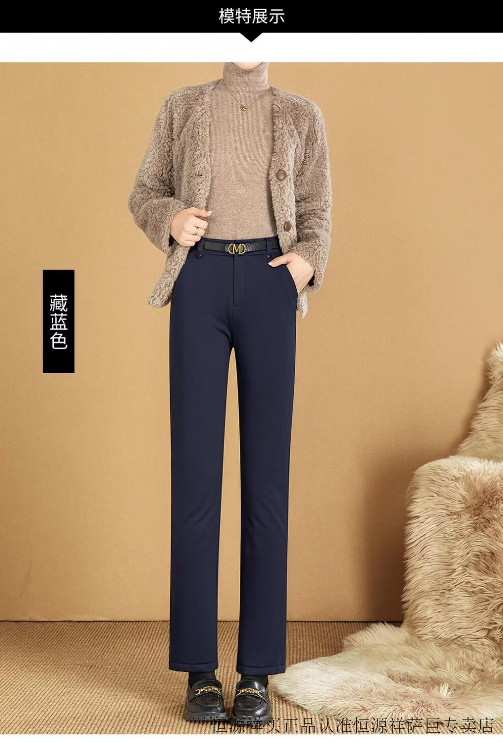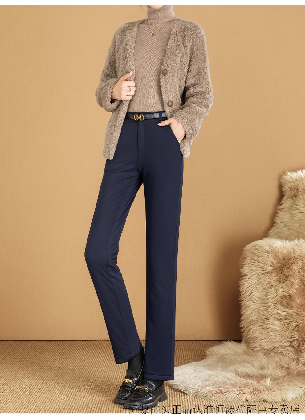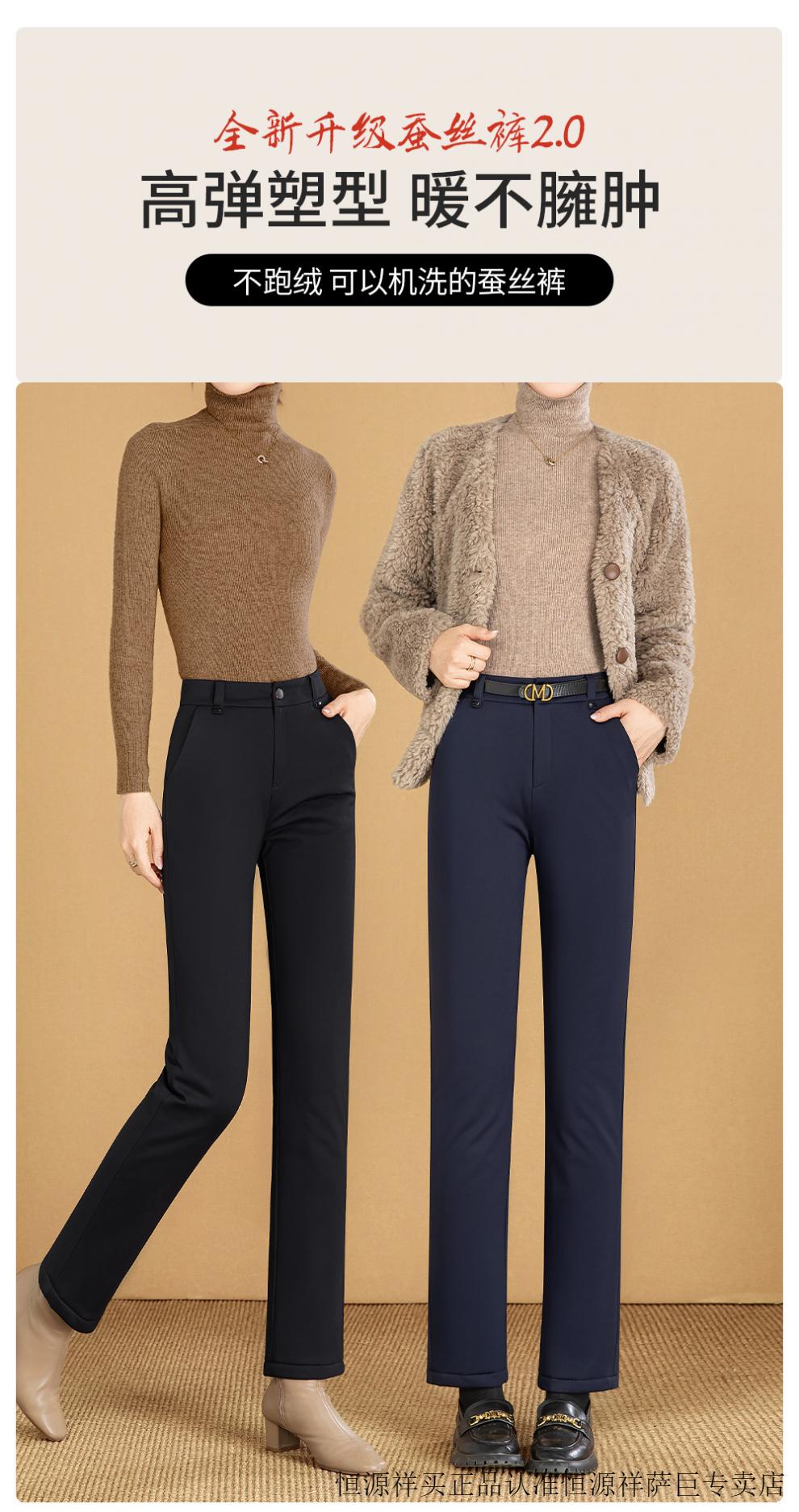 Hengyuanxiang brand mulberry silk straight cotton pants for women in winter thickened high-waisted slim warm baguette pants winter suit trousers blue extended style winter thickened pants length 102cm 27 2 feet