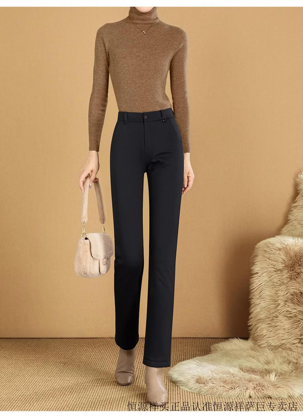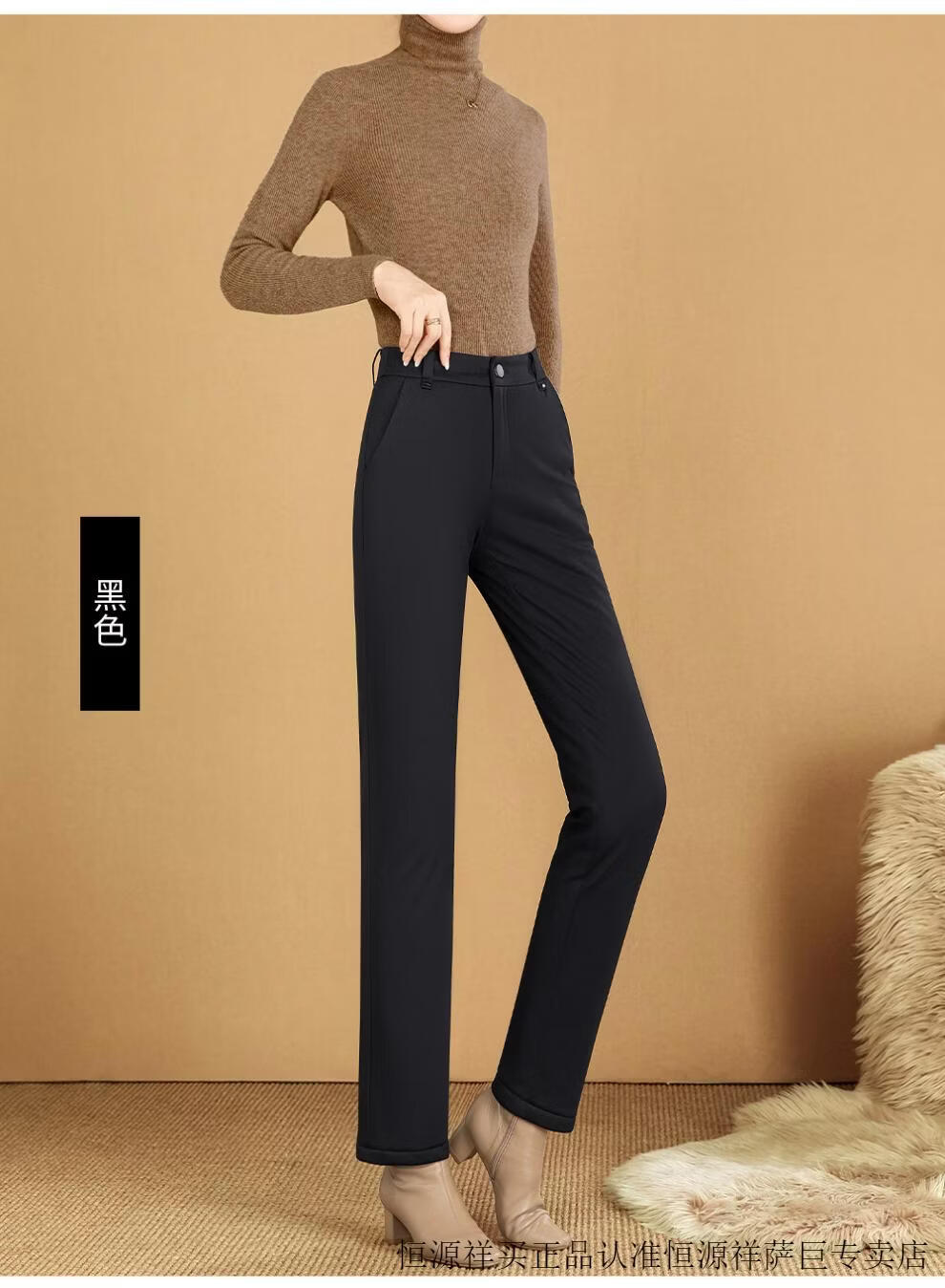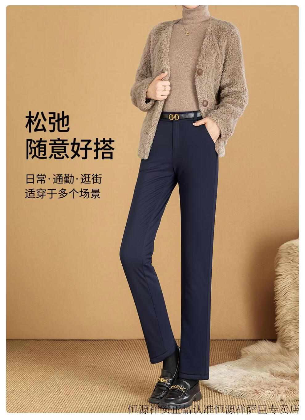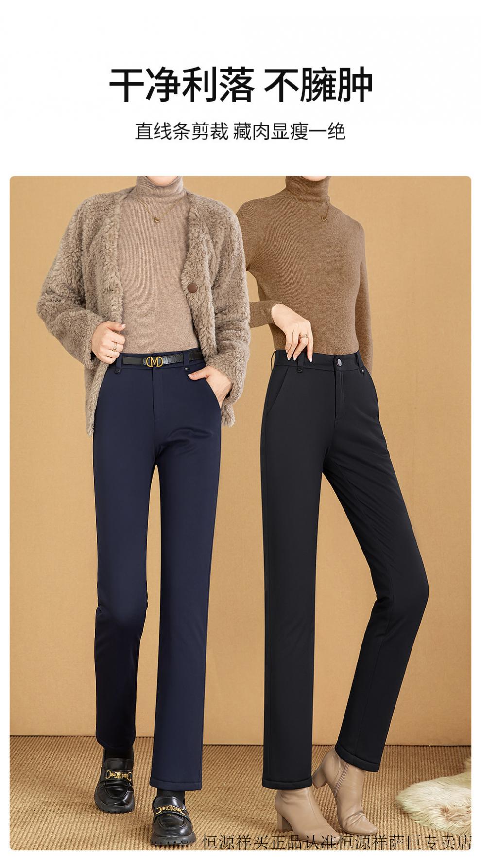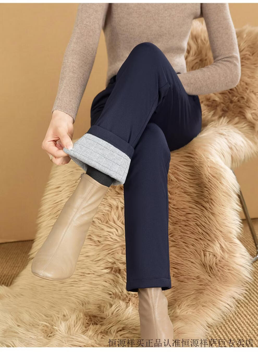 Hengyuanxiang brand mulberry silk straight cotton pants for women in winter thickened high-waisted slim warm baguette pants winter suit trousers blue extended style winter thickened pants length 102cm 27 2 feet