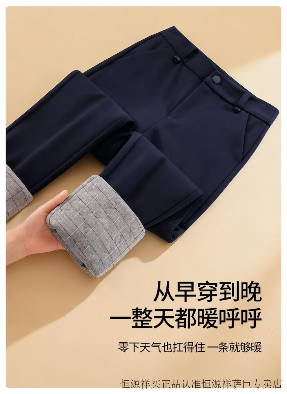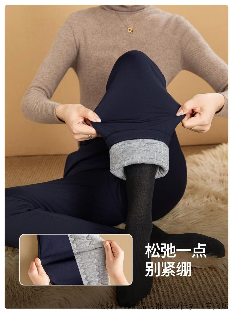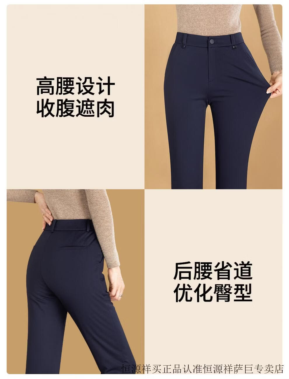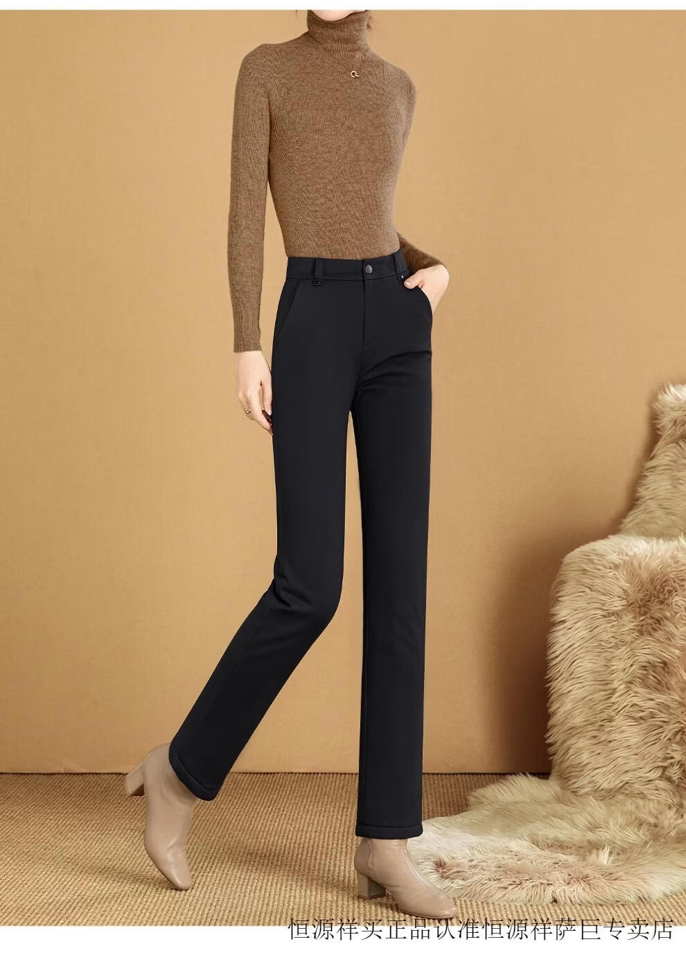Hengyuanxiang brand mulberry silk straight cotton pants for women in winter thickened high-waisted slim warm baguette pants winter suit trousers blue extended style winter thickened pants length 102cm 27 2 feet