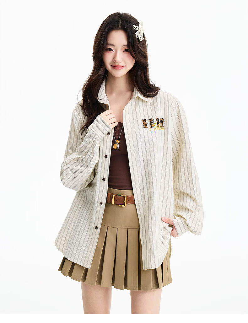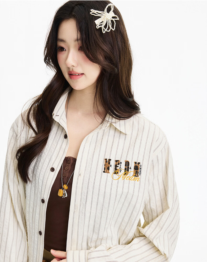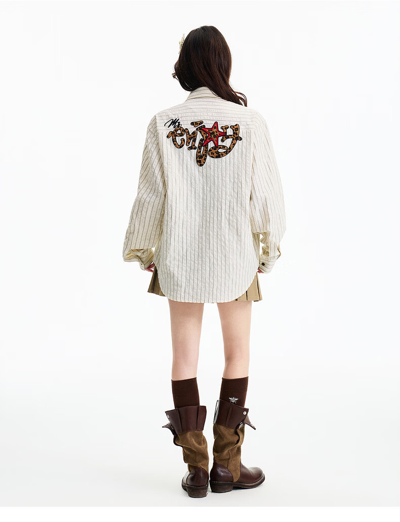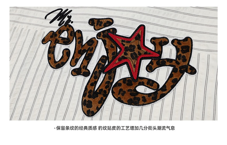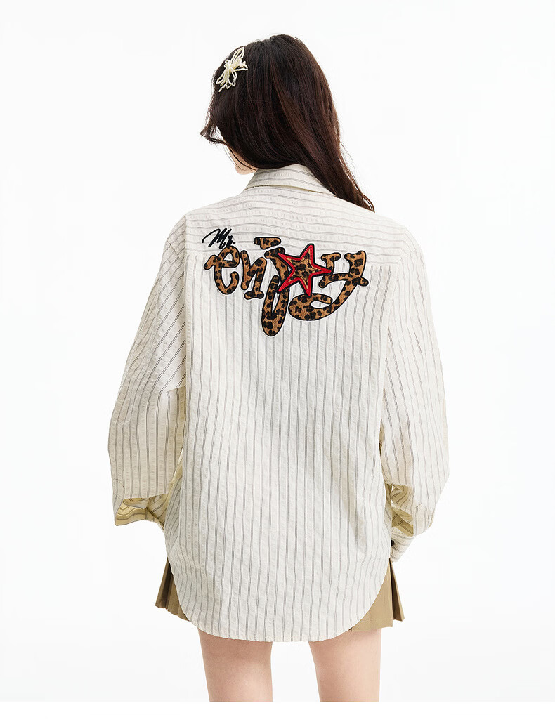 MEDM Leopard Print Leather Casual Lapel Shirt Trendy Brand Street Men's and Women's Loose Striped Cardigan Top Spring and Autumn Beige S