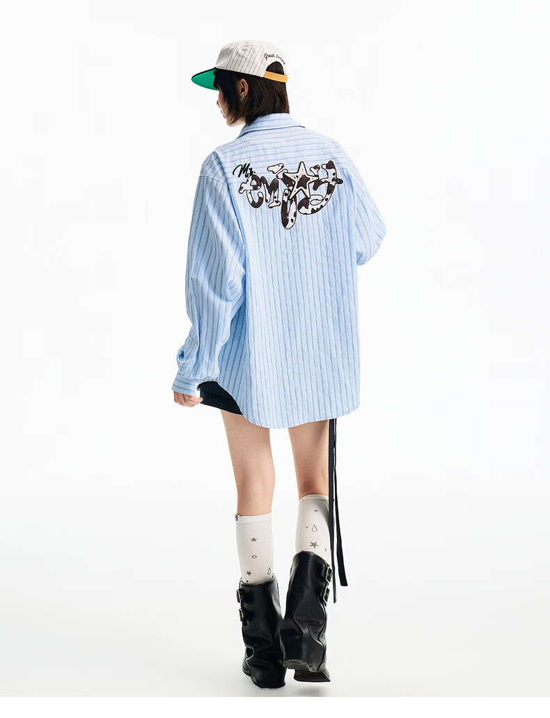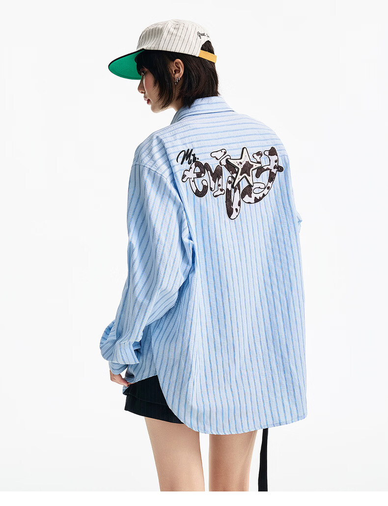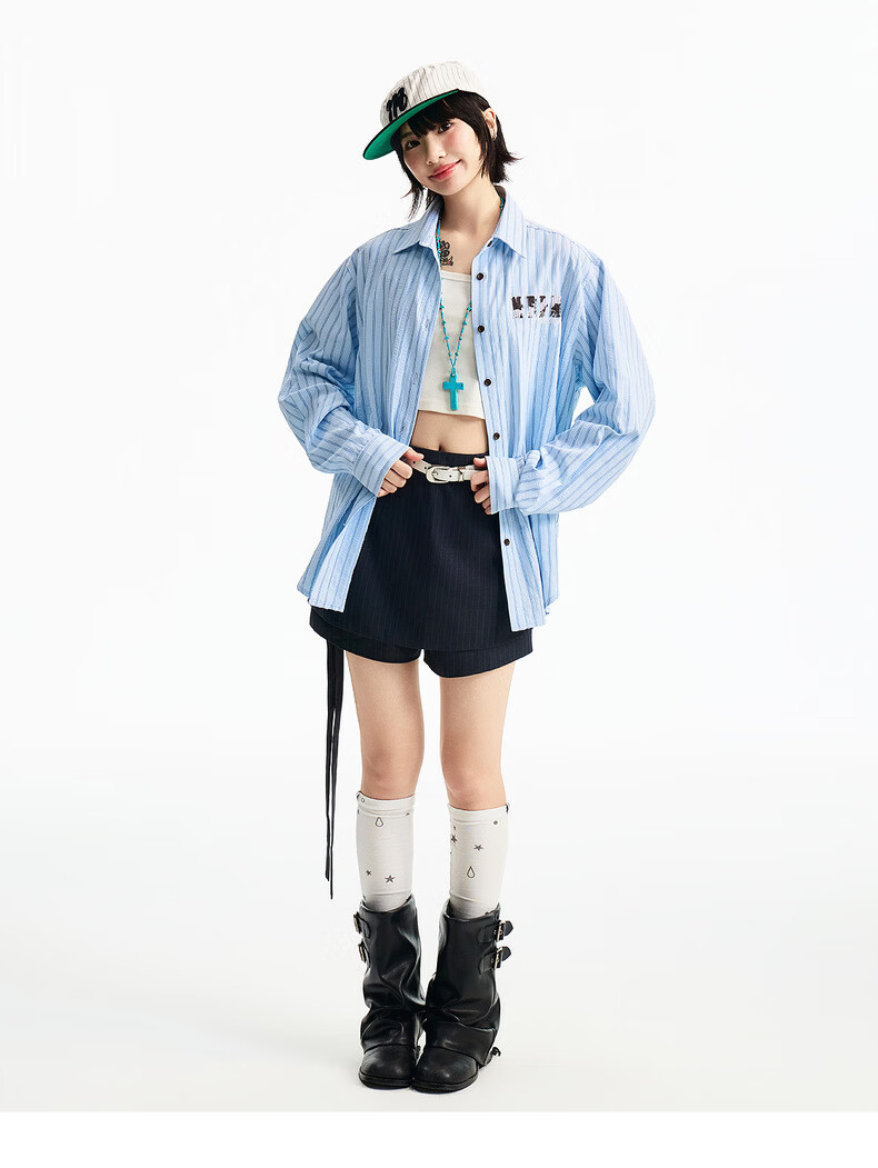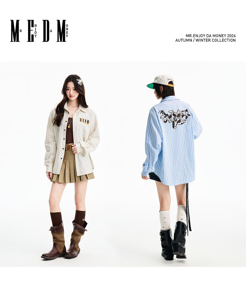MEDM Leopard Print Leather Casual Lapel Shirt Trendy Brand Street Men's and Women's Loose Striped Cardigan Top Spring and Autumn Beige S
