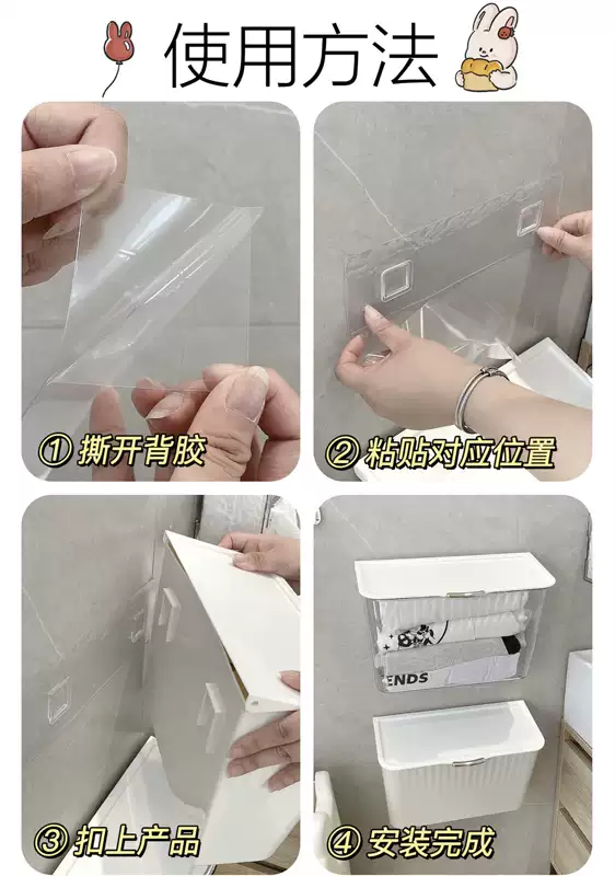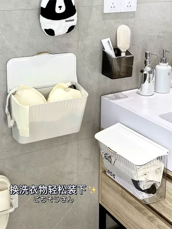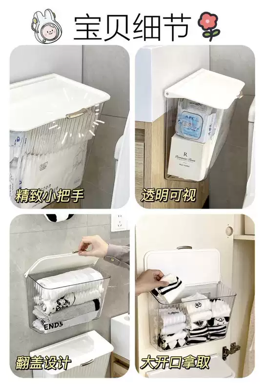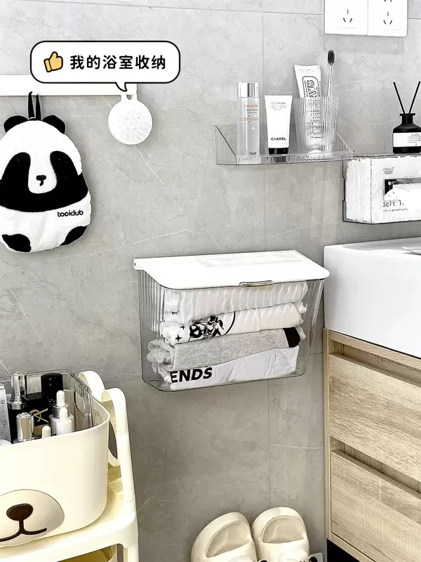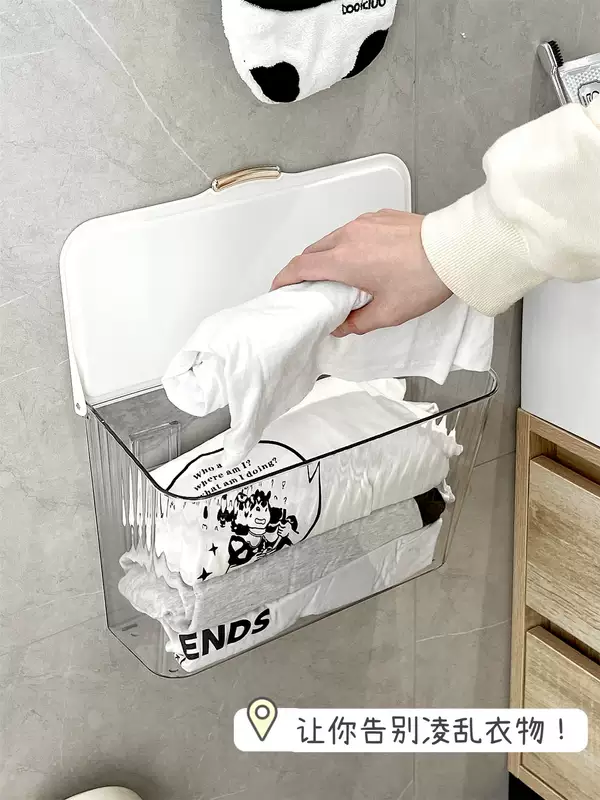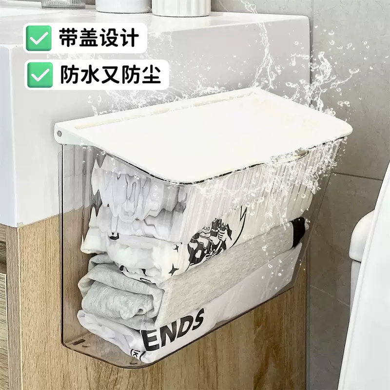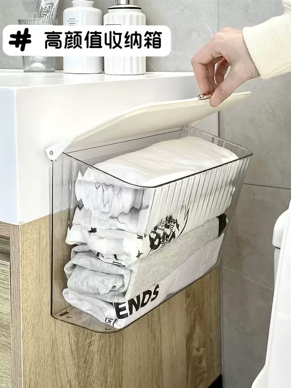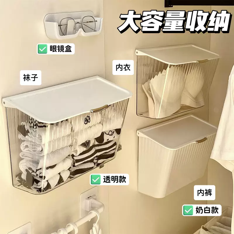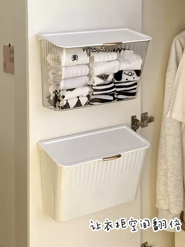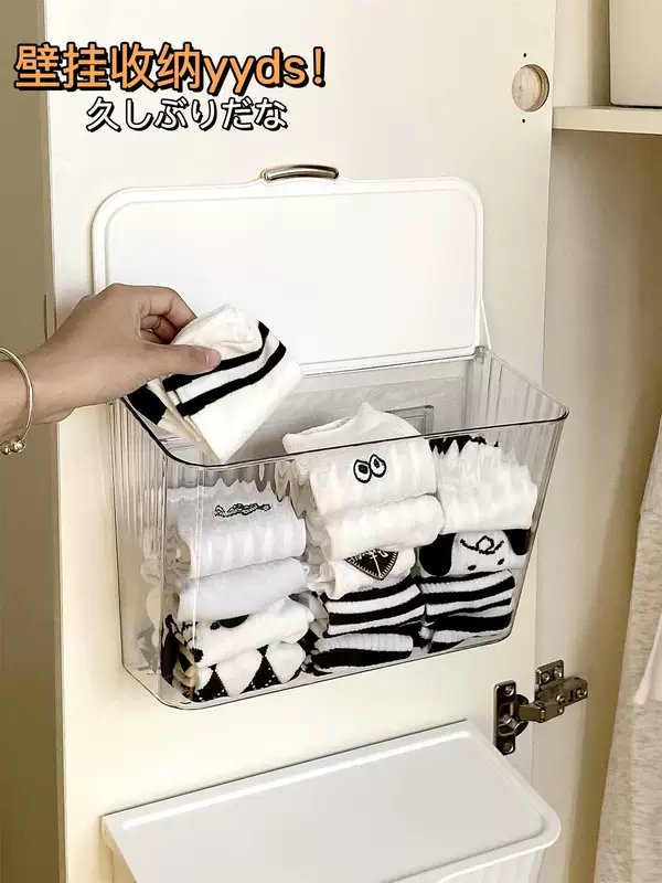 Yusenyi sock storage box wall-mounted underwear storage artifact hanging home dormitory wardrobe clothing storage rack cream style wall-mounted storage box x transparent free adhesive backing