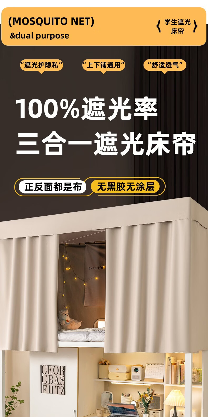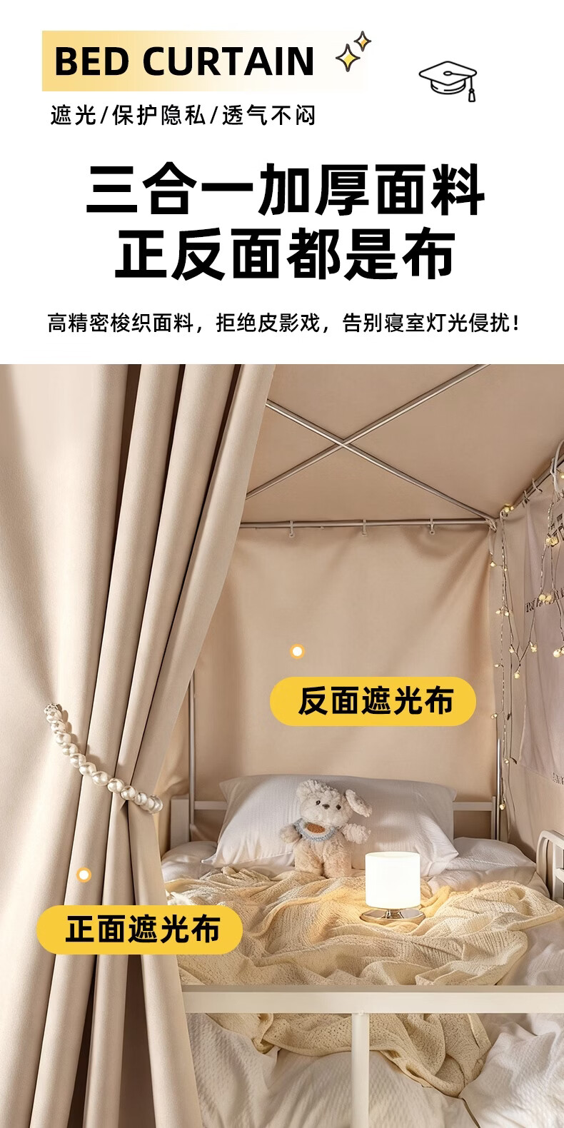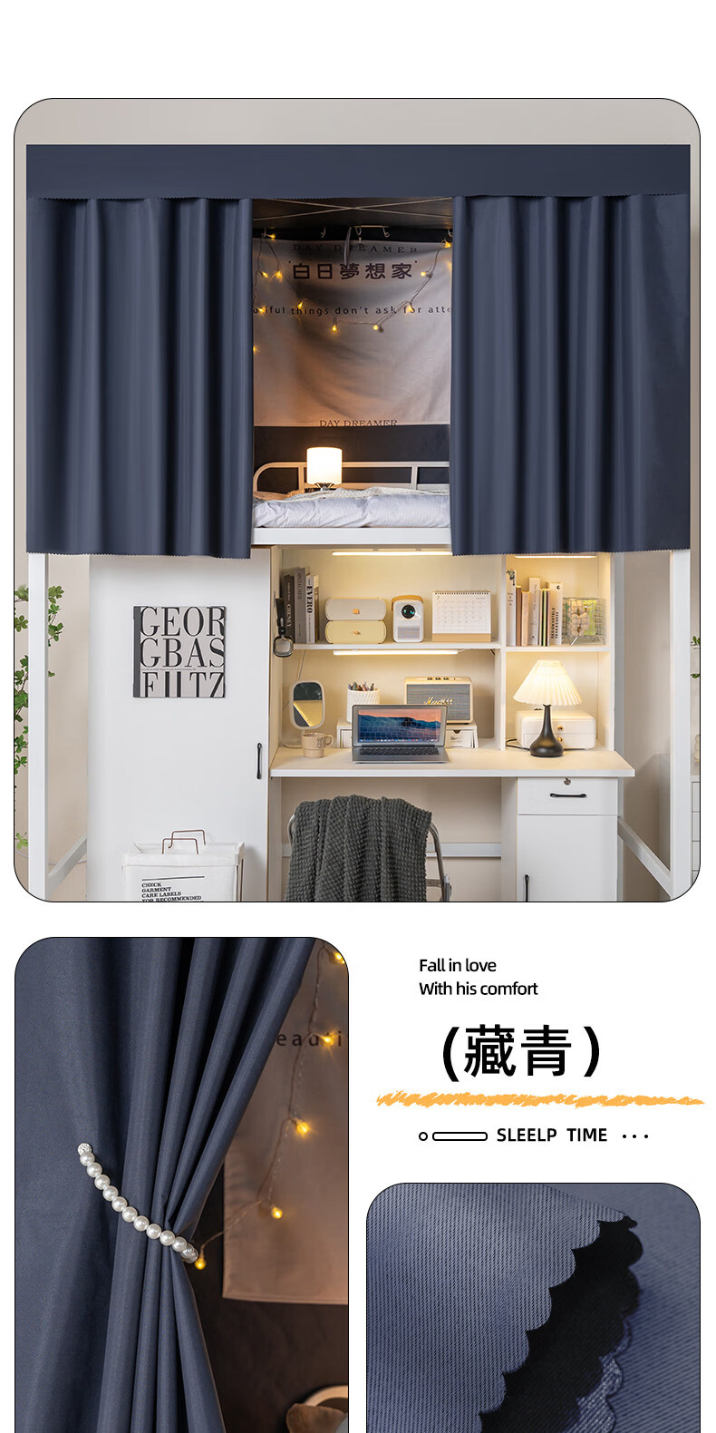 Mengshina thickened strong blackout student dormitory bed curtain upper and lower bunks for men and women's dormitory privacy curtain curtain blackout cloth Matcha green 100% full blackout/cloth inside and outside/uncoated 1.5m high 2 curtains 3 sides