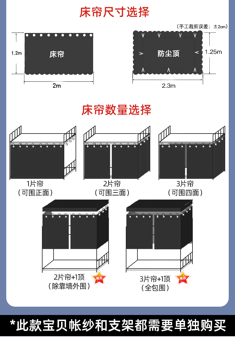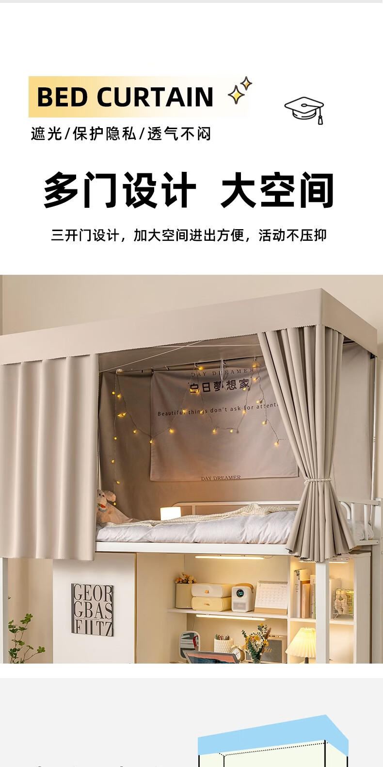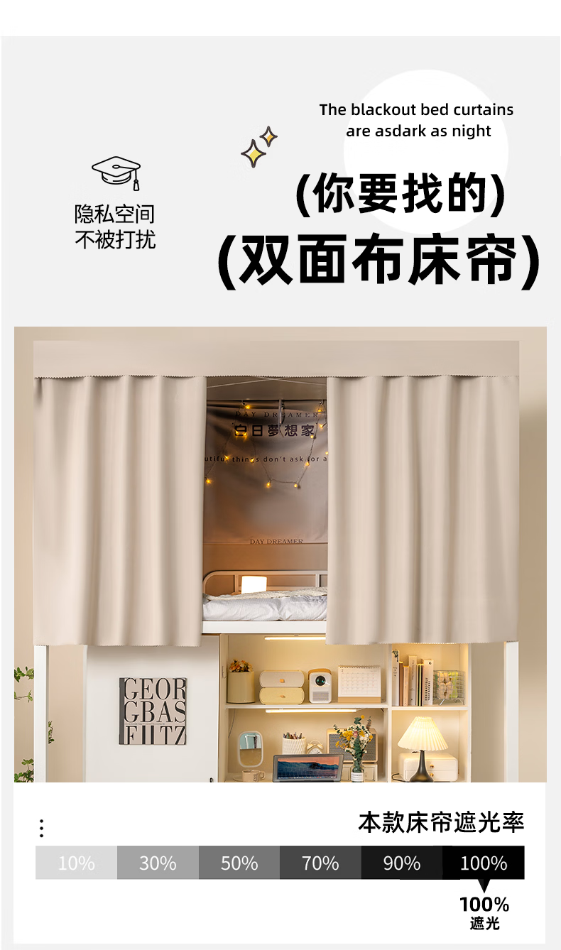 Mengshina thickened strong blackout student dormitory bed curtain upper and lower bunks for men and women's dormitory privacy curtain curtain blackout cloth Matcha green 100% full blackout/cloth inside and outside/uncoated 1.5m high 2 curtains 3 sides