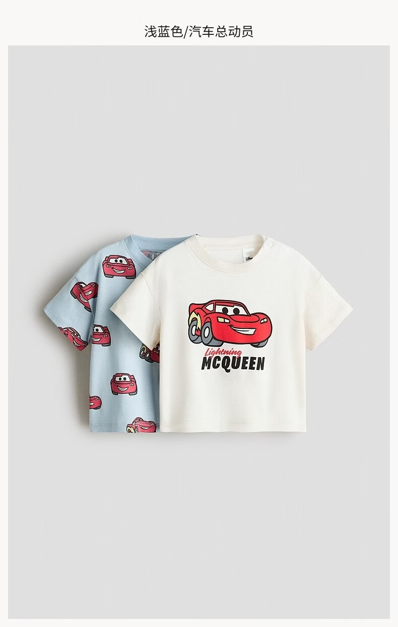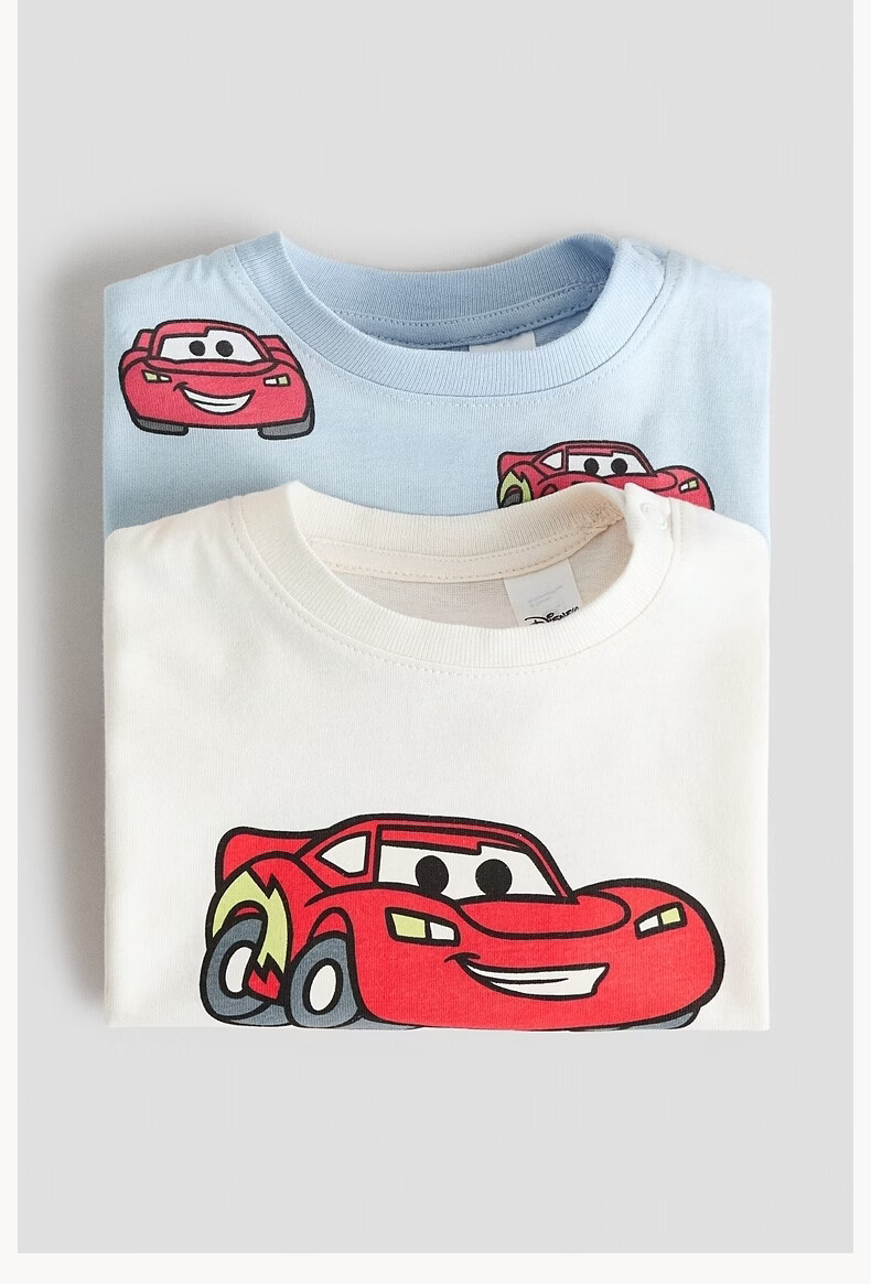 H&M 2026 new spring children's clothing baby boy 2-piece printed T-shirt 1315882 light blue/Cars 73 73/48 (6-9M)