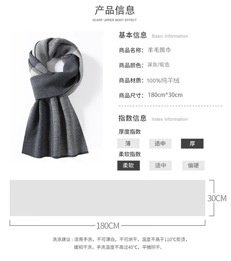 EGW international luxury brand 100% pure cashmere men's winter warm thickened scarf birthday festival fashion gift box dark gray gift box