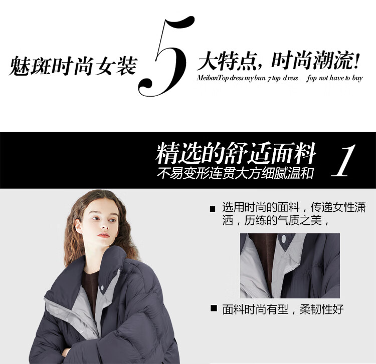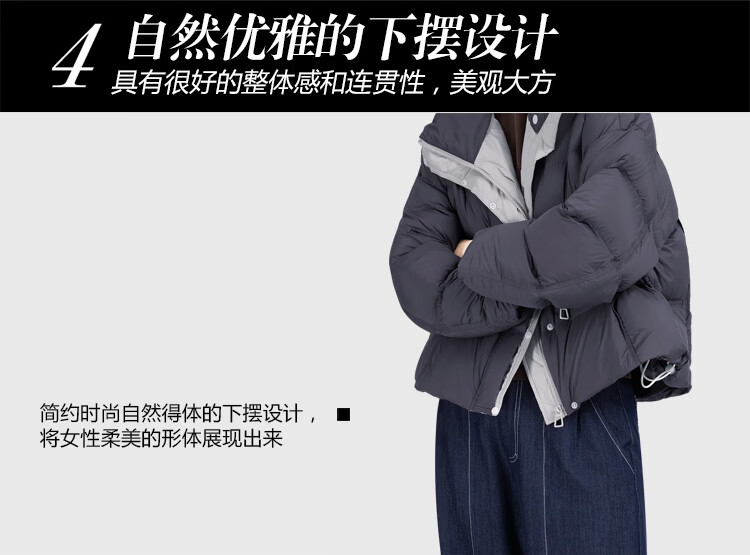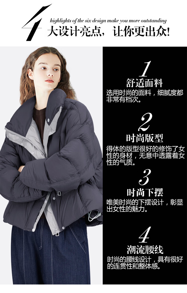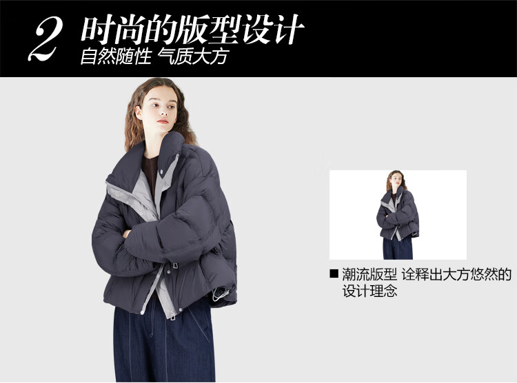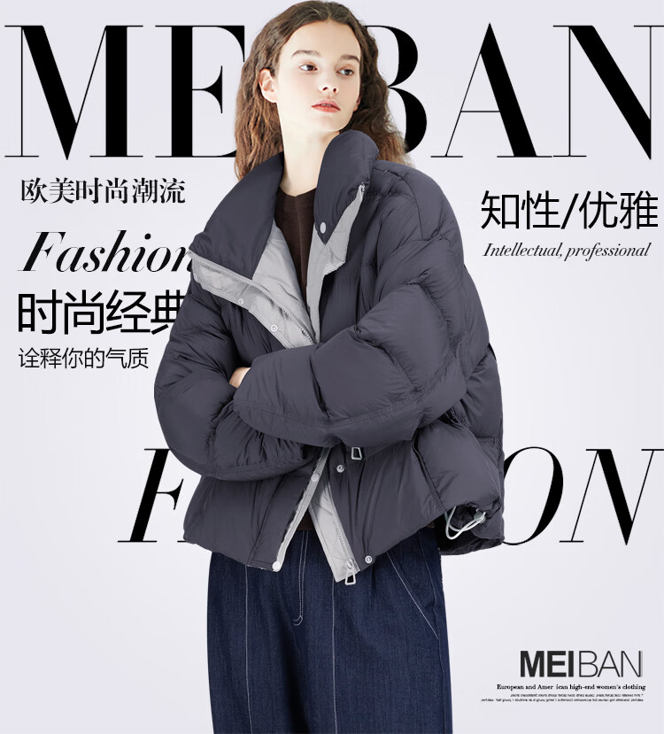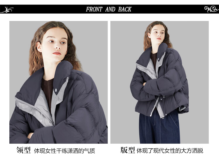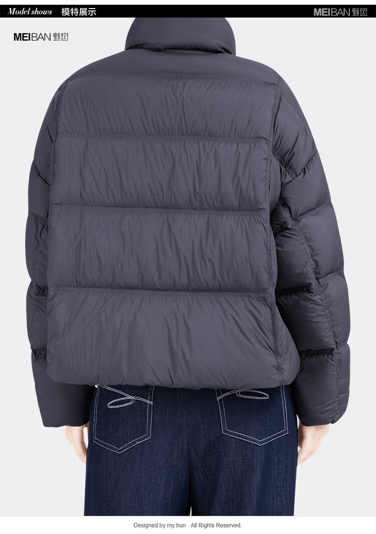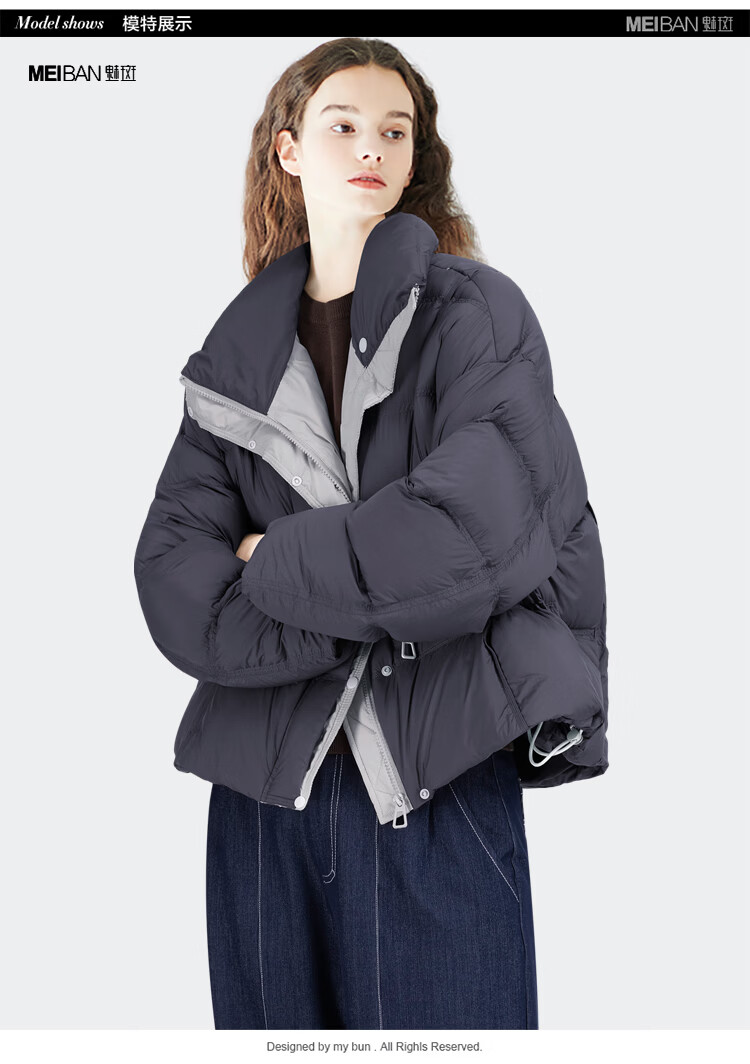 Charm Spot Loose Stand Collar Short Design Contrast Color Down Jacket Women's 2025 Winter New Warm Bread Jacket Navy Blue M