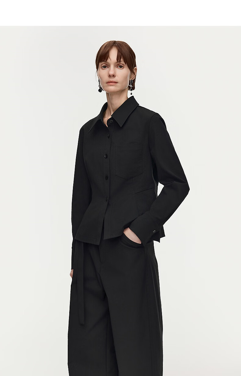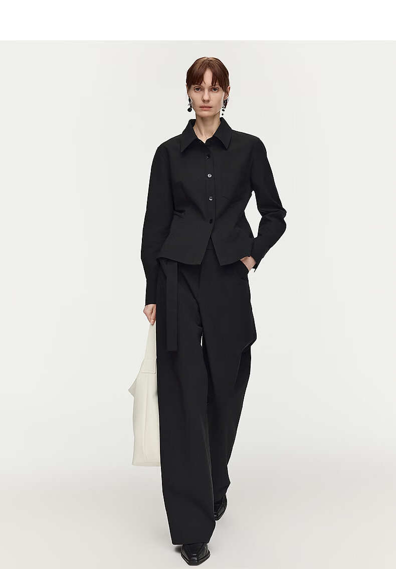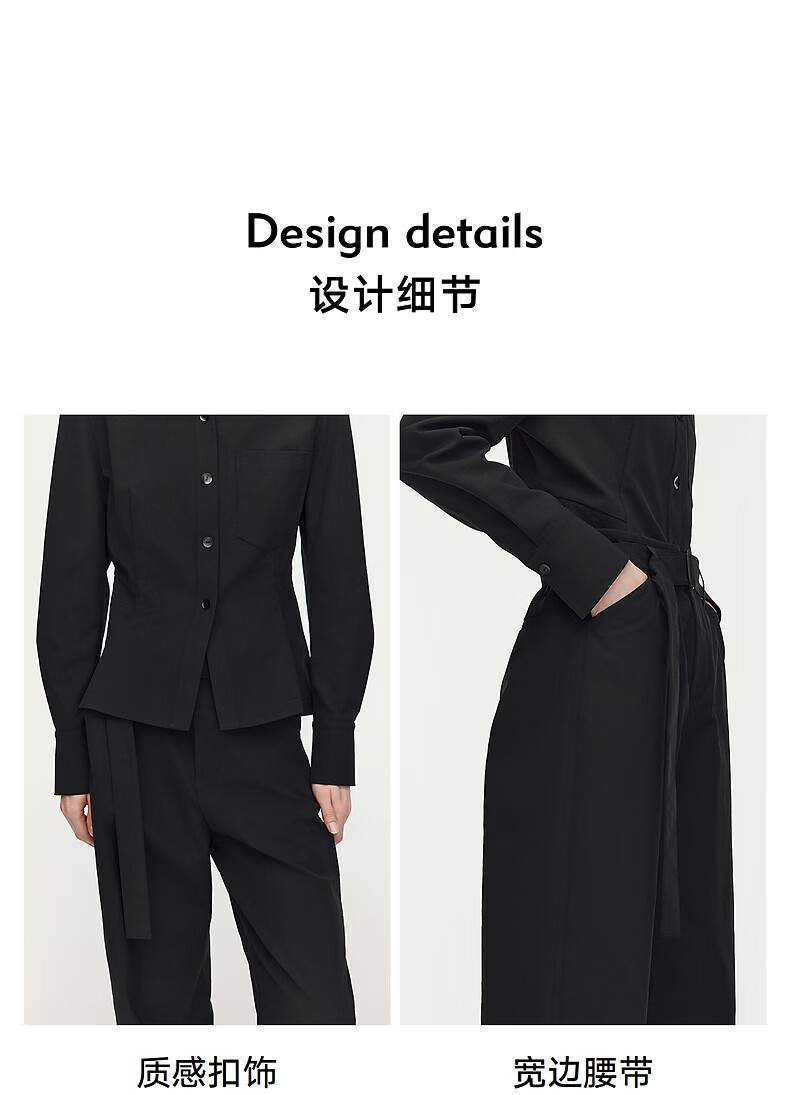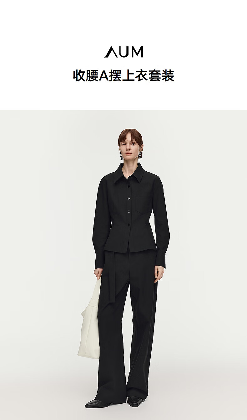 AUM Easy Suit 2026 Spring New Fashion Lapel Waist Black Oxford Cloth Top Pants Women Black Top M