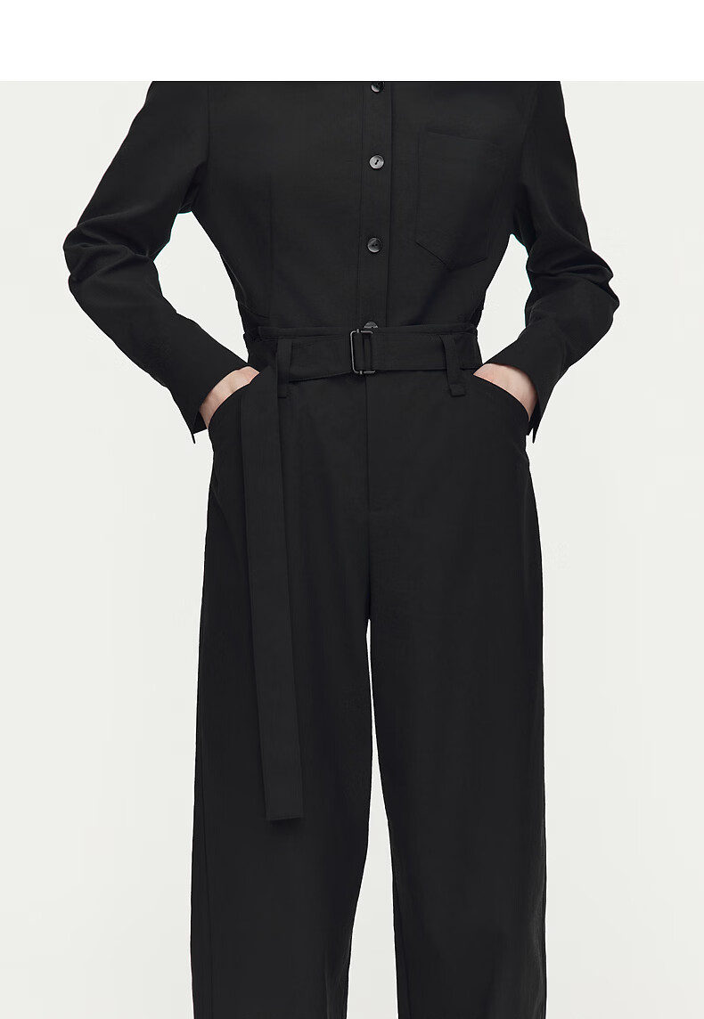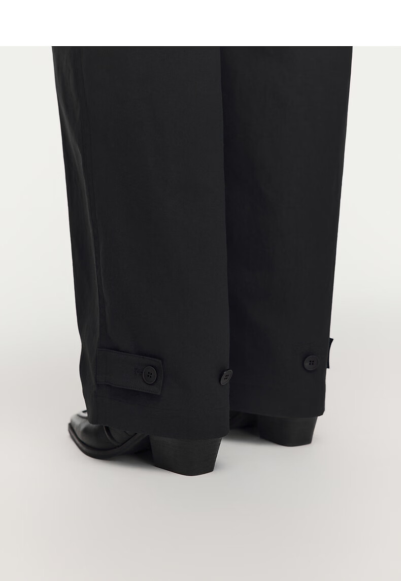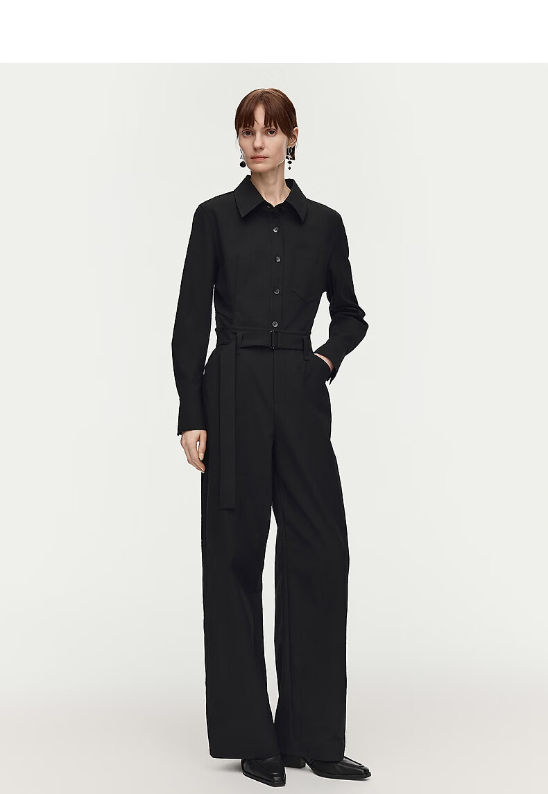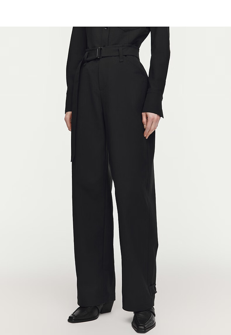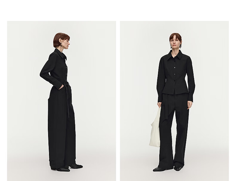 AUM Easy Suit 2026 Spring New Fashion Lapel Waist Black Oxford Cloth Top Pants Women Black Top M