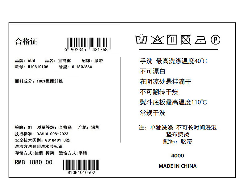 Outseam (cm) 99 cm 101.5 cm 104 cm 106.5 cm 109 cm