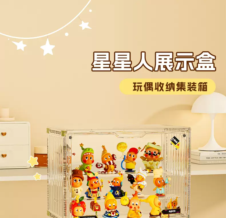 Yusenyi Star People Display Box Blind Box Storage Display Stand Bubble Mart Figure Ornament Storage Box Transparent Display Cabinet Extra Large Ice Crystal Transparent (Free Sticker Dispensing) Four-layer Space