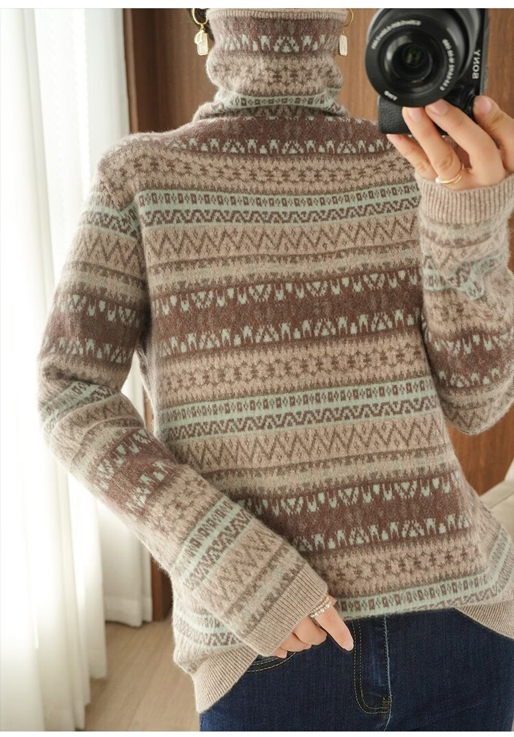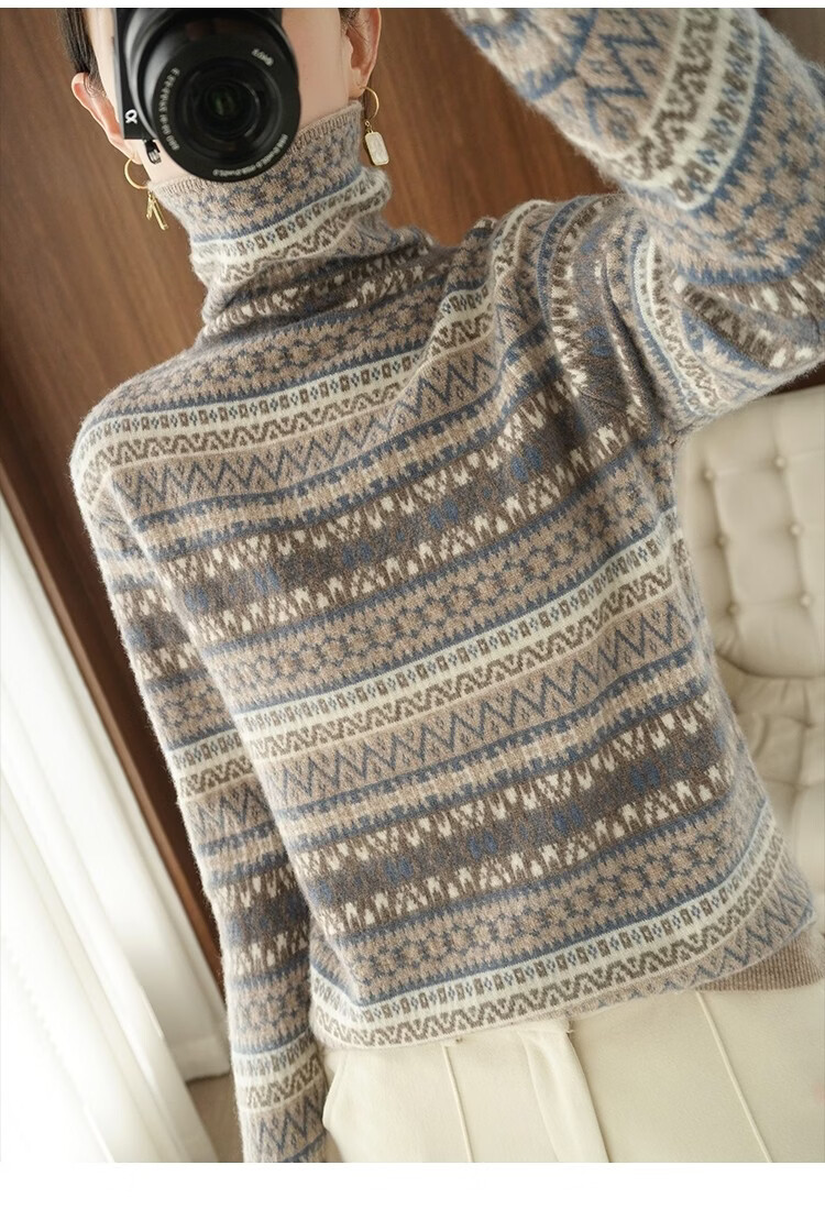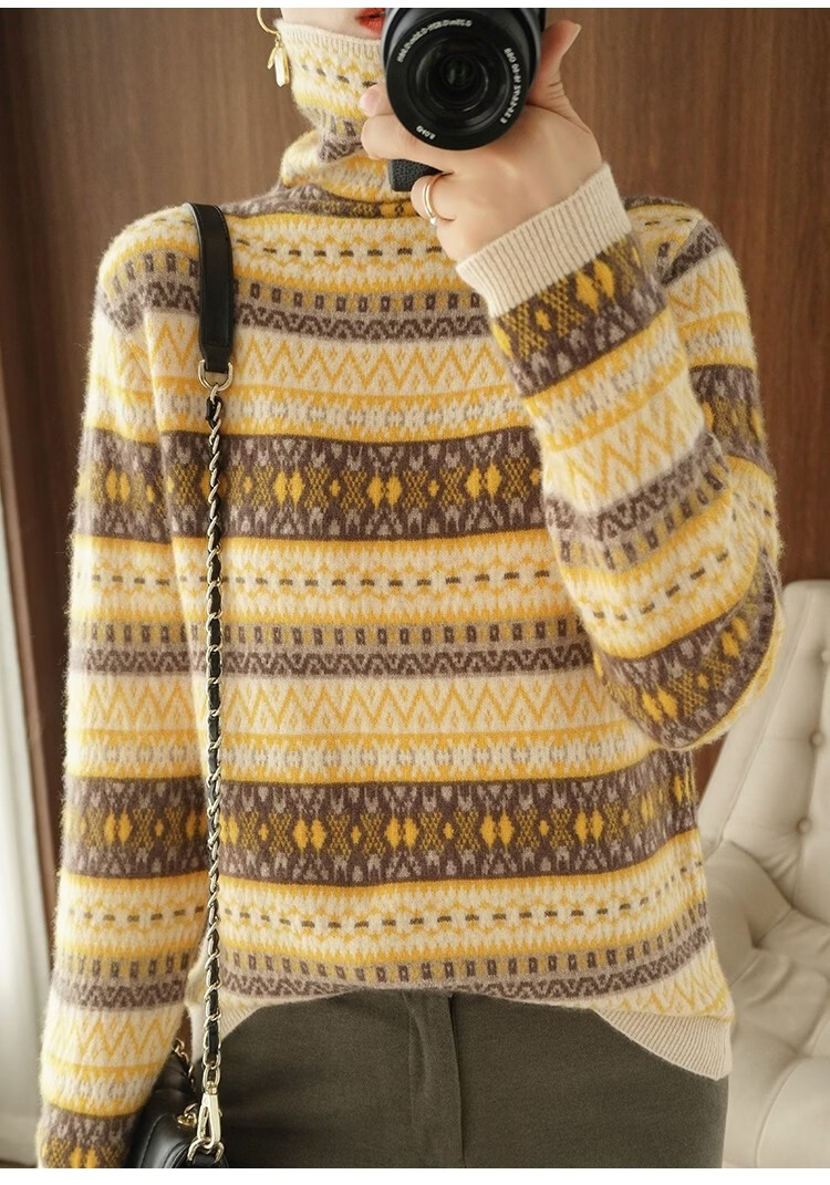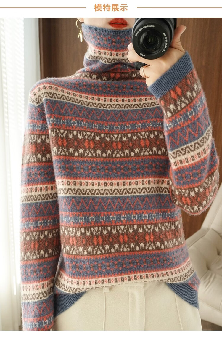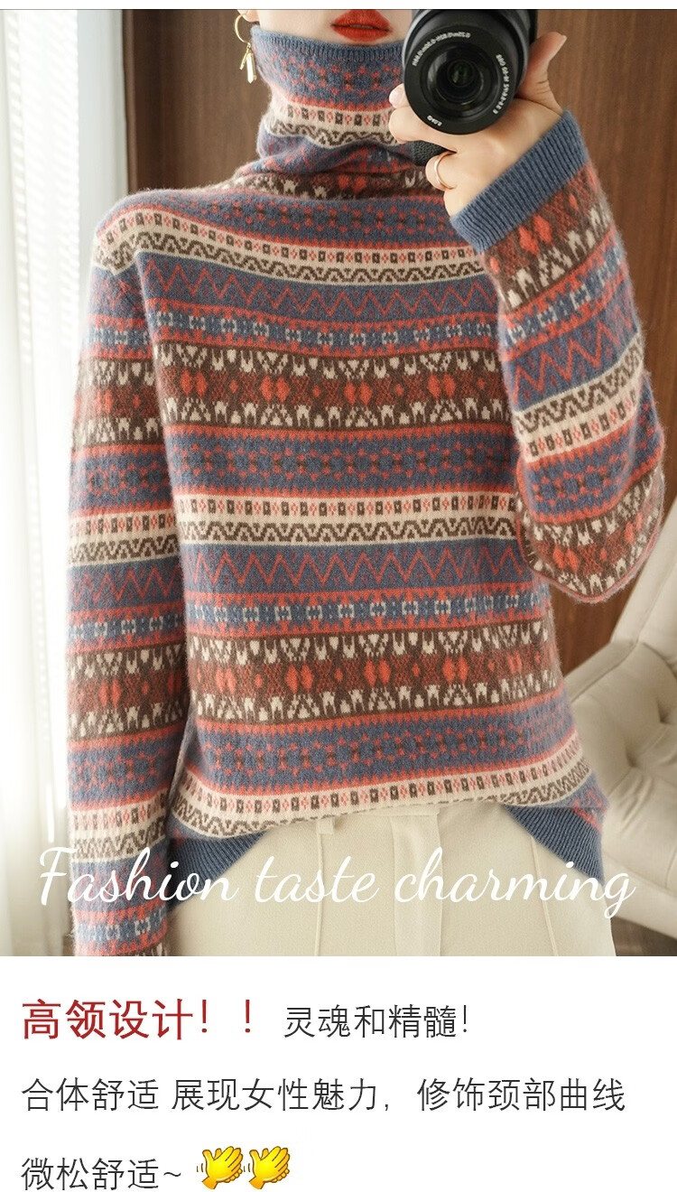 Playboy (PLAYBOY) Fair Isle Retro Jacquard Knitted Sweater Women's Turtleneck Sweater Autumn and Winter New Thick Pullover Versatile Knitted Sweater Women Red S Recommended 85-95Jin Jin equals 0.5 kg