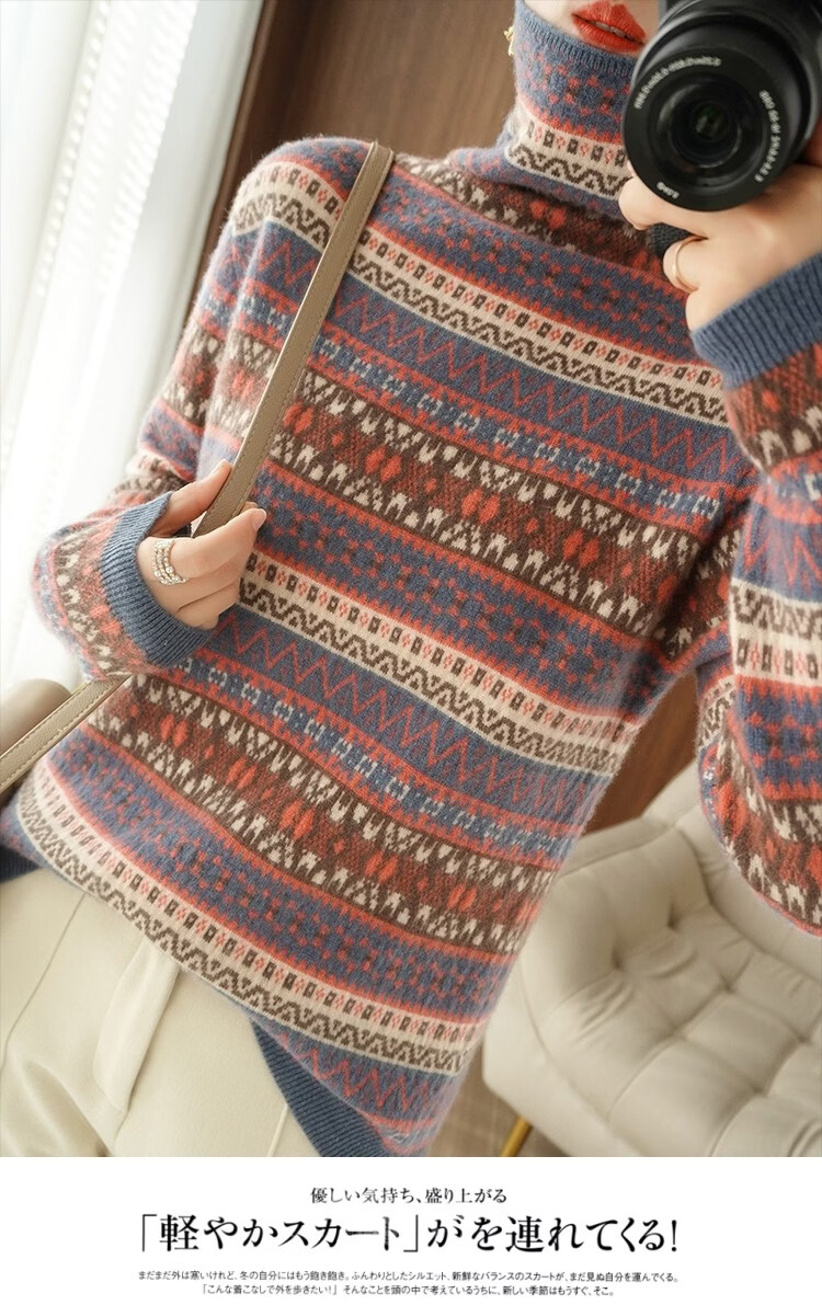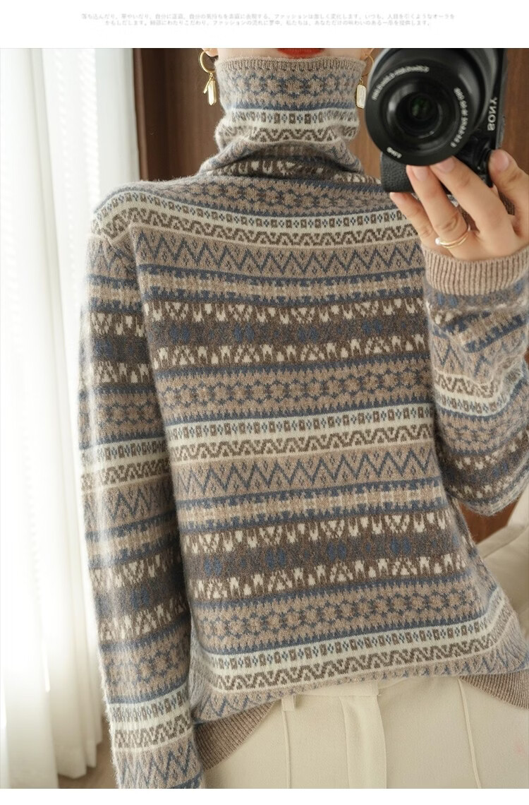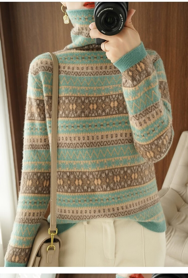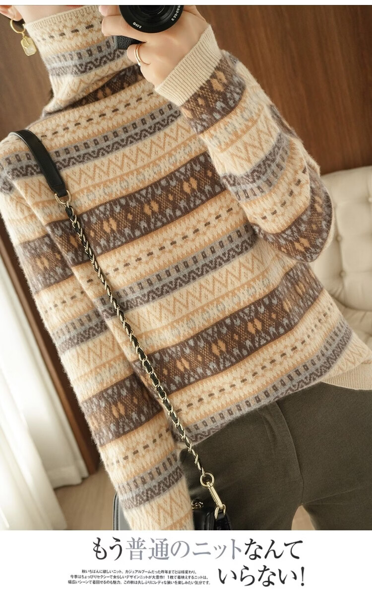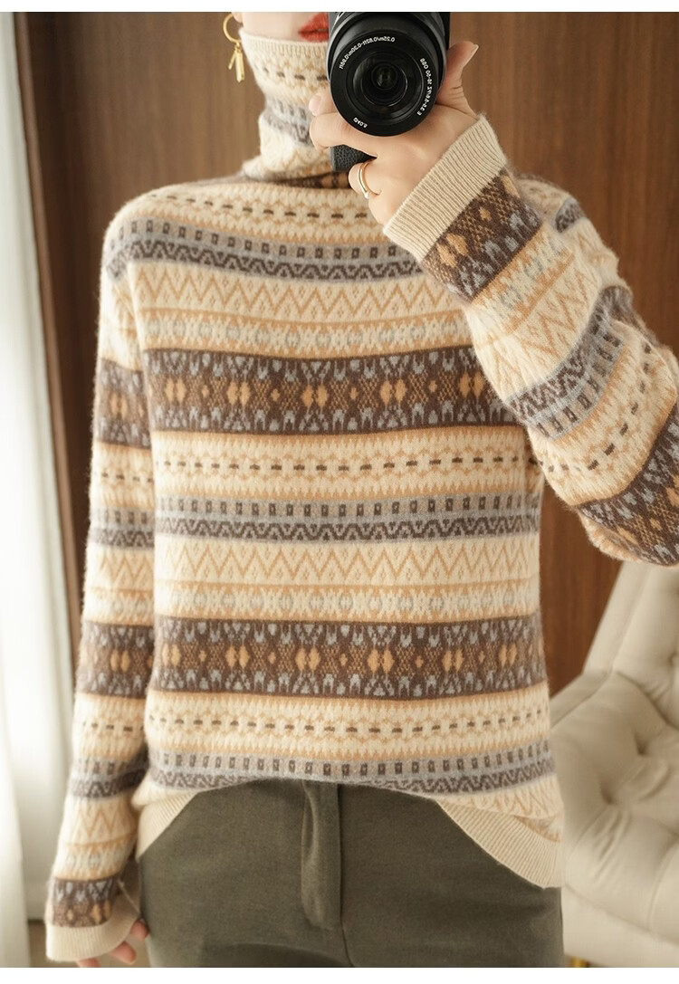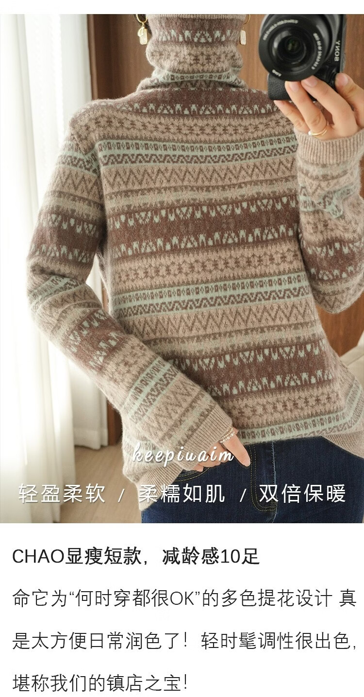 Playboy (PLAYBOY) Fair Isle Retro Jacquard Knitted Sweater Women's Turtleneck Sweater Autumn and Winter New Thick Pullover Versatile Knitted Sweater Women Red S Recommended 85-95Jin Jin equals 0.5 kg