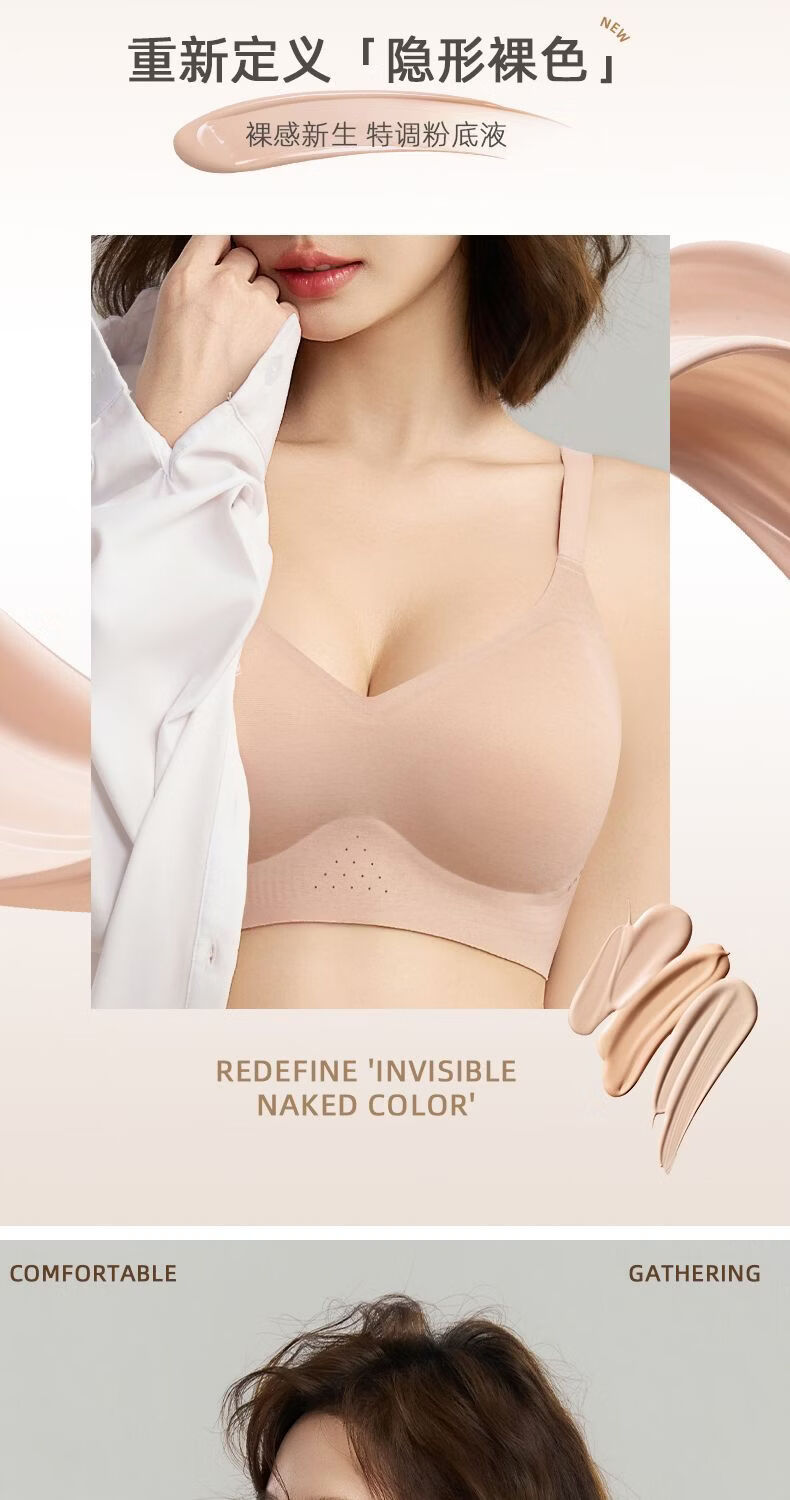 Tingmei (GRACWELL) Tingmei underwear women's seamless small breast push-up breathable anti-expansion pull-up anti-sagging side auxiliary breast bra liquid foundation + brown skin M recommended 75/34 AB full cup