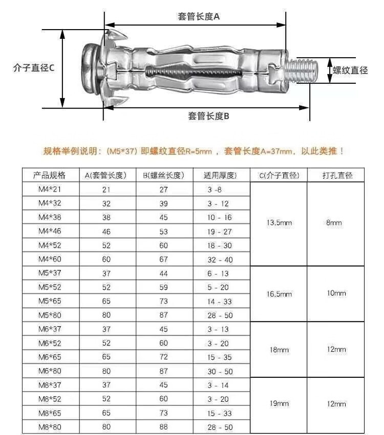 ZNMW gypsum board fixing artifact extension screw gypsum board hollow gecko hollow brick with national standard M6*52 103 pcs