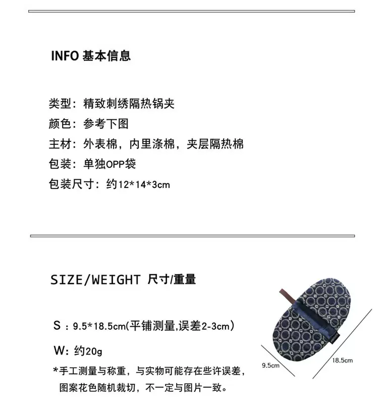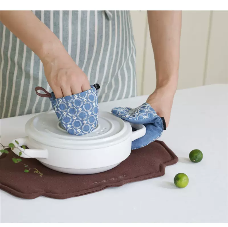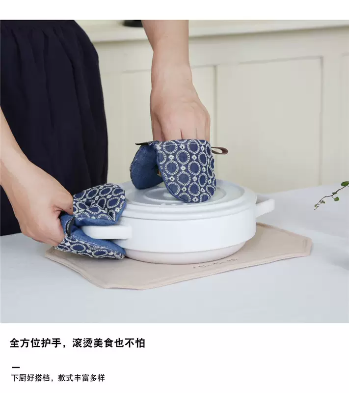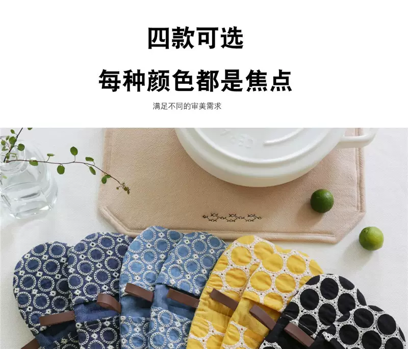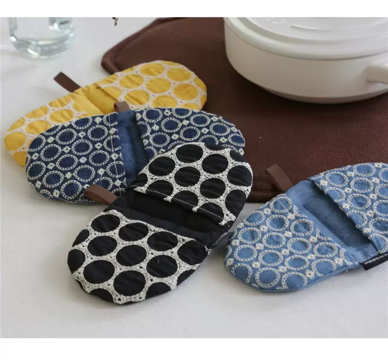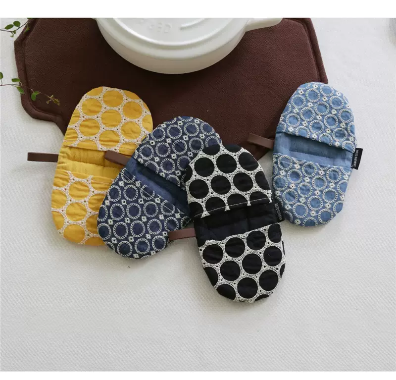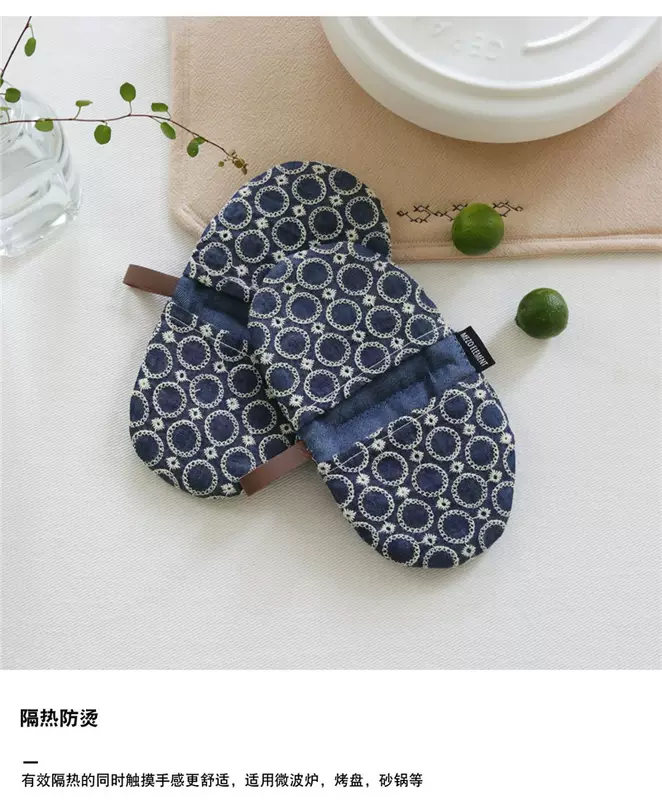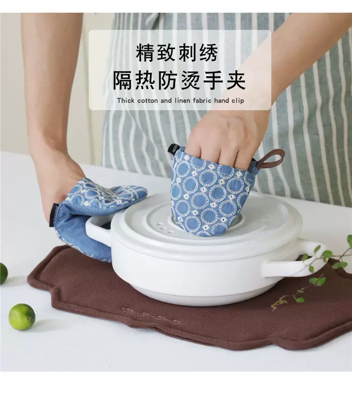 Yusenyi anti-scalding pot cap clip fabric thickened denim embroidery creative pot handle insulated microwave gloves dark blue denim embroidered pot clip (single piece