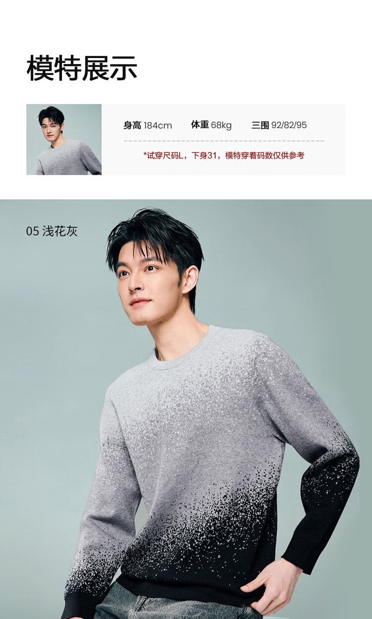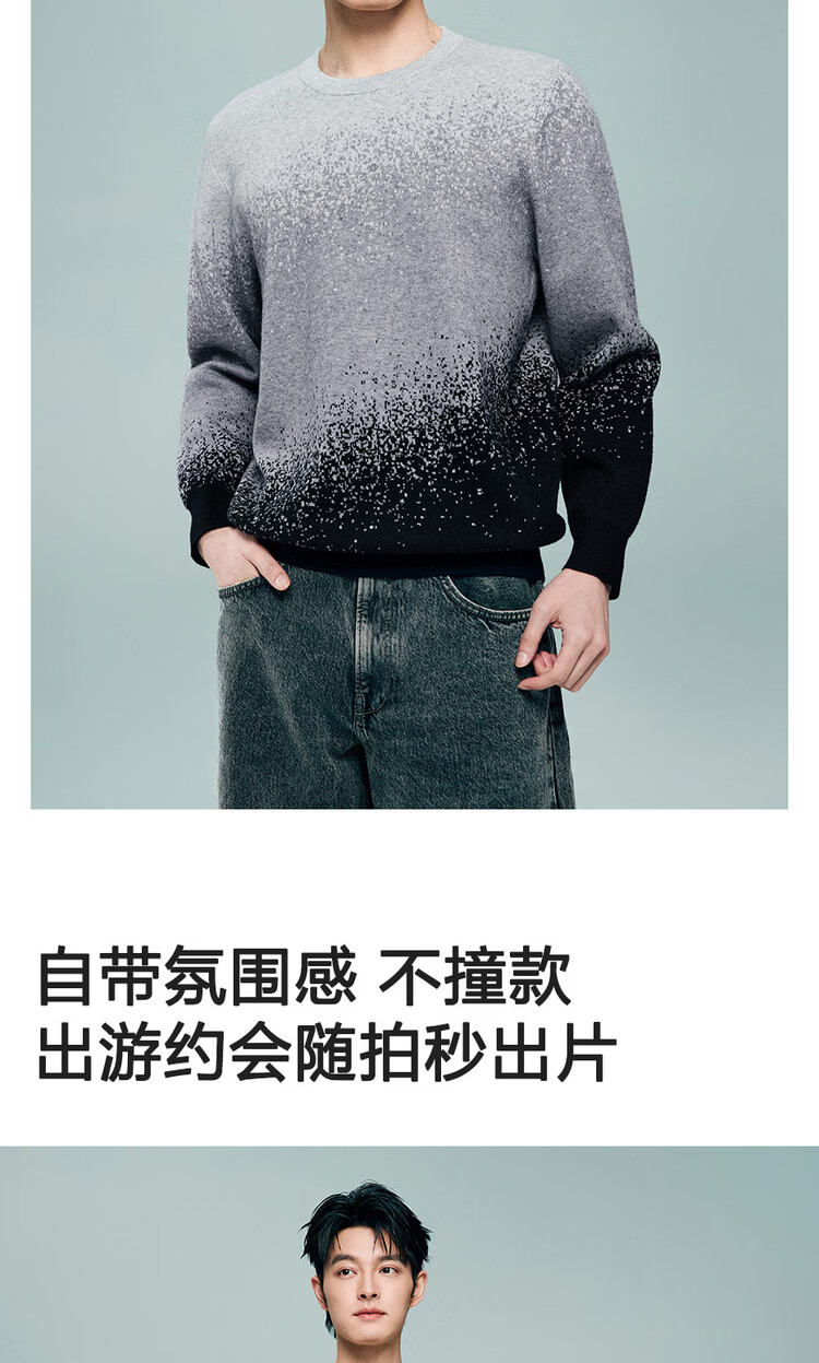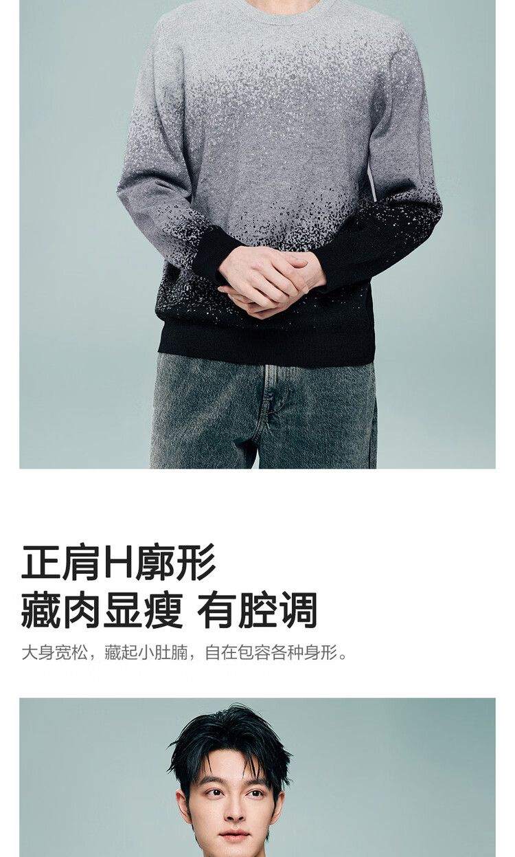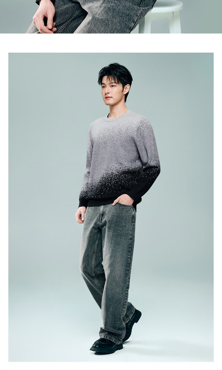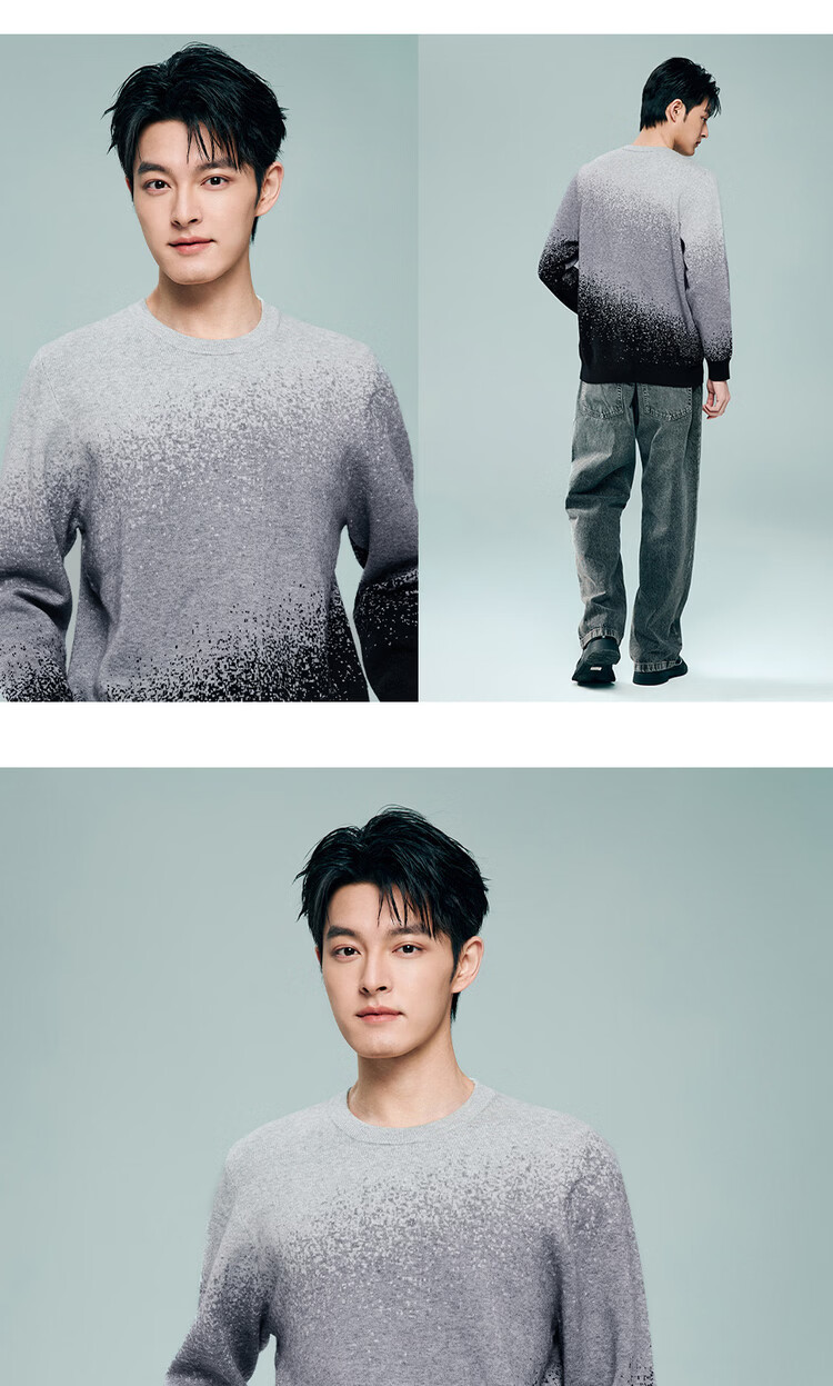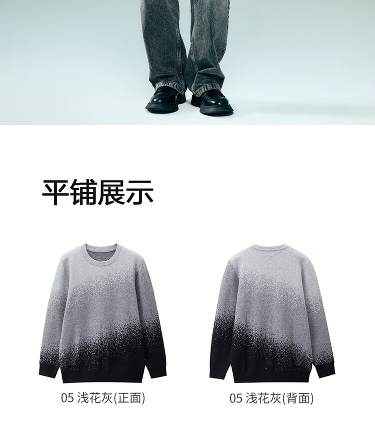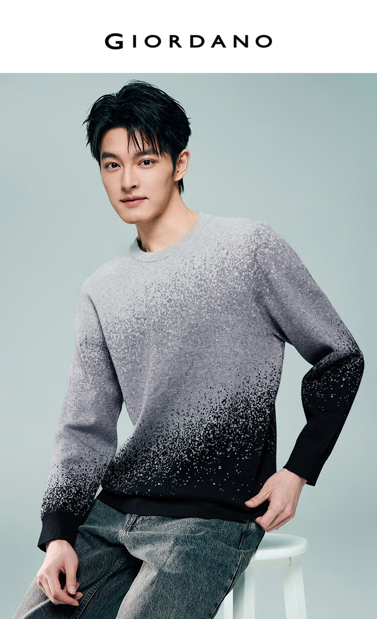 Giordano long-sleeved sweater for men 2026 spring new fashion gradient round neck pullover sweater 13055855 05 light gray S