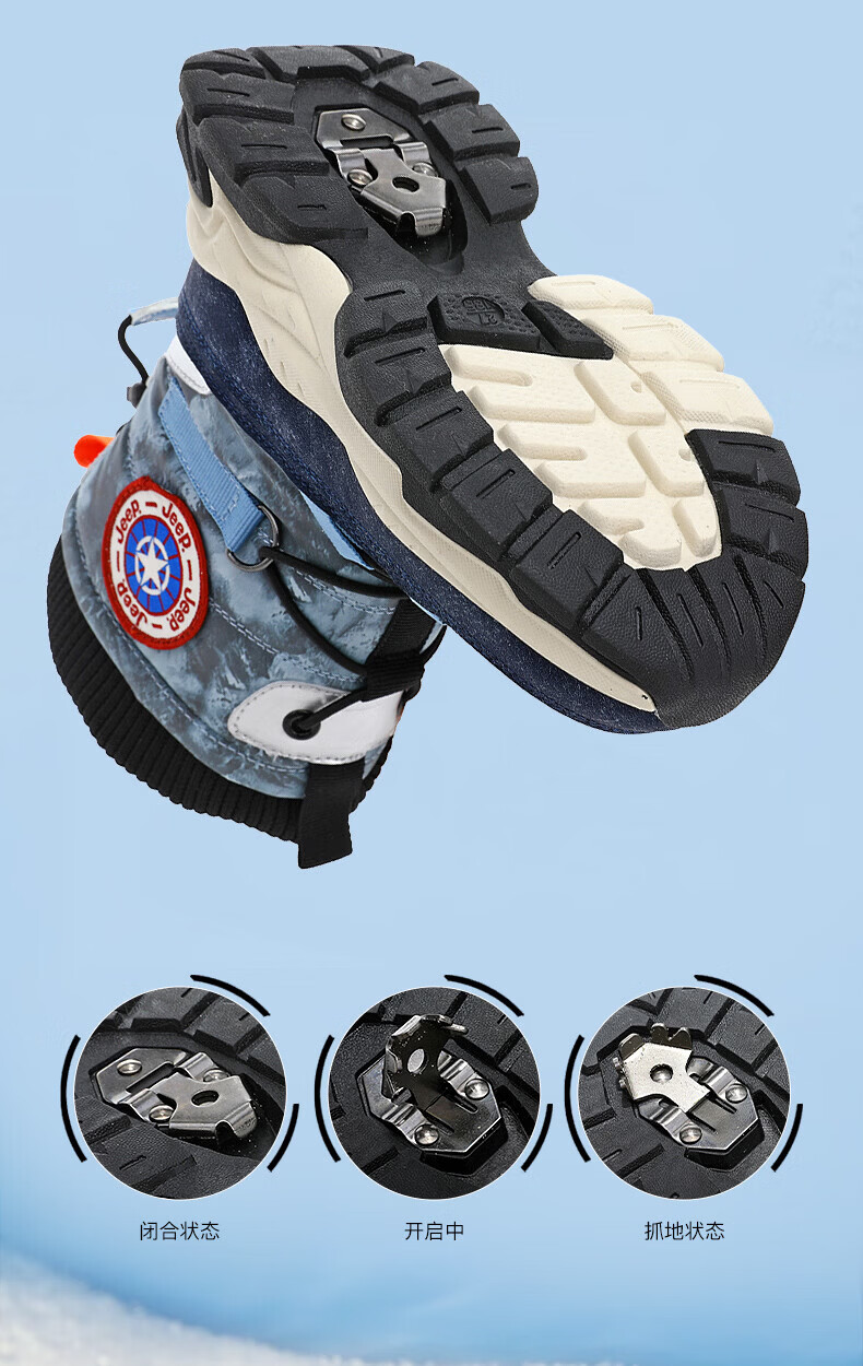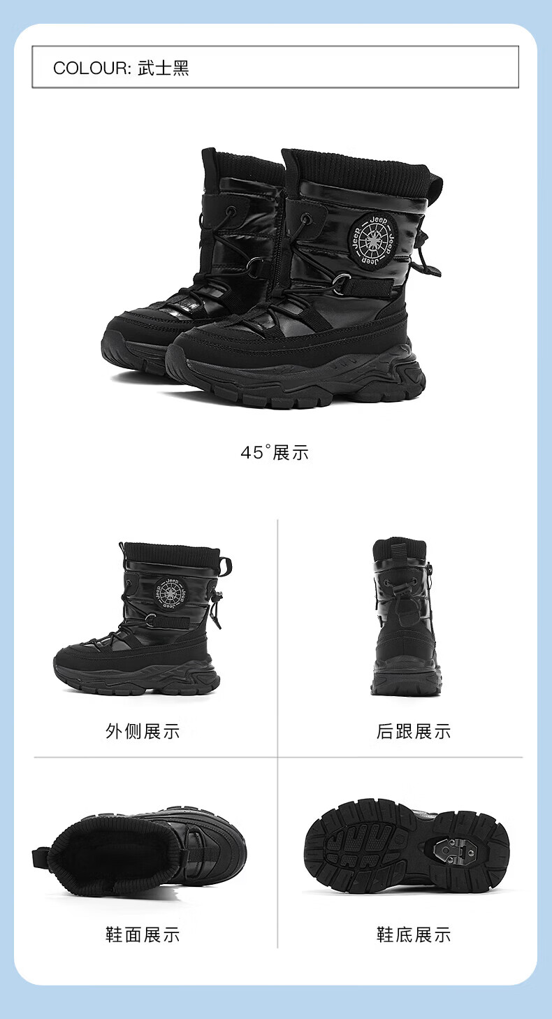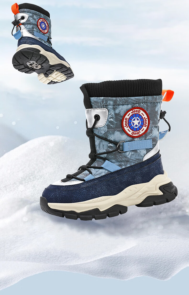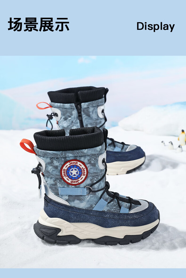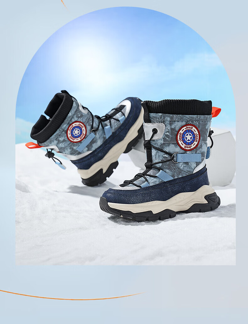 Jeep children's snow boots 2025 winter new thickened large cotton boots boys and girls anti-slip boots students warm cotton shoes sky blue (plus velvet) 33 inner length of the shoe is about 20.9cm