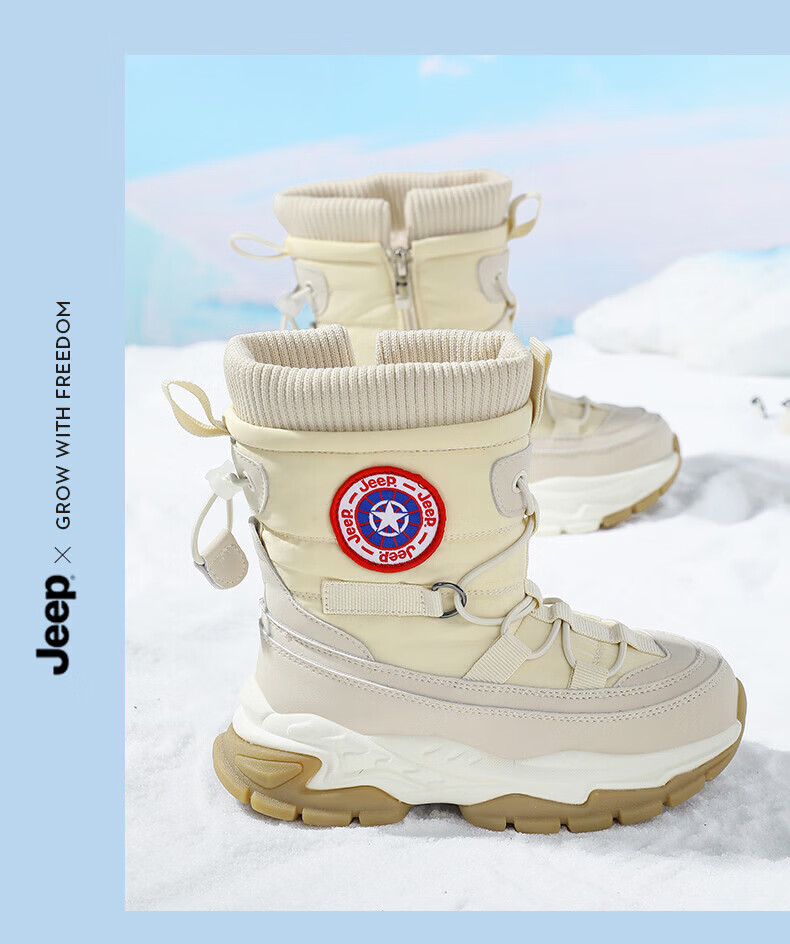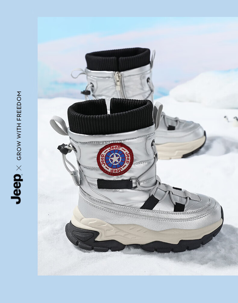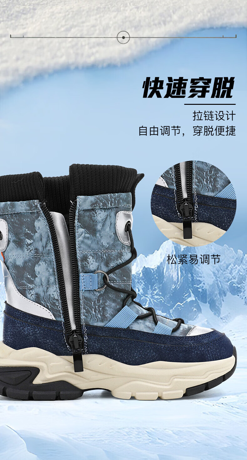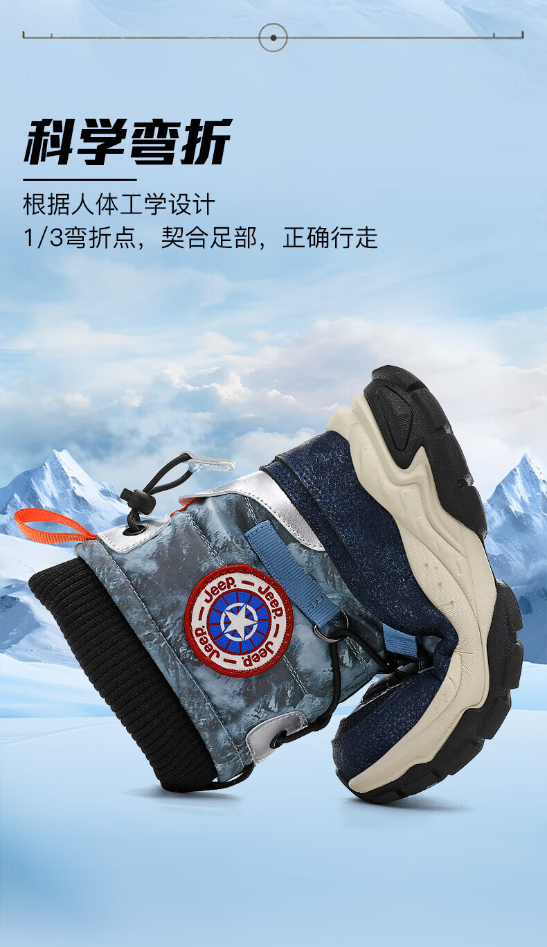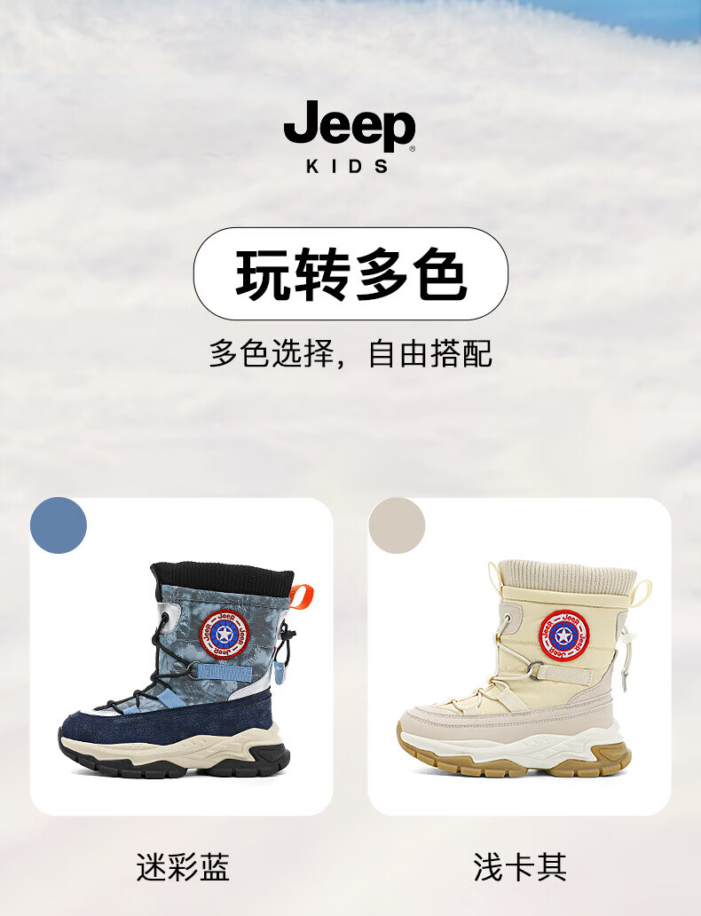 Jeep children's snow boots 2025 winter new thickened large cotton boots boys and girls anti-slip boots students warm cotton shoes sky blue (plus velvet) 33 inner length of the shoe is about 20.9cm