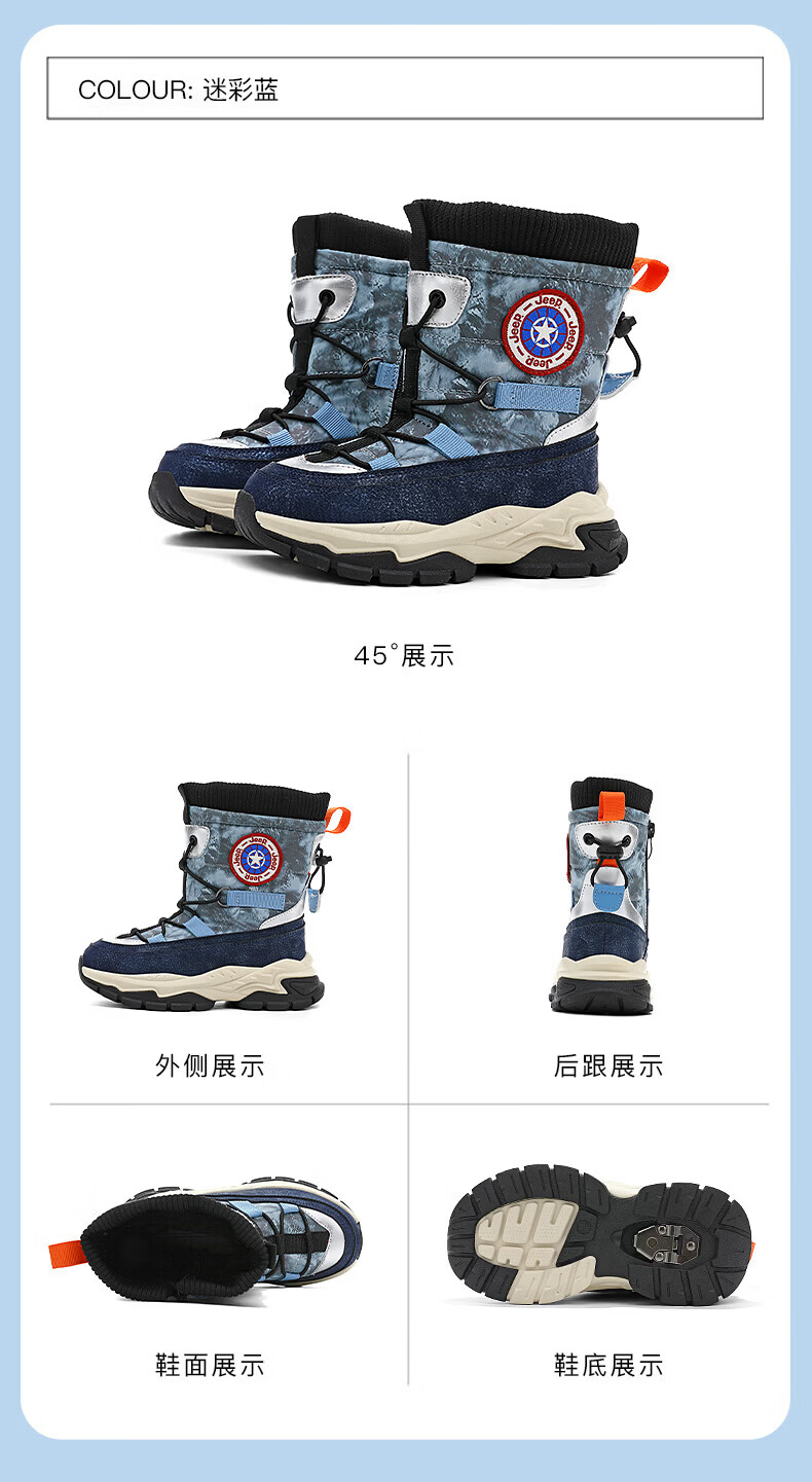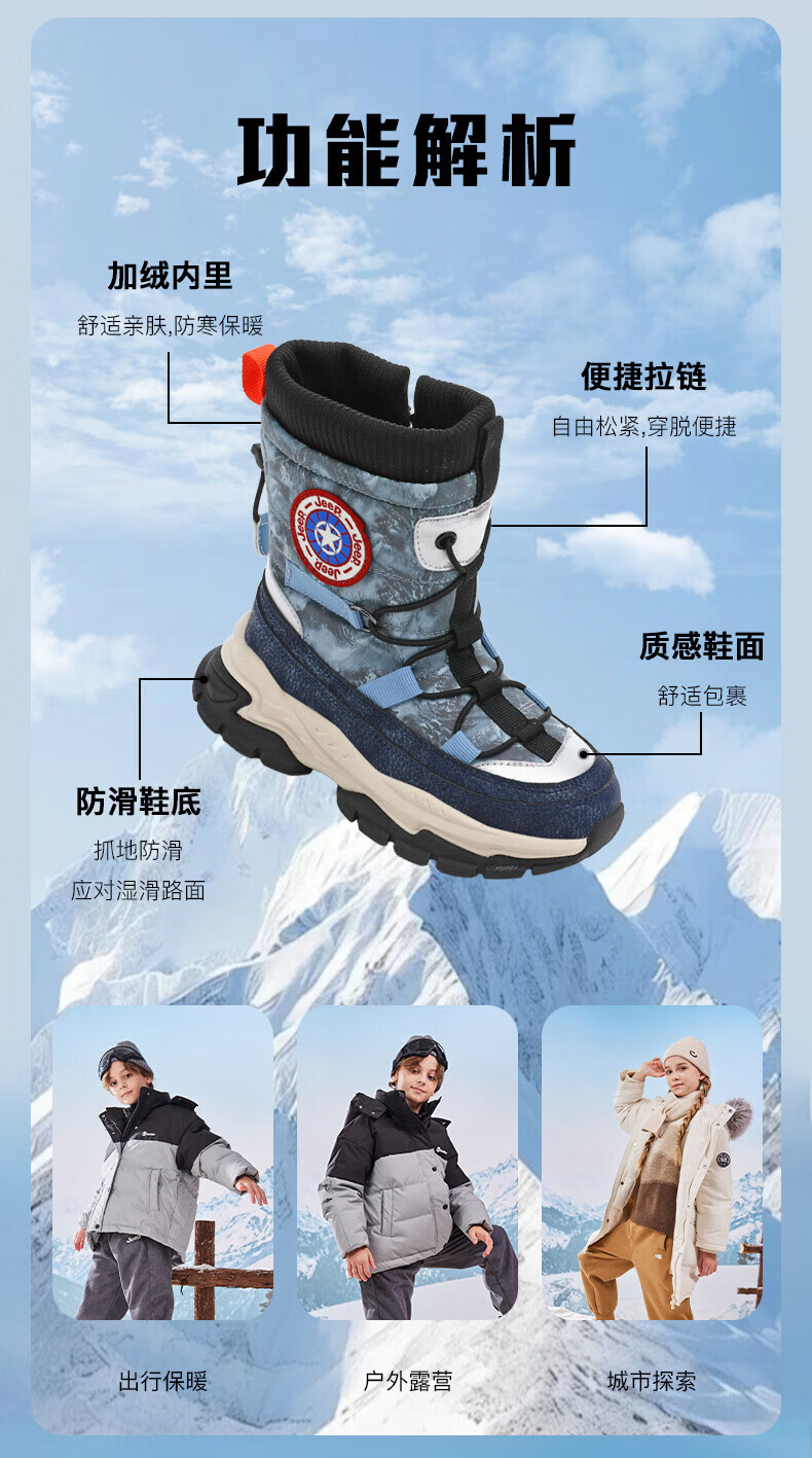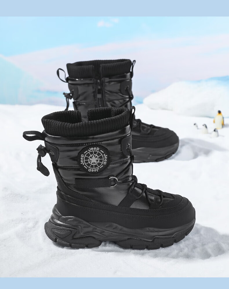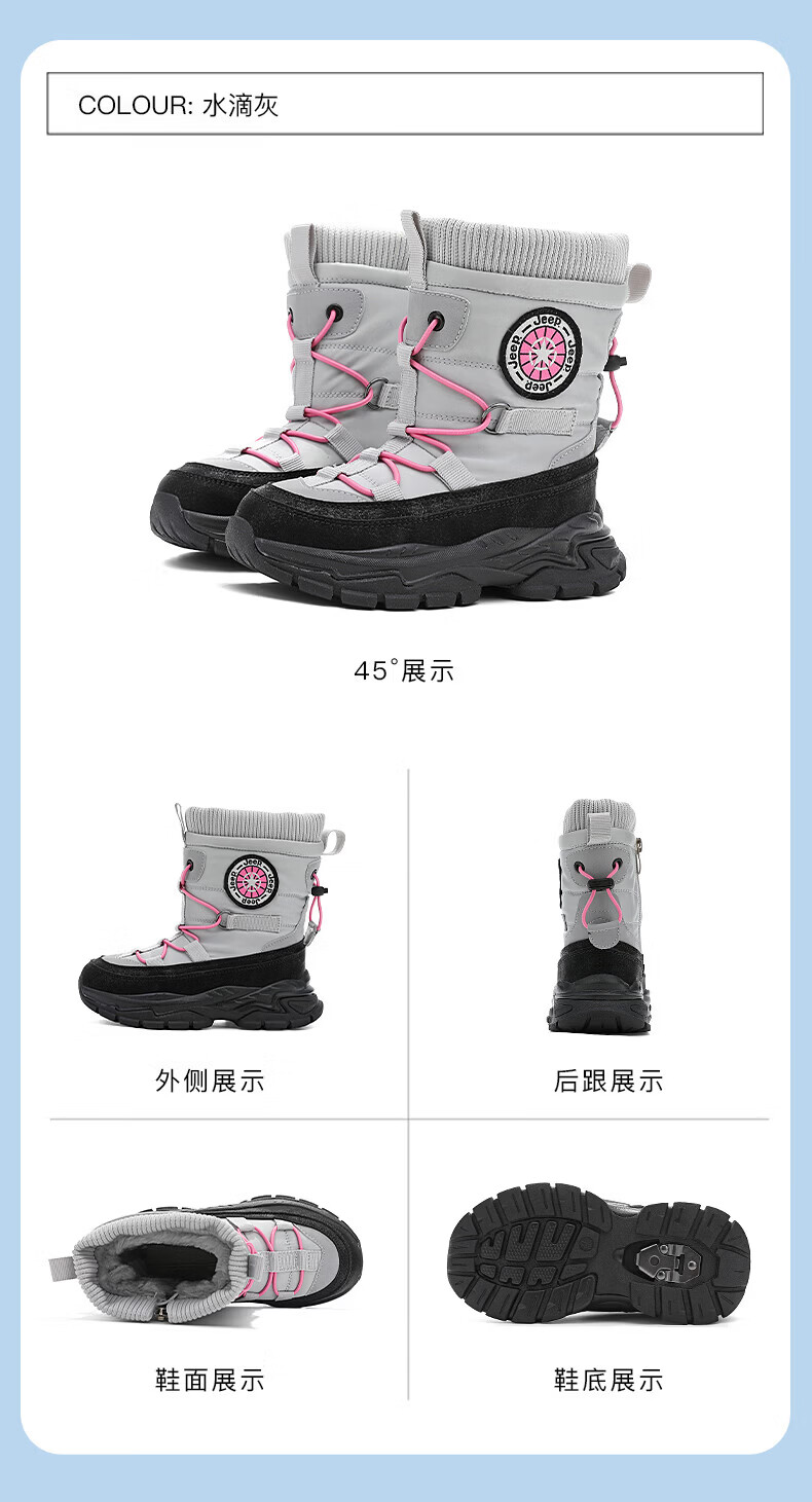 Jeep children's snow boots 2025 winter new thickened large cotton boots boys and girls anti-slip boots students warm cotton shoes sky blue (plus velvet) 33 inner length of the shoe is about 20.9cm