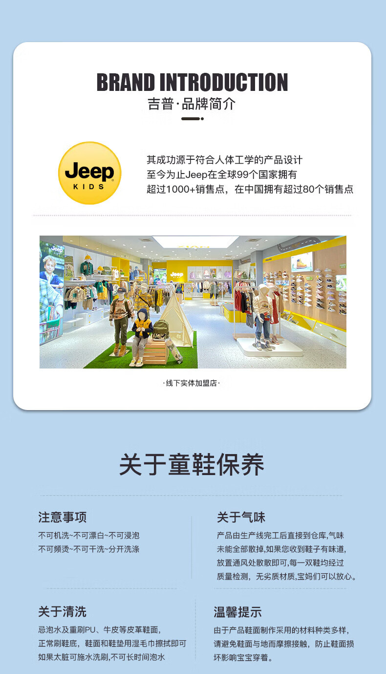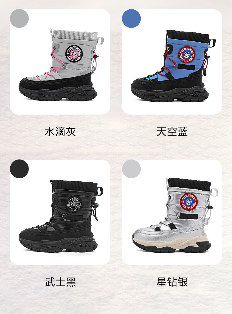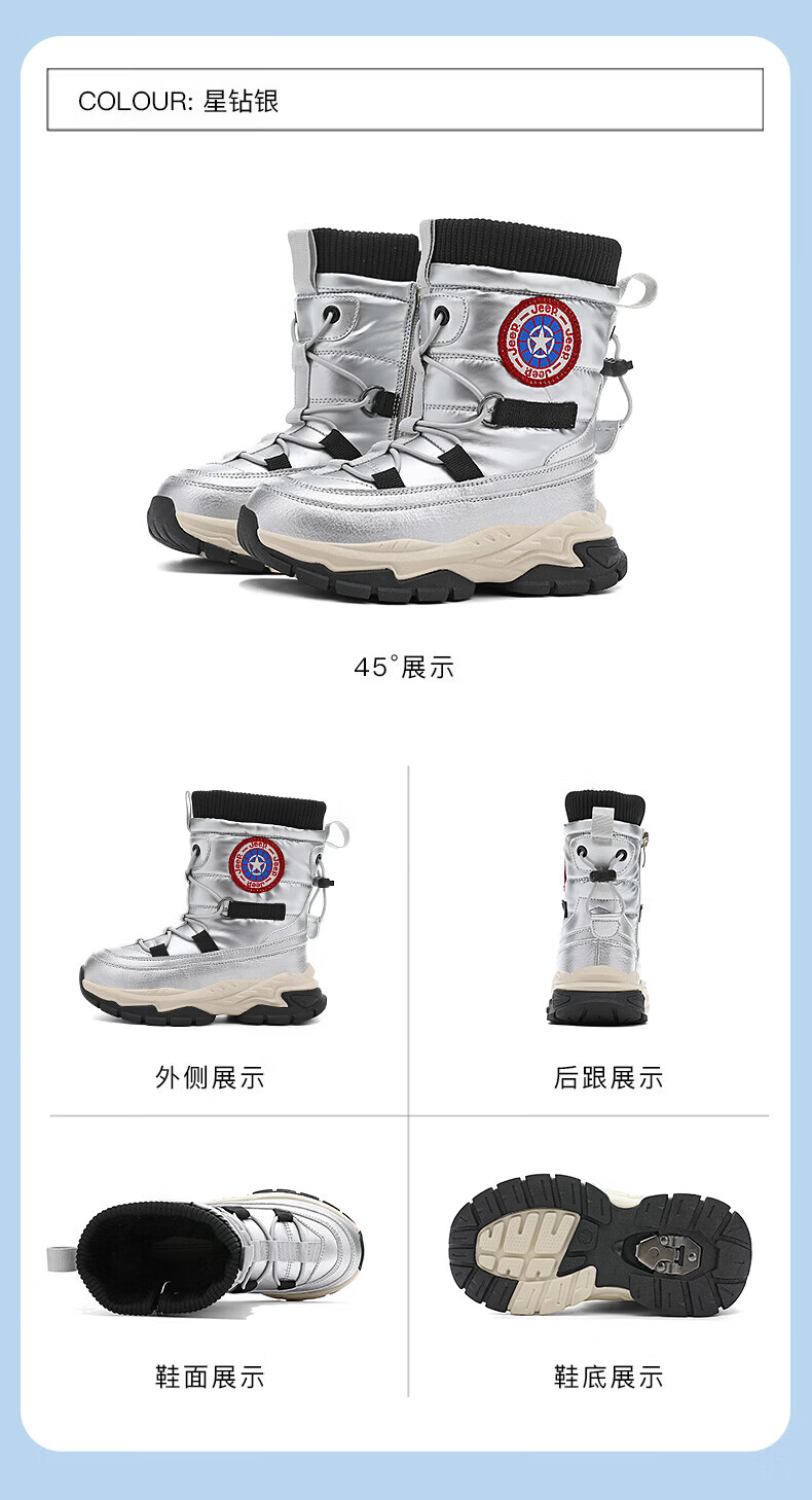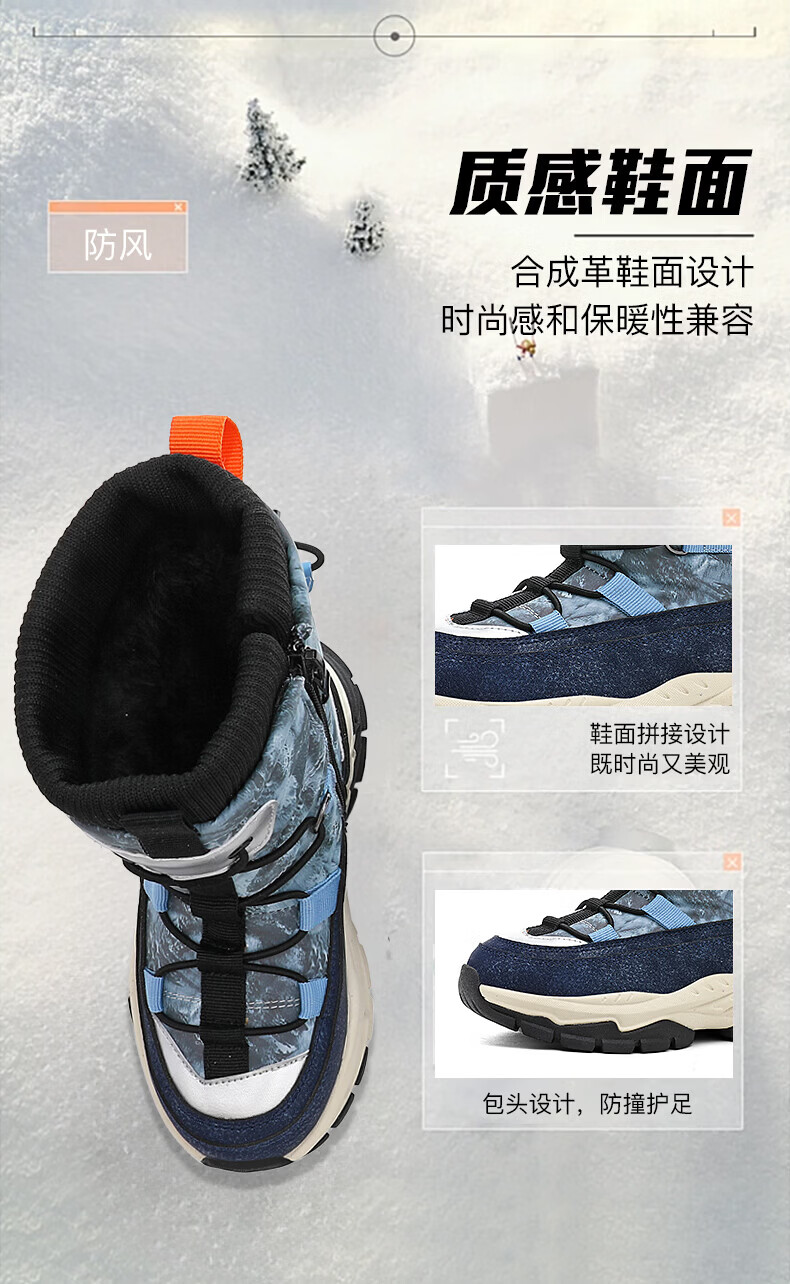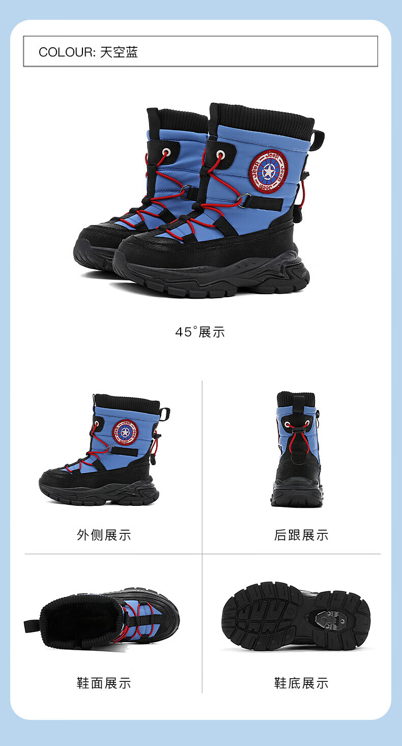 Jeep children's snow boots 2025 winter new thickened large cotton boots boys and girls anti-slip boots students warm cotton shoes sky blue (plus velvet) 33 inner length of the shoe is about 20.9cm