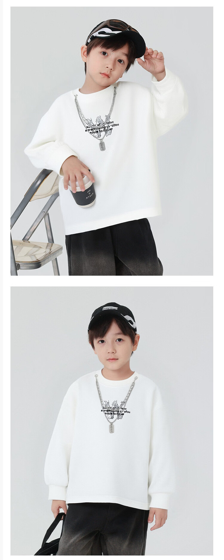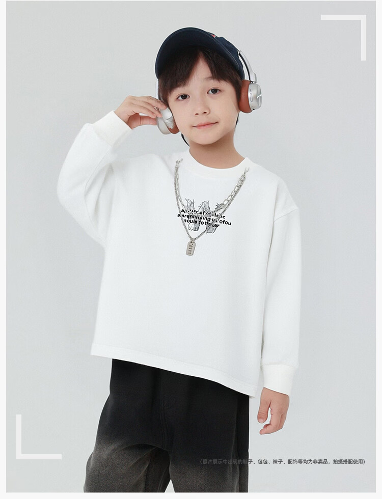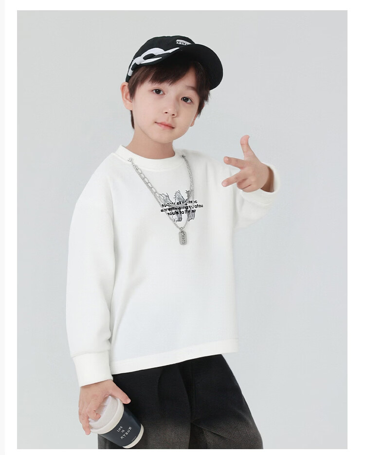 Yoyo Fairy Tale Spring and Autumn Children's Cotton Long Sleeve T-shirt 2026 Boys Solid Color Bottoming Shirt Medium and Large Children's Casual Top Trendy and Handsome White 110