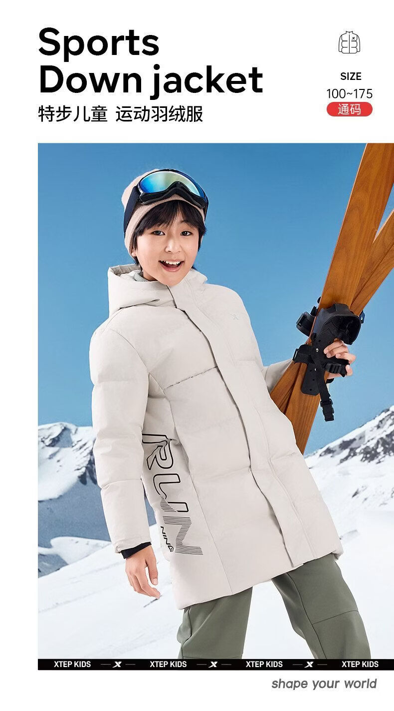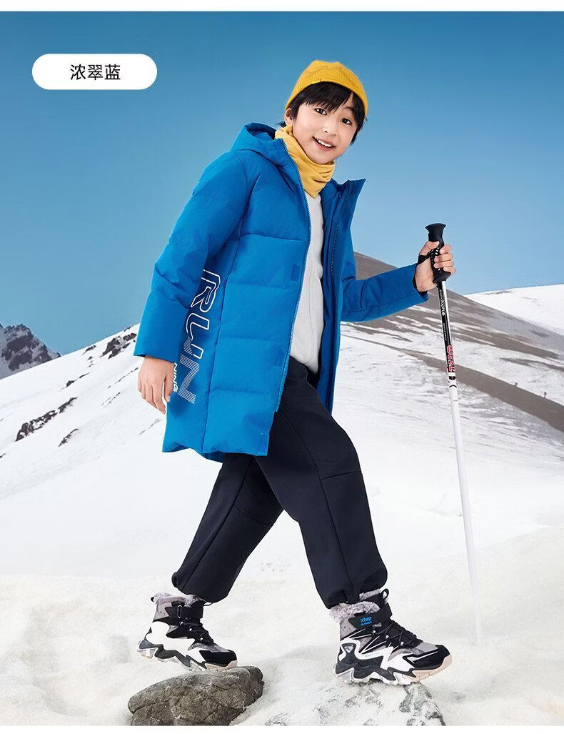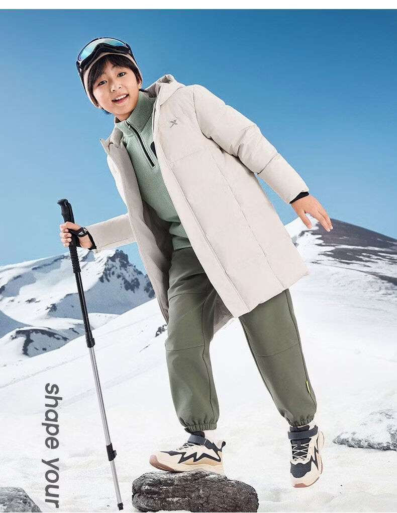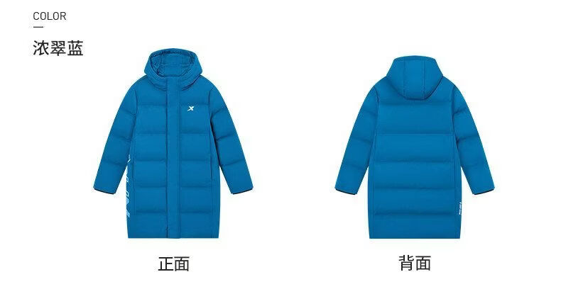 Xtep children's mid-length down jacket boys' thickened and warm winter new winter jacket for teenagers and older children Duku green upgraded thickened constant temperature and warm 170