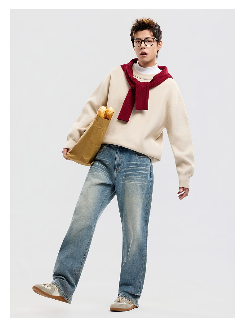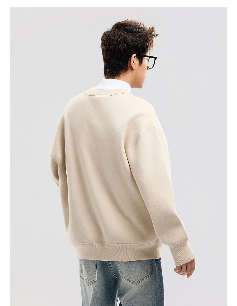 Metersbonwe sweater men's 2026 spring new style, same style in shopping malls, trendy round neck, comfortable and casual, solid color simple knitted sweater, Oatmeal Apricot M 170/92A