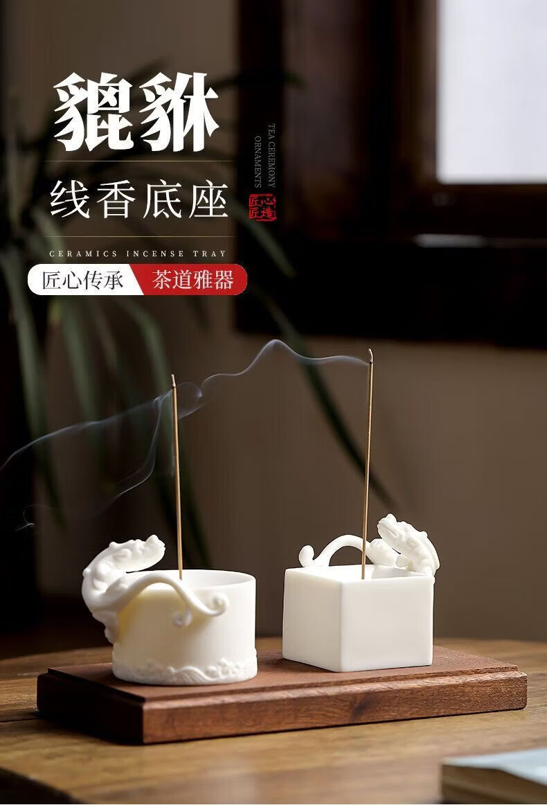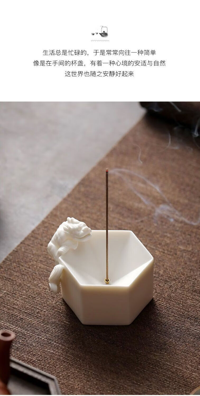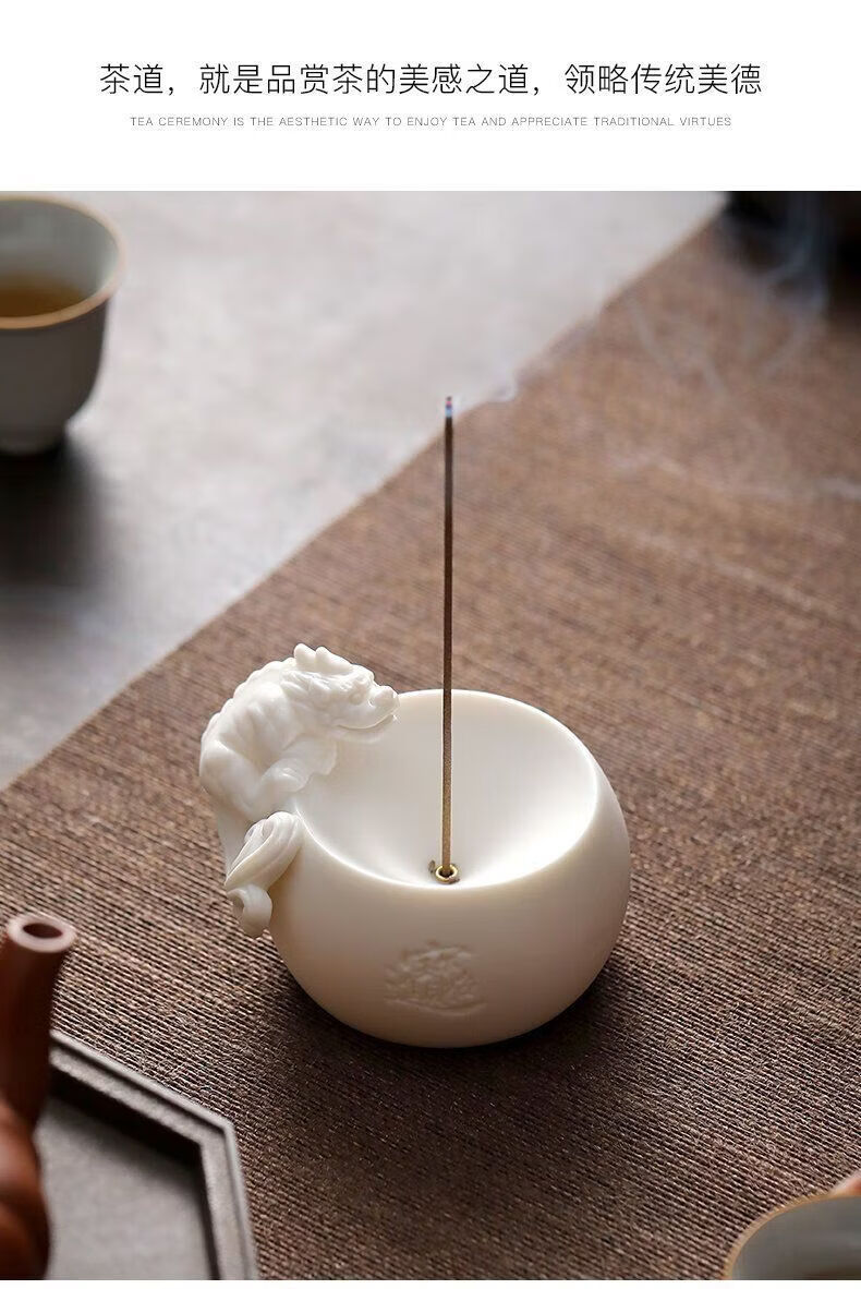 Shantou Lincun White Porcelain Pixiu Incense Holder Tea Ceremony Decoration Thread Incense Holder Pixiu Thread Incense Holder-Jinbao Gift Box