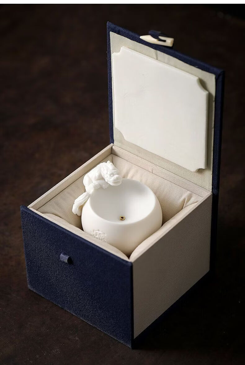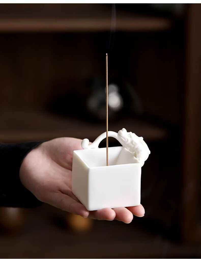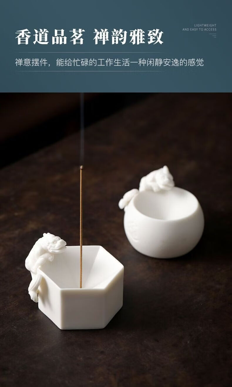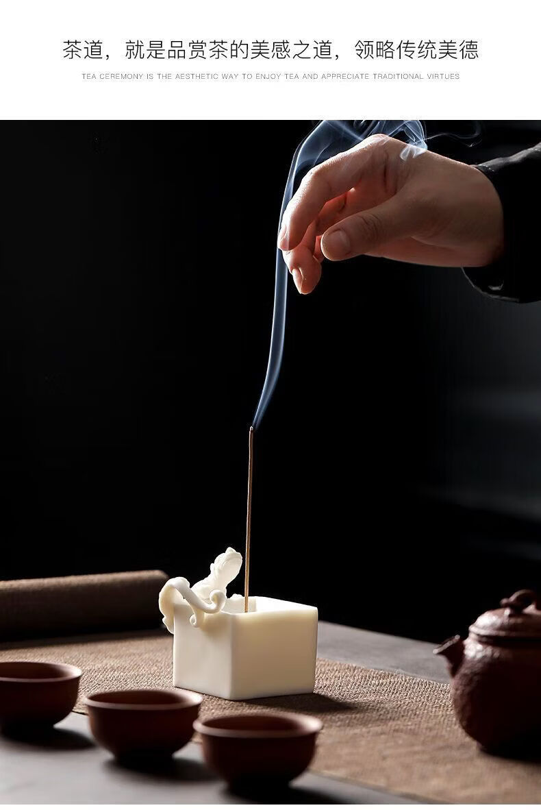 Shantou Lincun White Porcelain Pixiu Incense Holder Tea Ceremony Decoration Thread Incense Holder Pixiu Thread Incense Holder-Jinbao Gift Box