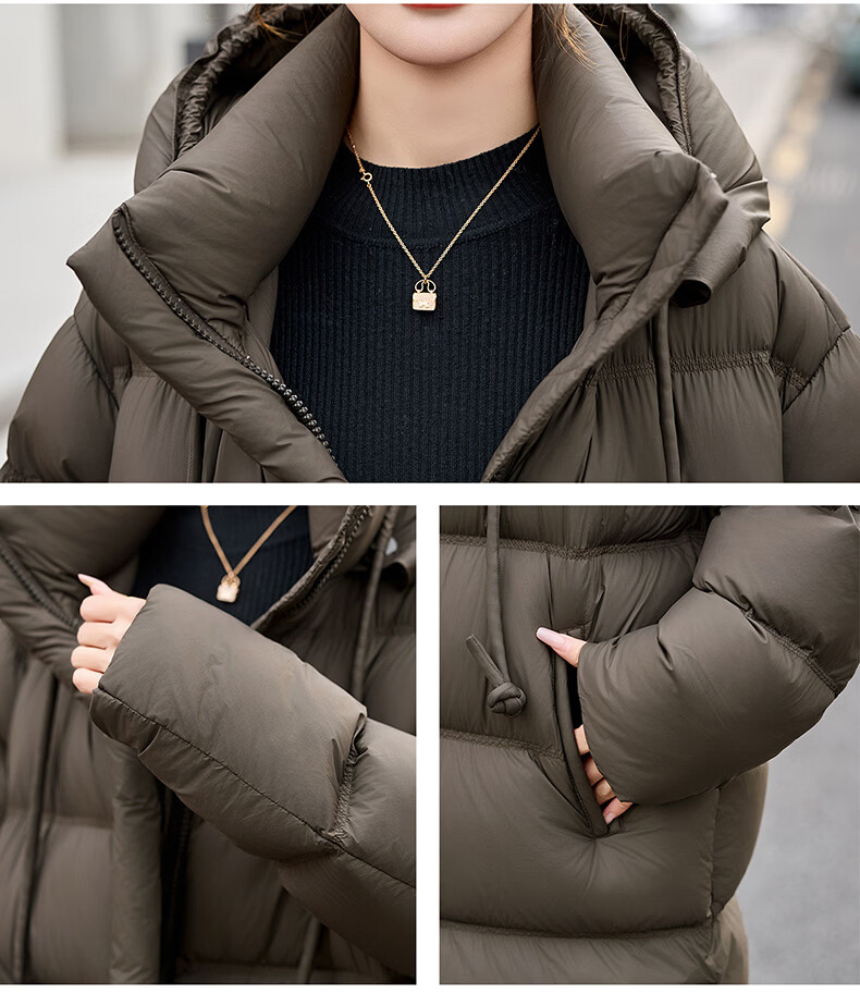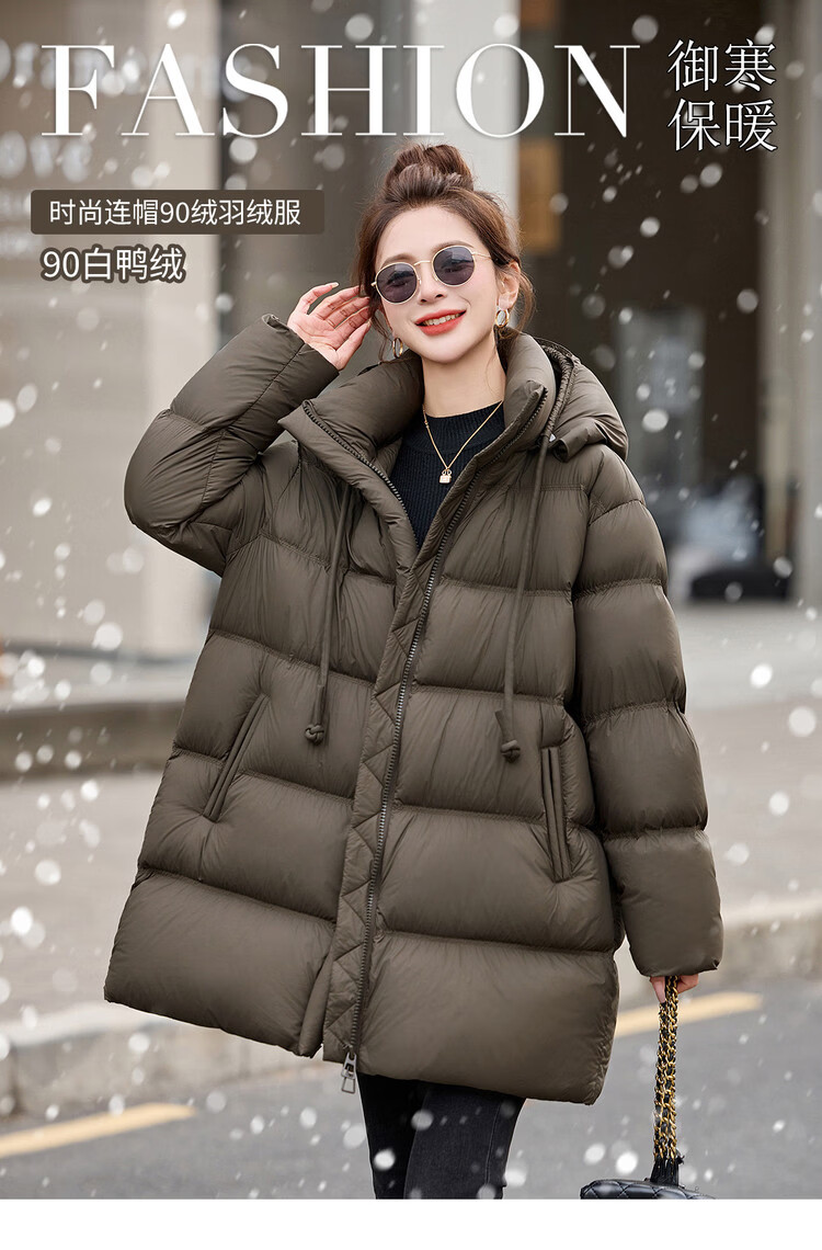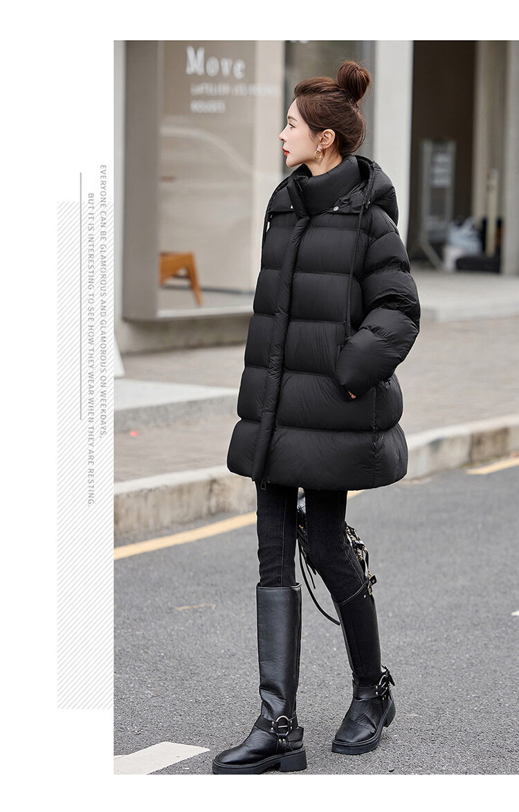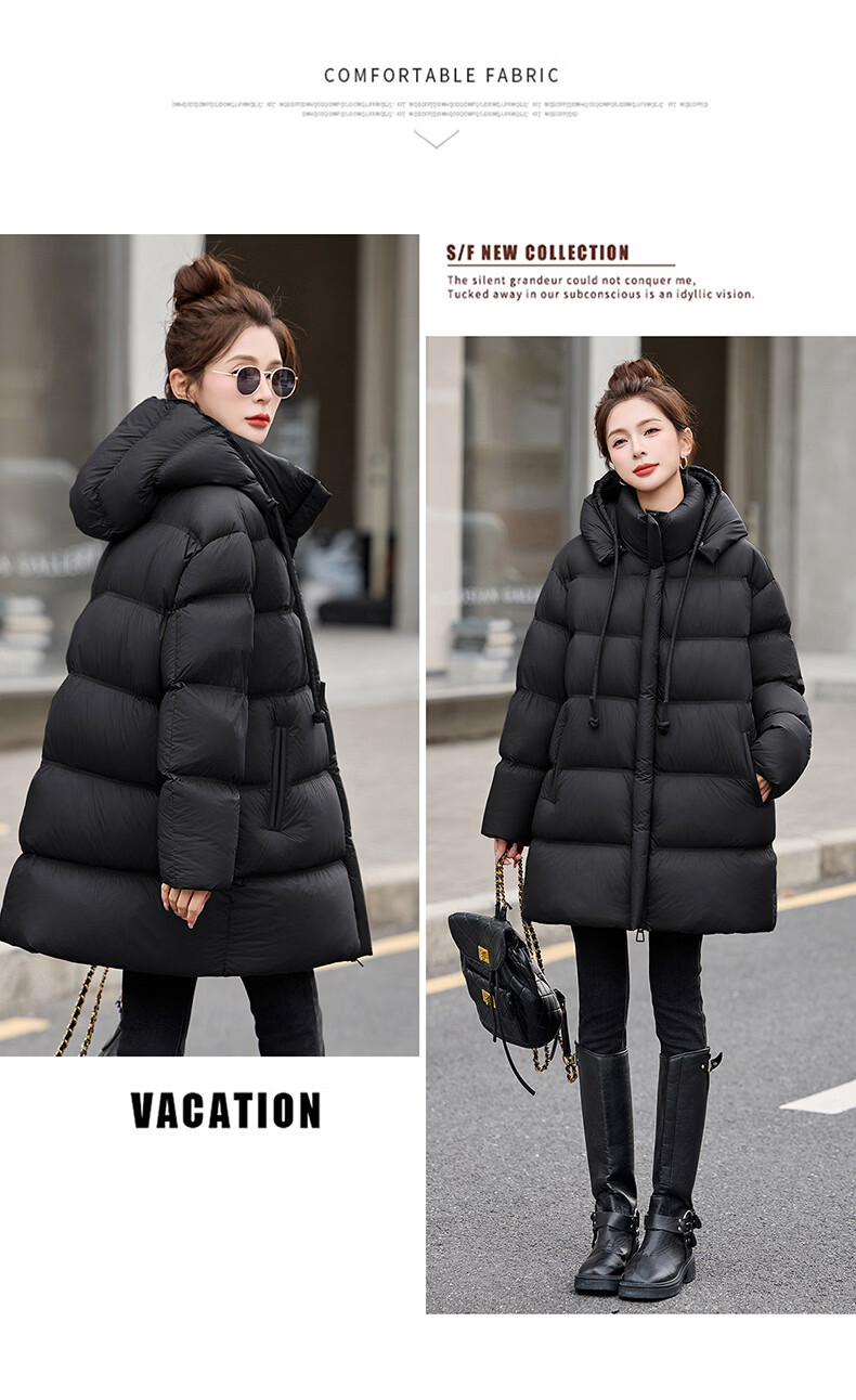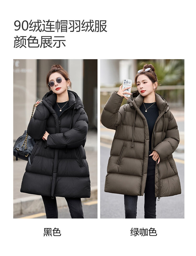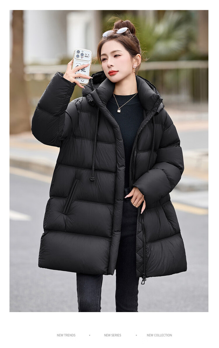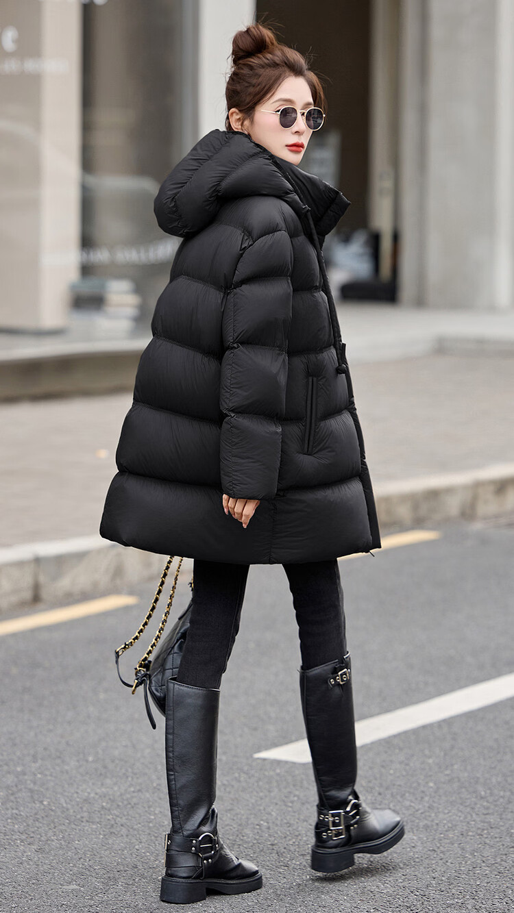 ROMON High-end Puff Hooded Down Jacket Women's Mid-Length 2025 Winter New Style Covering Buttocks, Western Style Thickened Warm Jacket, Black M