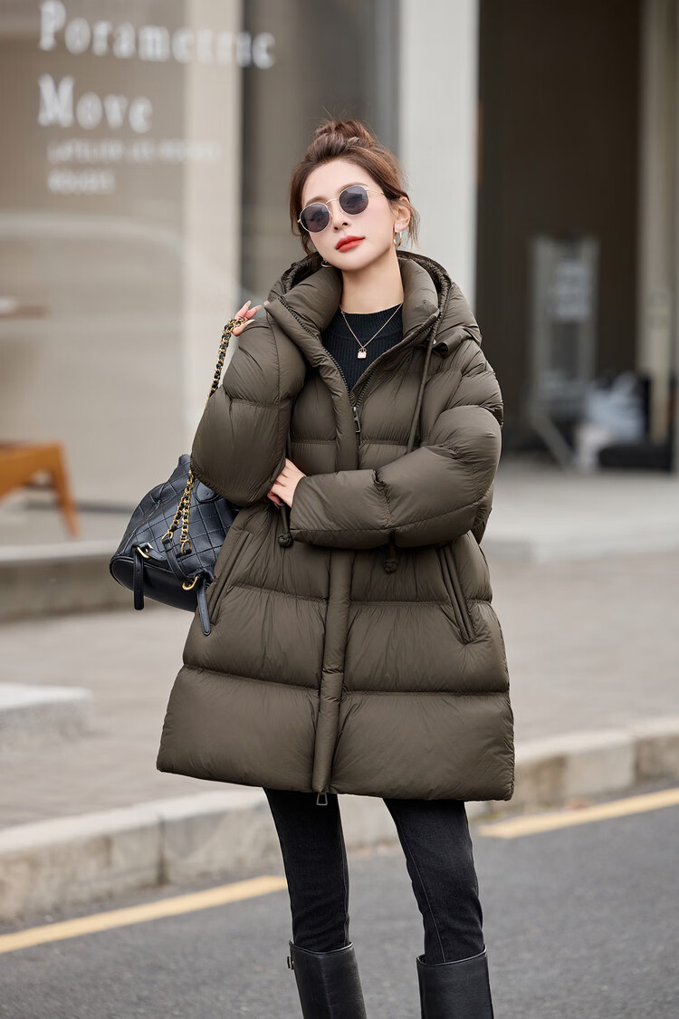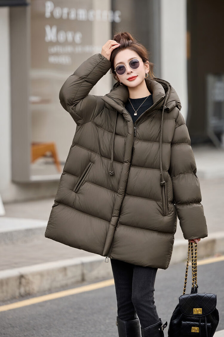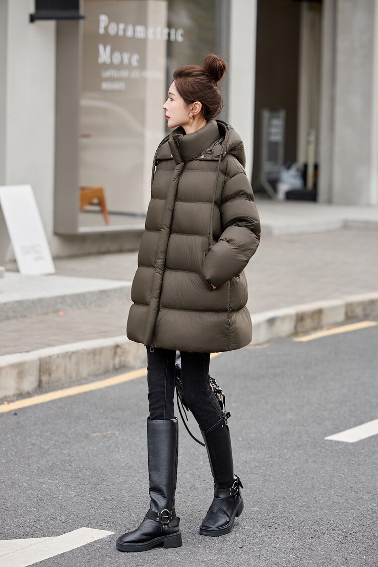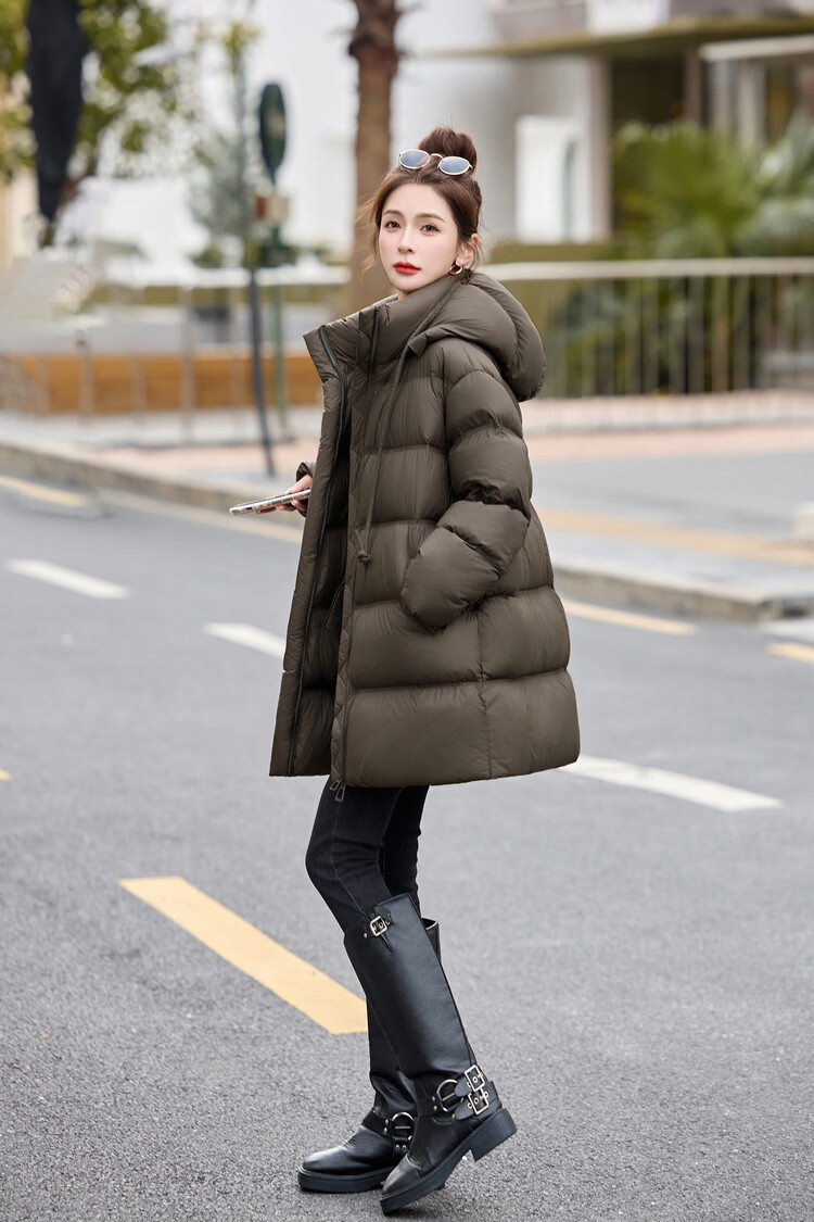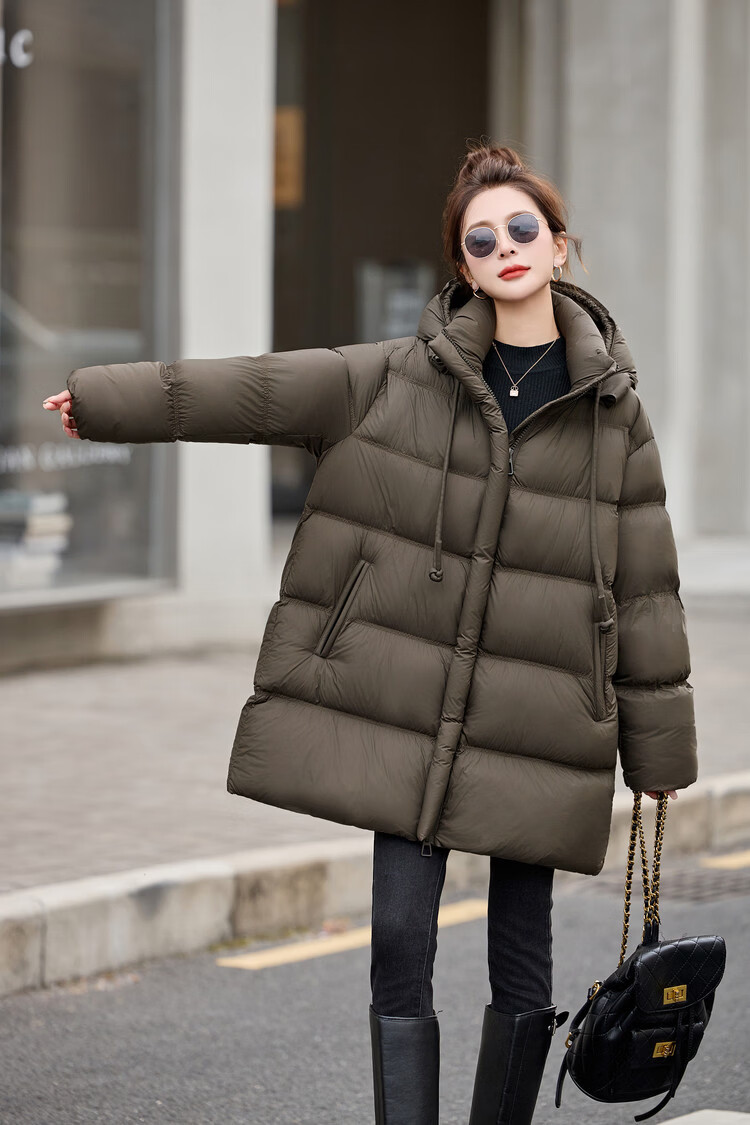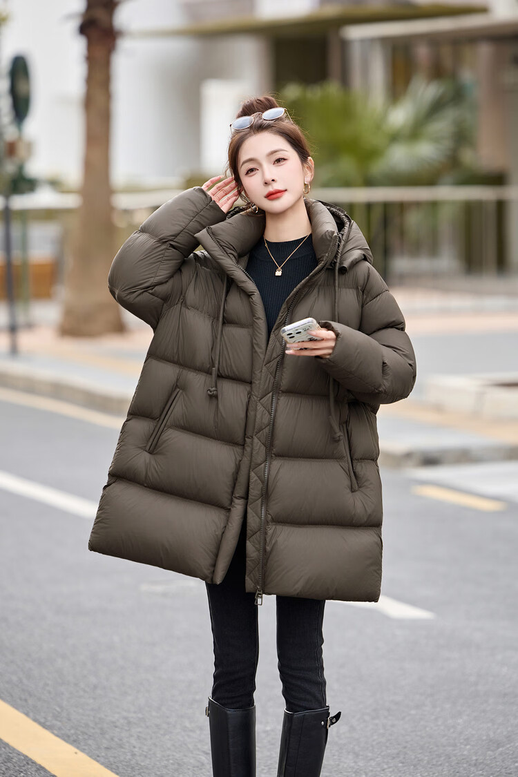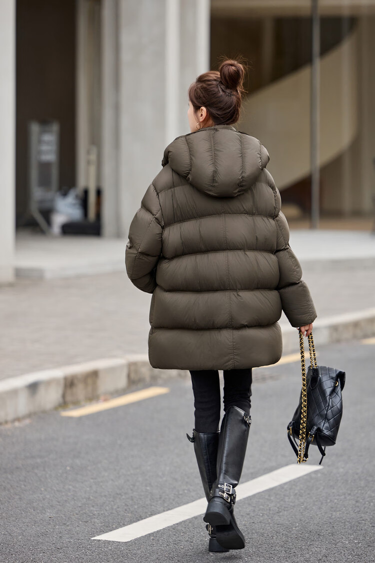 ROMON High-end Puff Hooded Down Jacket Women's Mid-Length 2025 Winter New Style Covering Buttocks, Western Style Thickened Warm Jacket, Black M