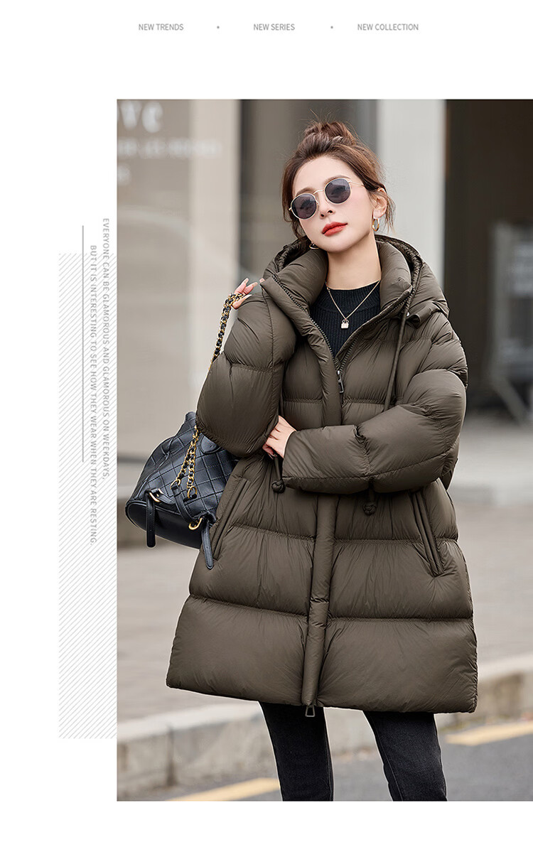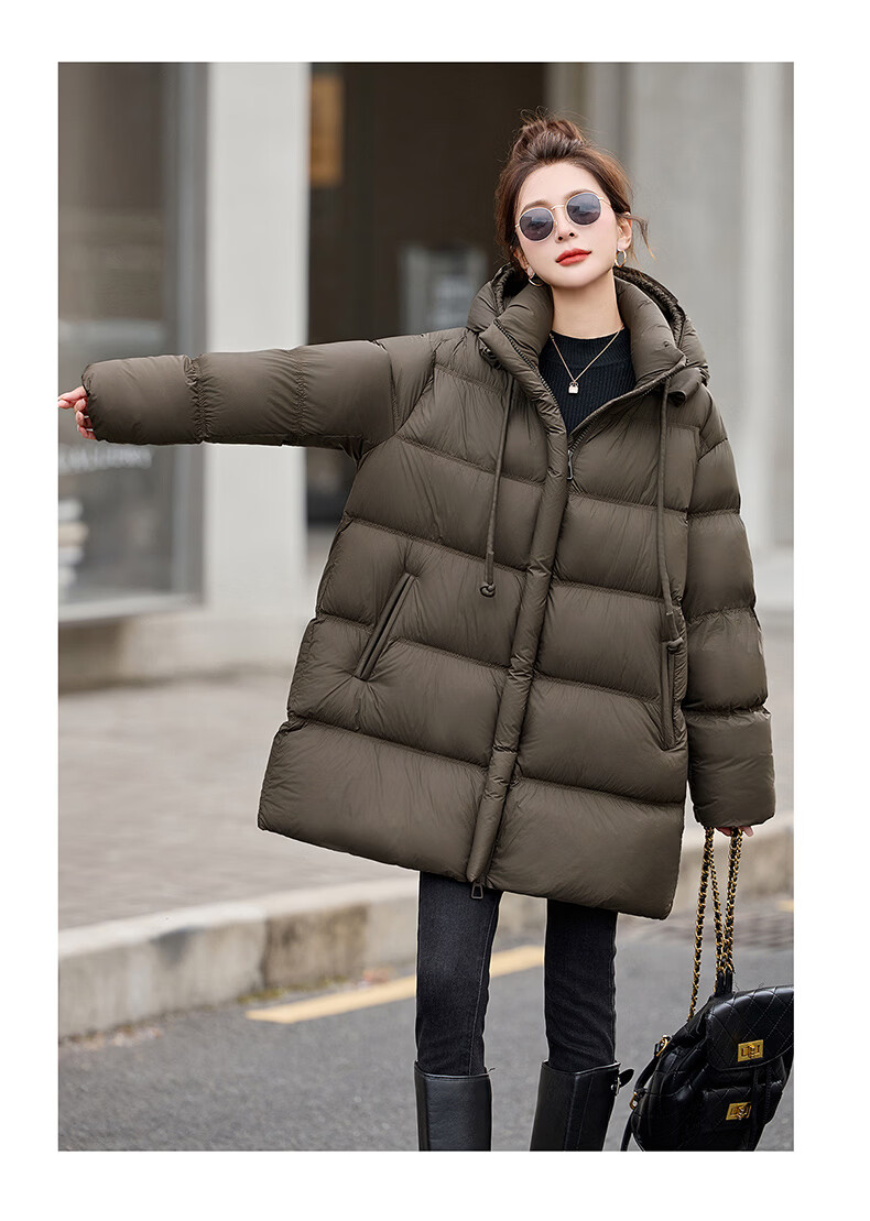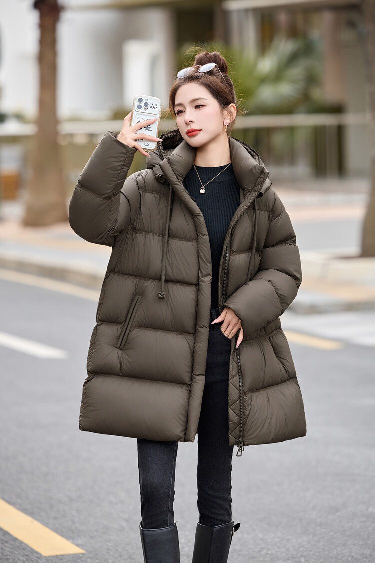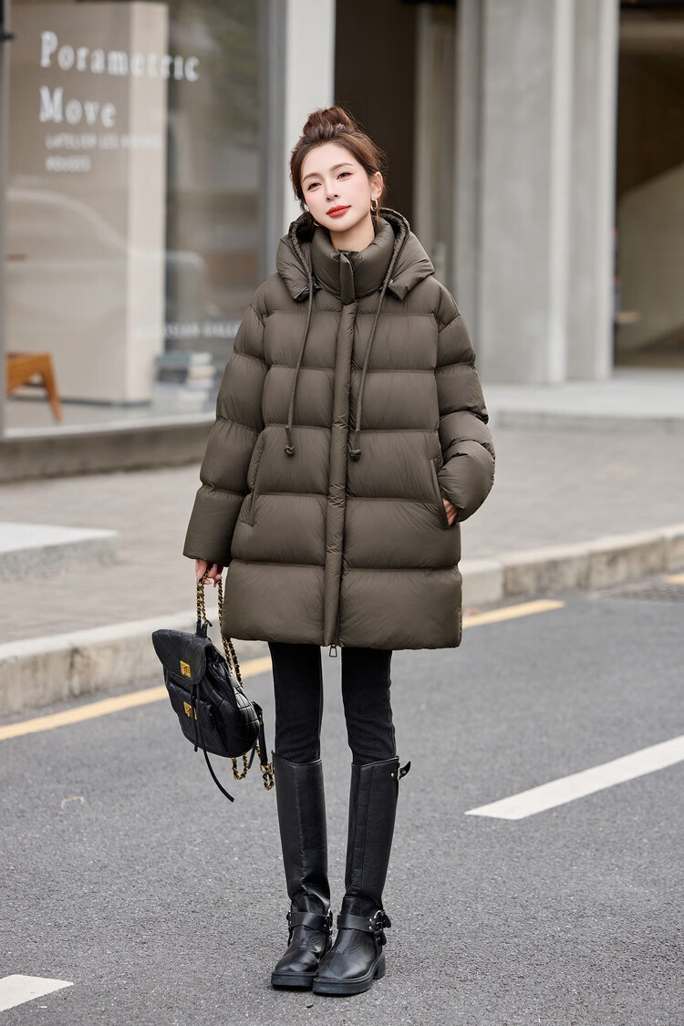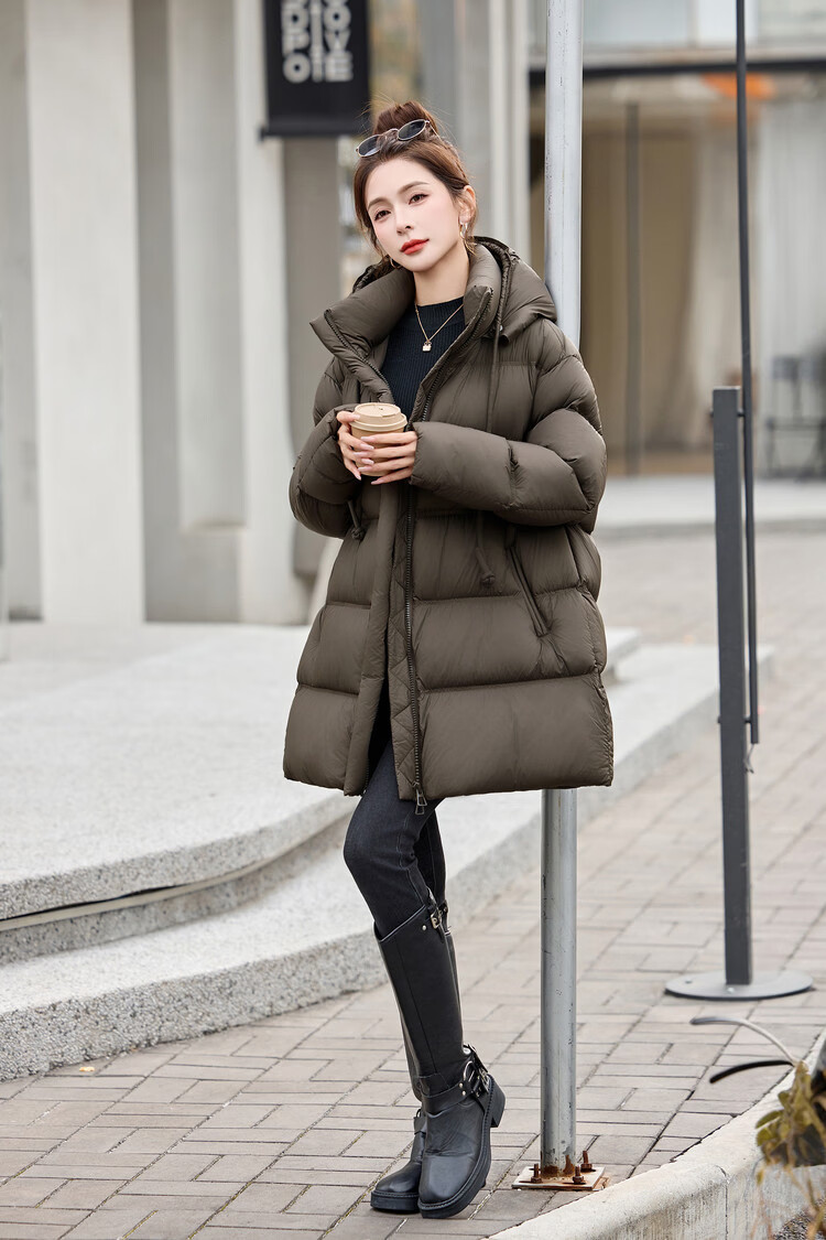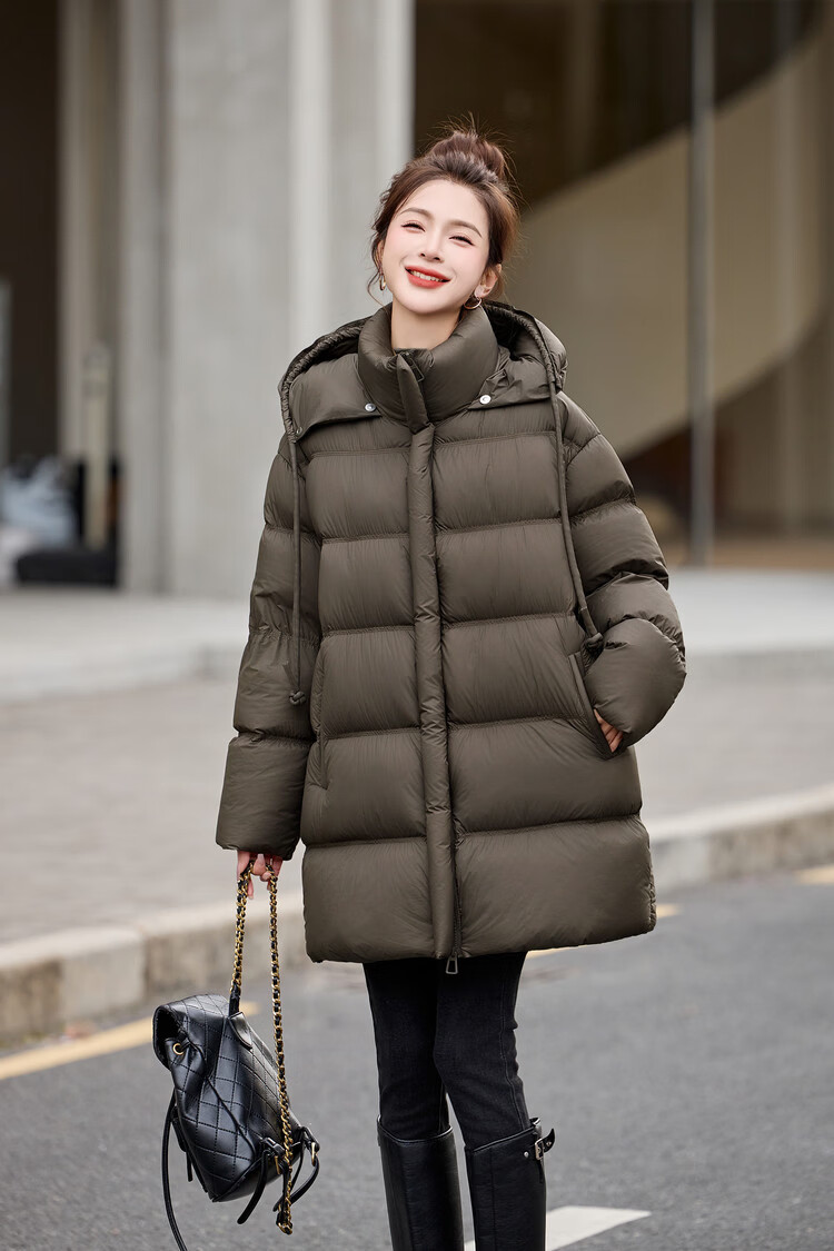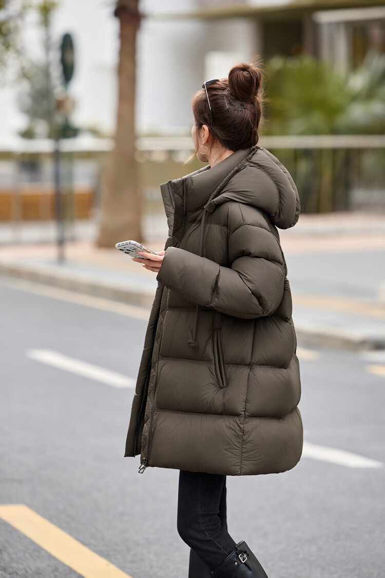 ROMON High-end Puff Hooded Down Jacket Women's Mid-Length 2025 Winter New Style Covering Buttocks, Western Style Thickened Warm Jacket, Black M