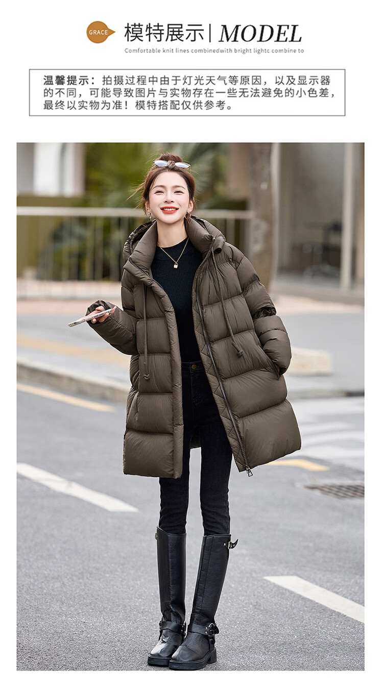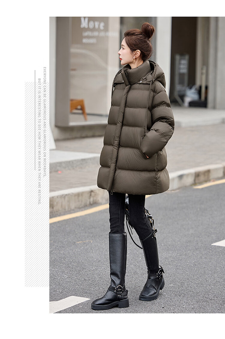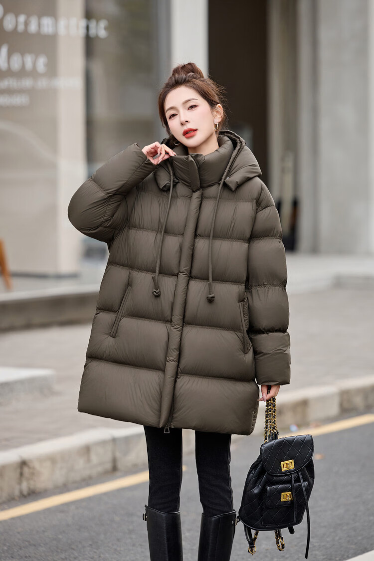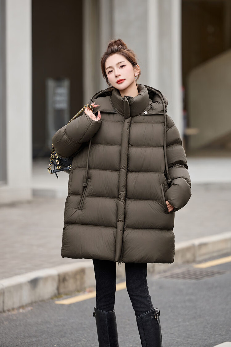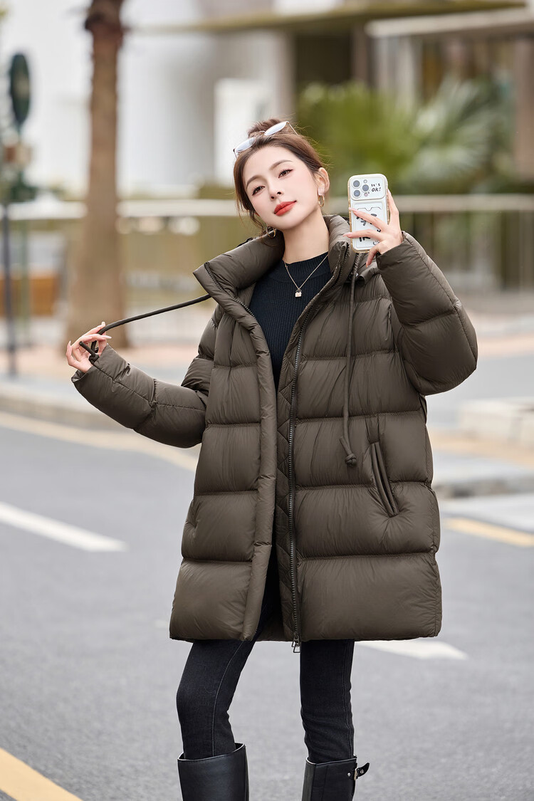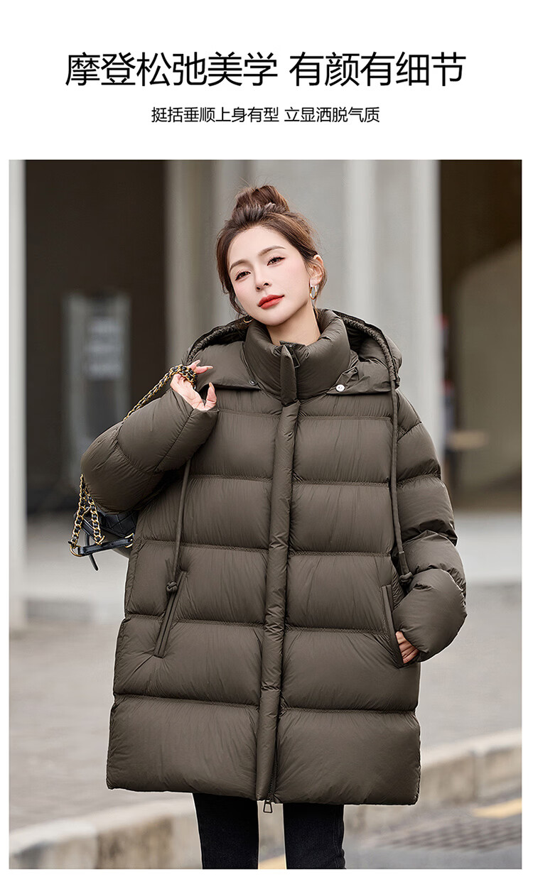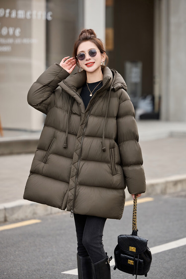 ROMON High-end Puff Hooded Down Jacket Women's Mid-Length 2025 Winter New Style Covering Buttocks, Western Style Thickened Warm Jacket, Black M
