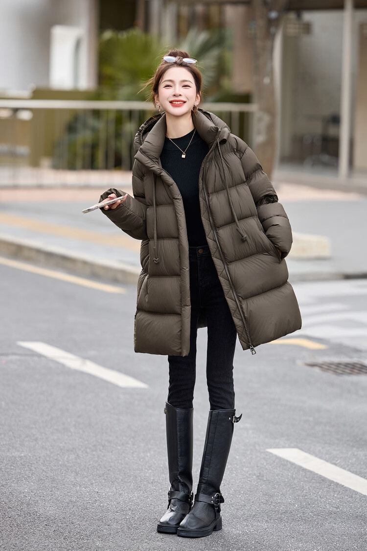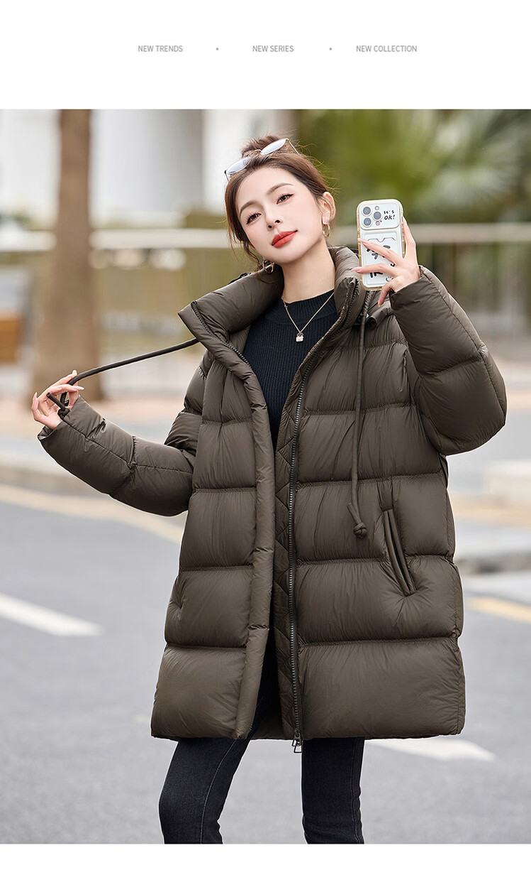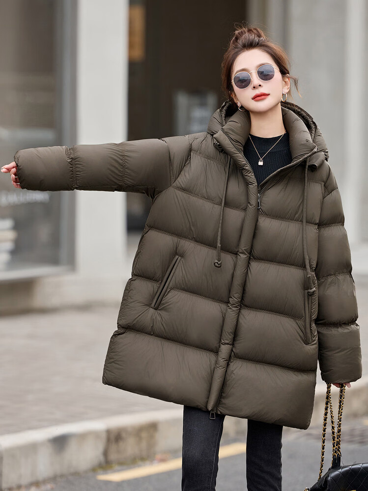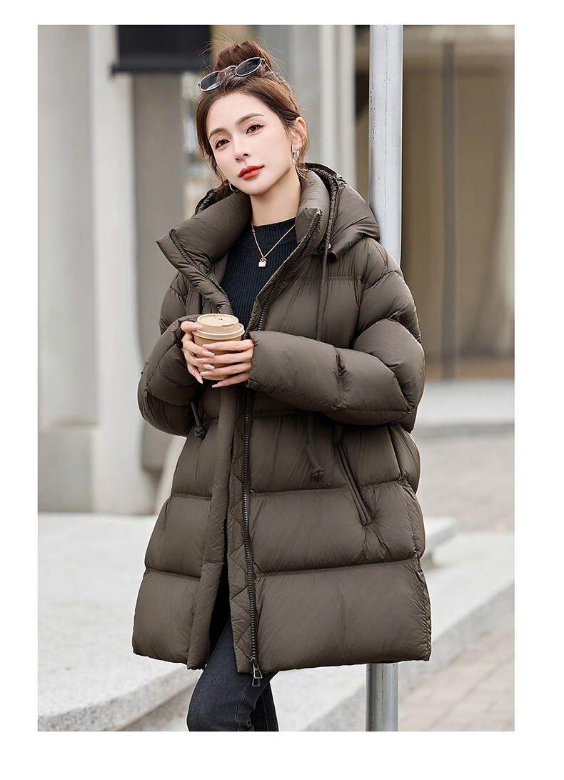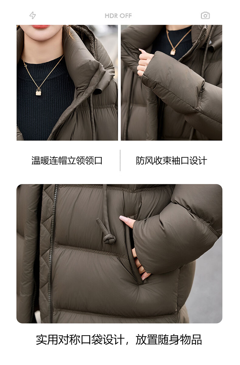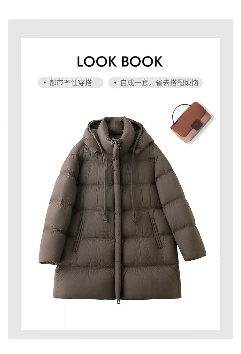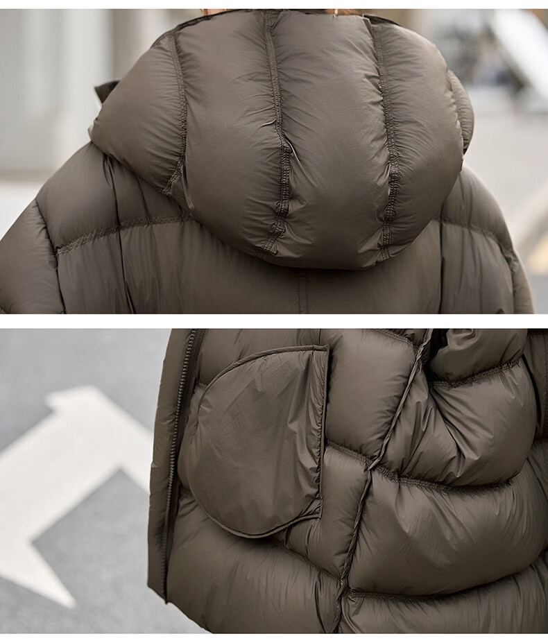 ROMON High-end Puff Hooded Down Jacket Women's Mid-Length 2025 Winter New Style Covering Buttocks, Western Style Thickened Warm Jacket, Black M