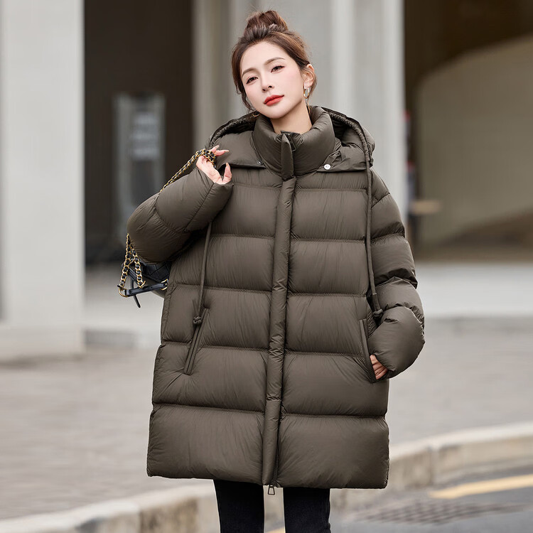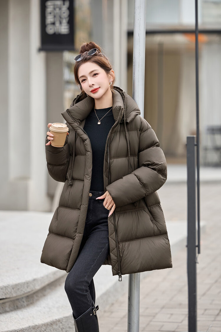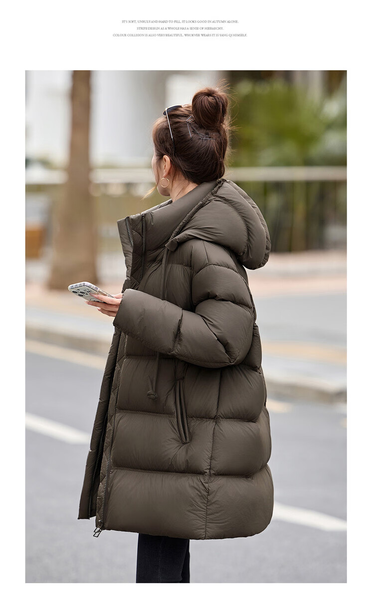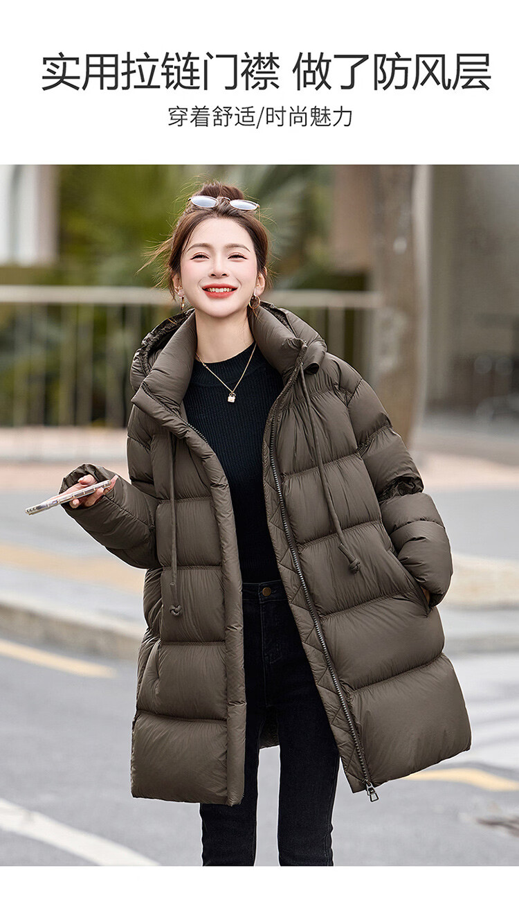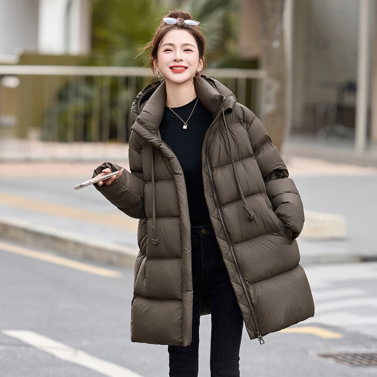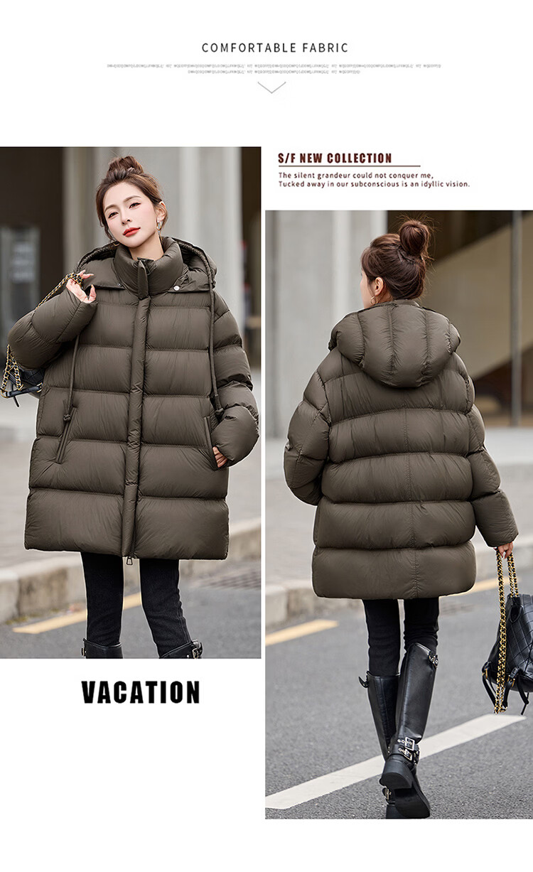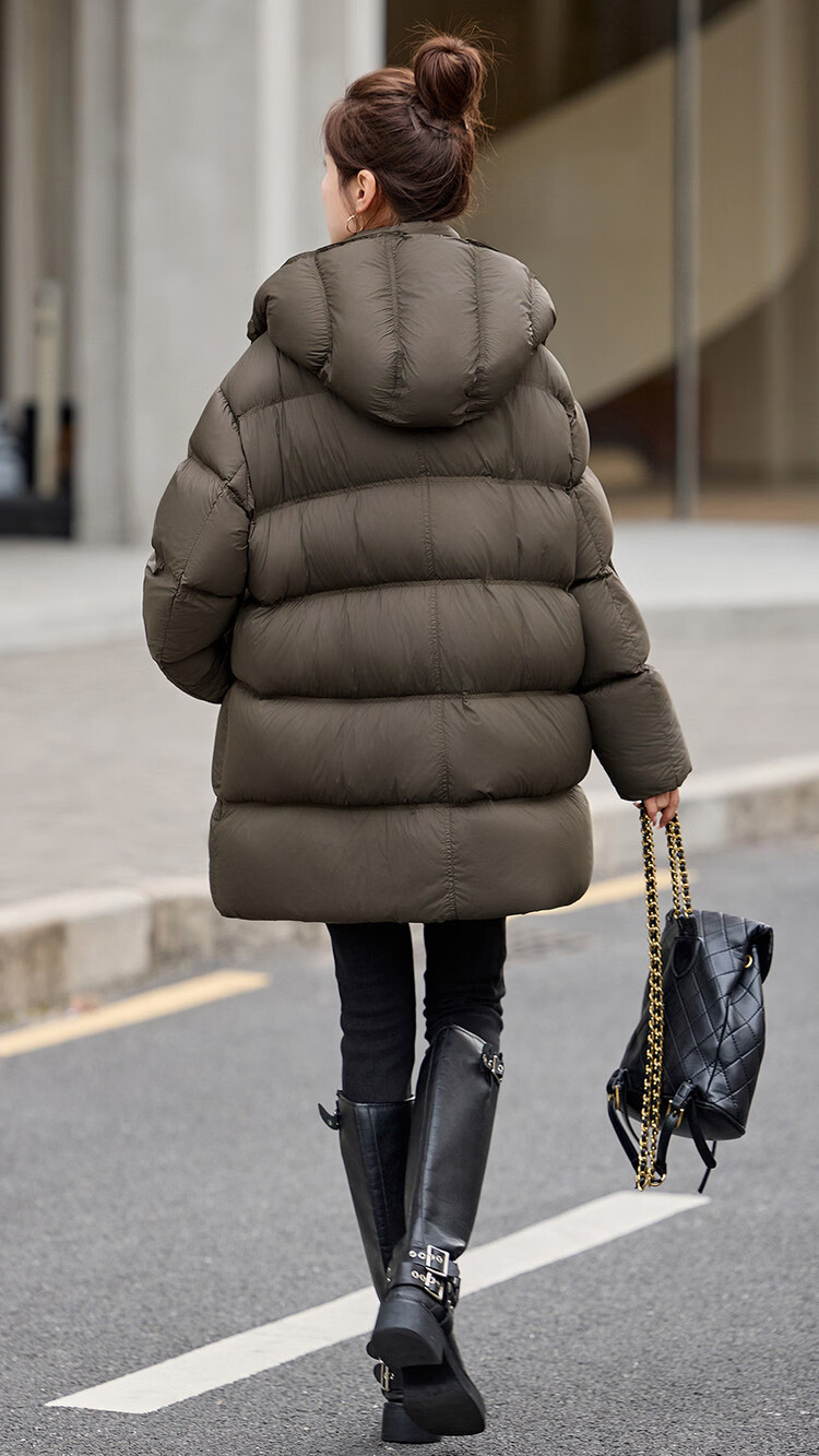 ROMON High-end Puff Hooded Down Jacket Women's Mid-Length 2025 Winter New Style Covering Buttocks, Western Style Thickened Warm Jacket, Black M