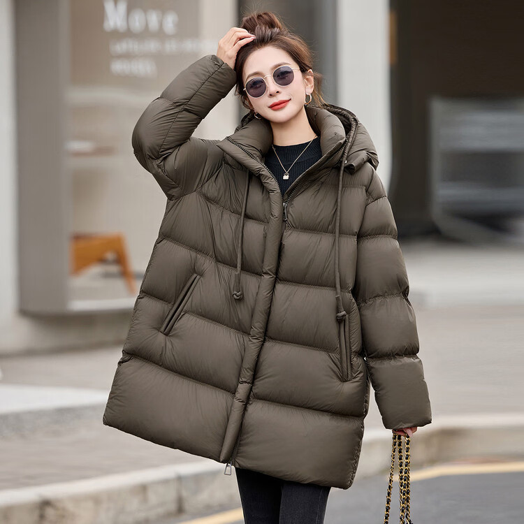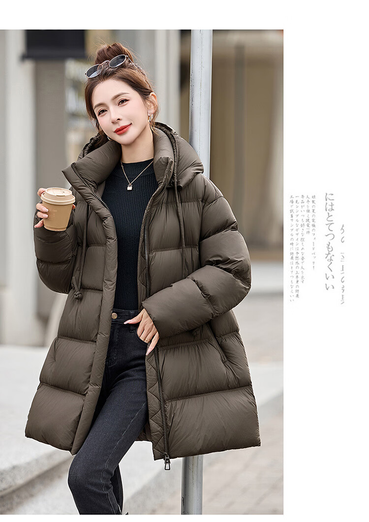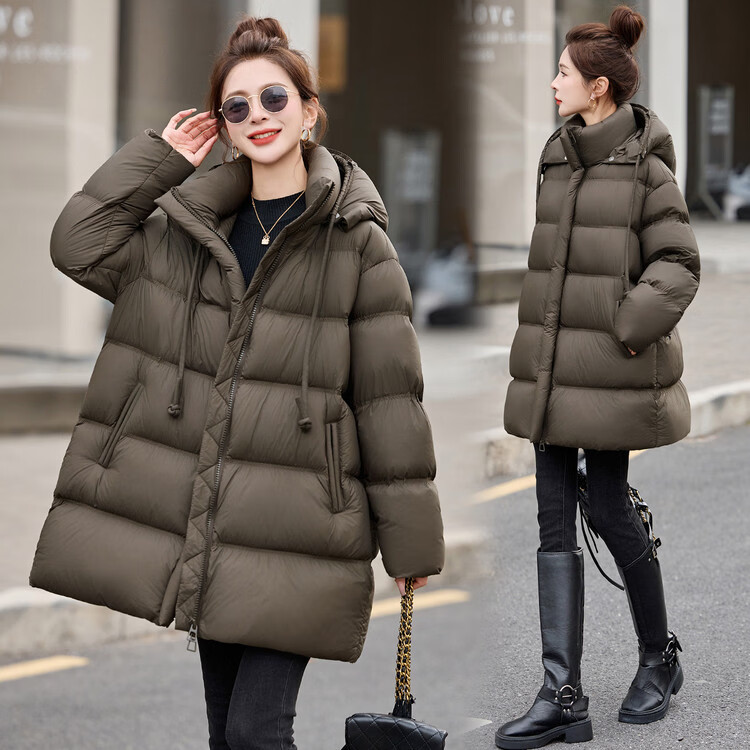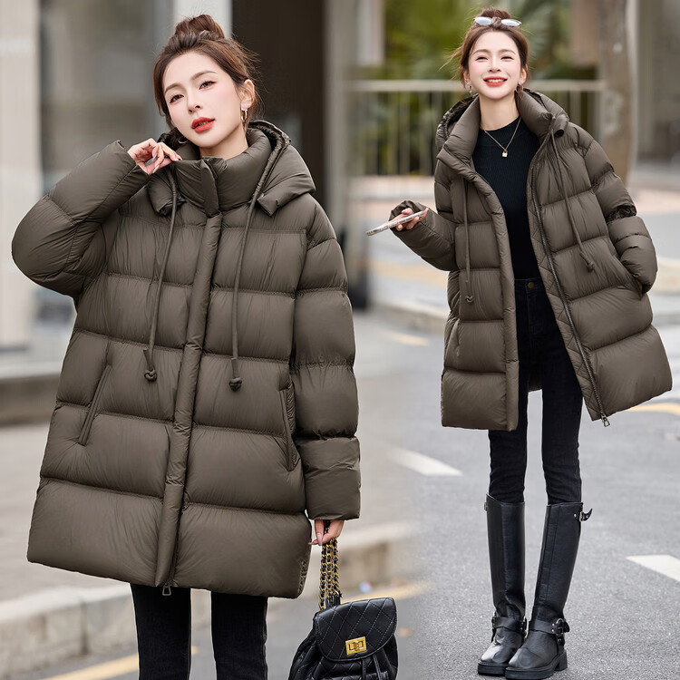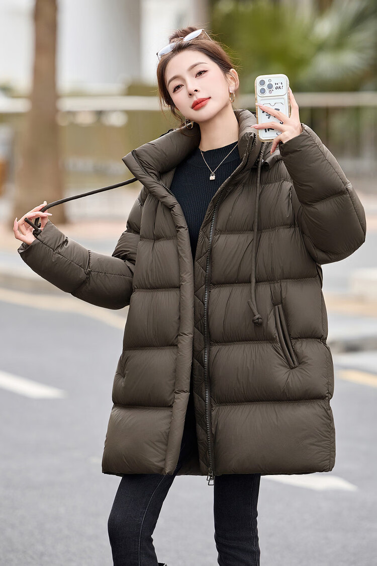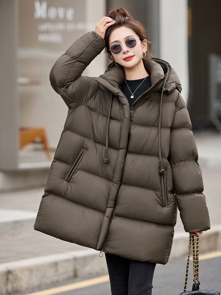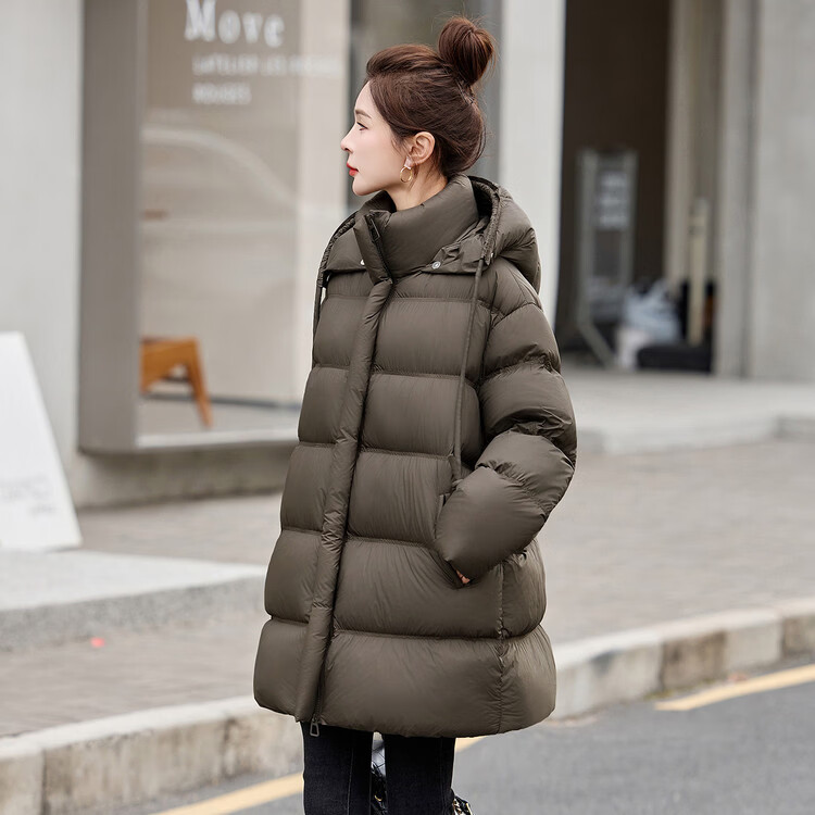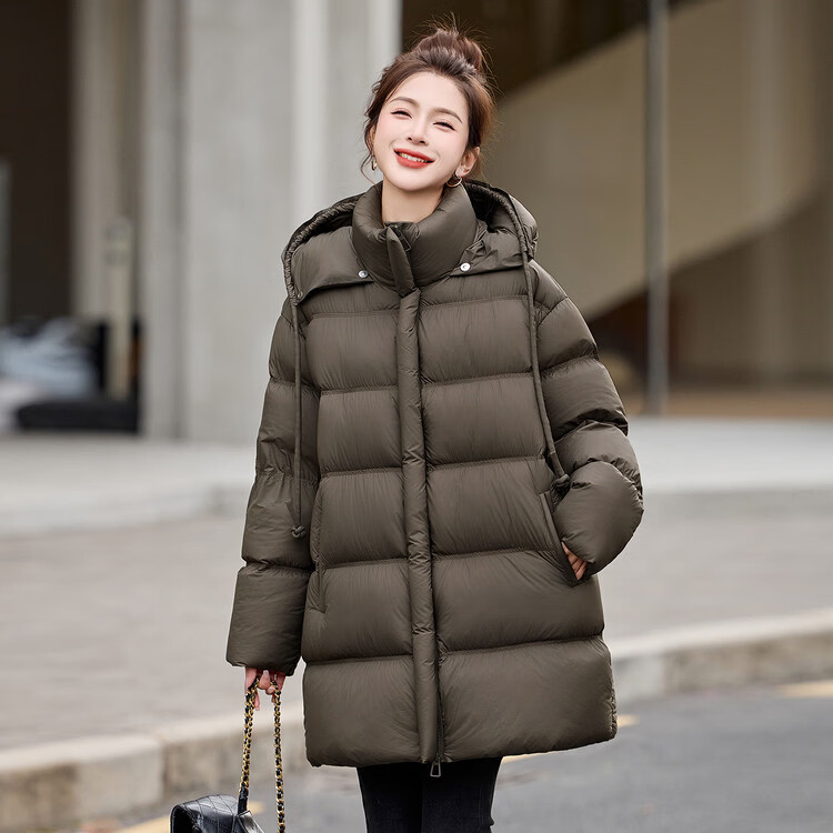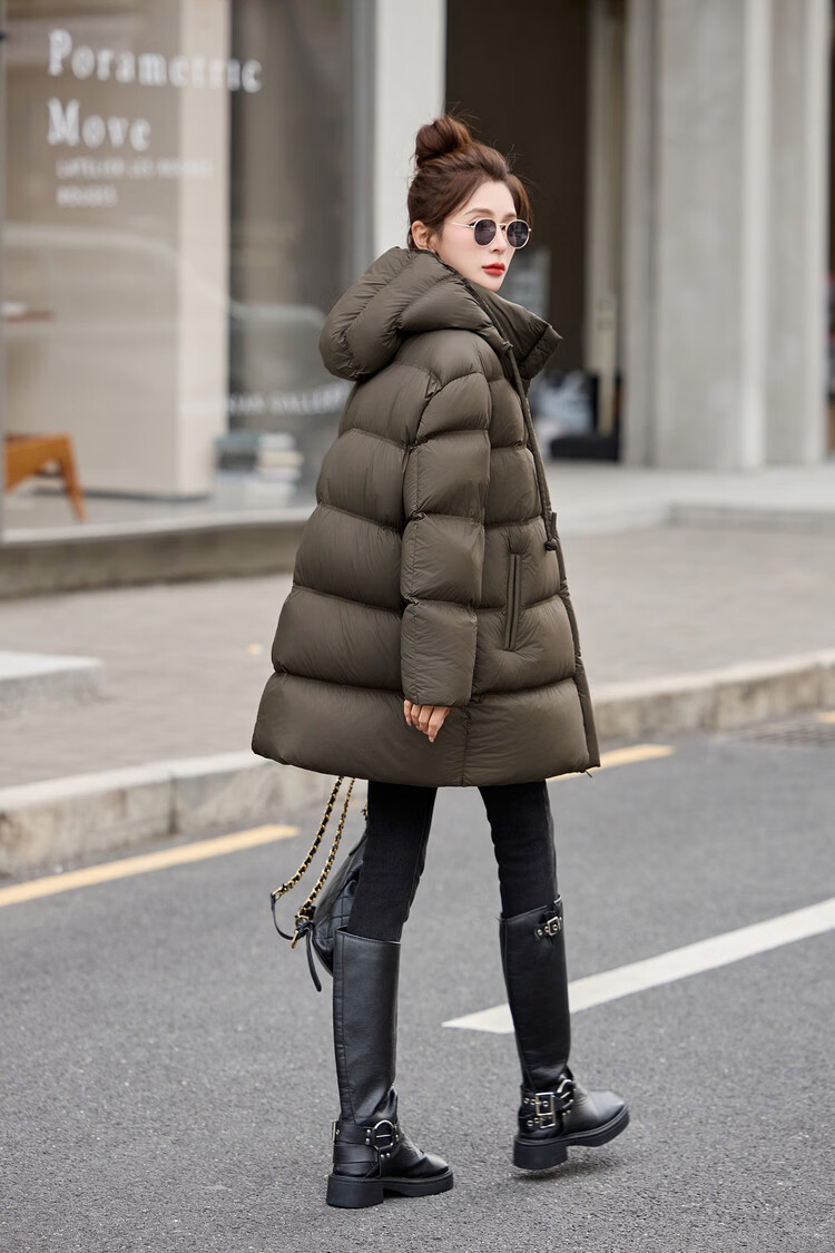 ROMON High-end Puff Hooded Down Jacket Women's Mid-Length 2025 Winter New Style Covering Buttocks, Western Style Thickened Warm Jacket, Black M