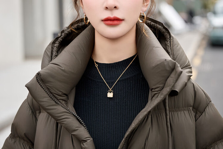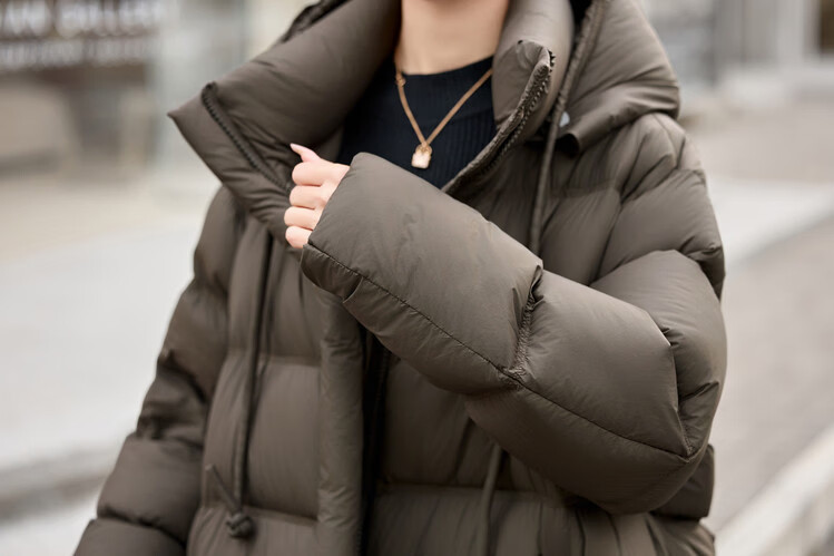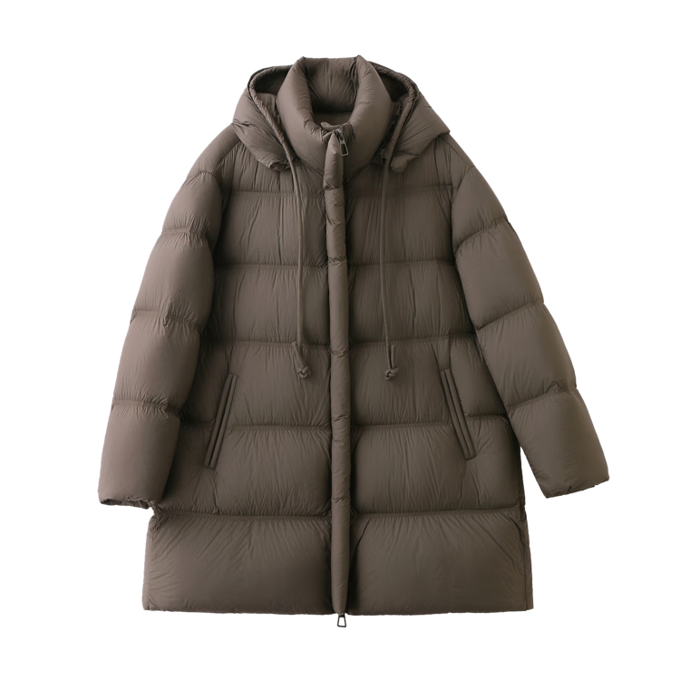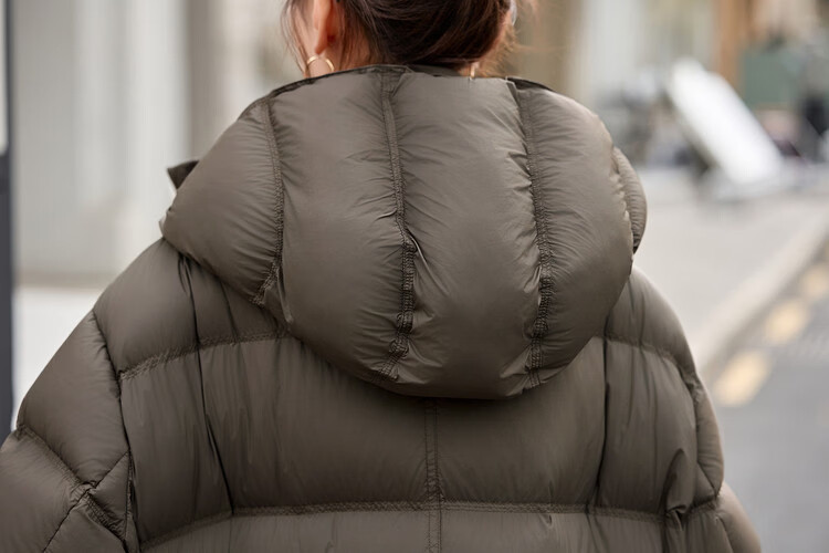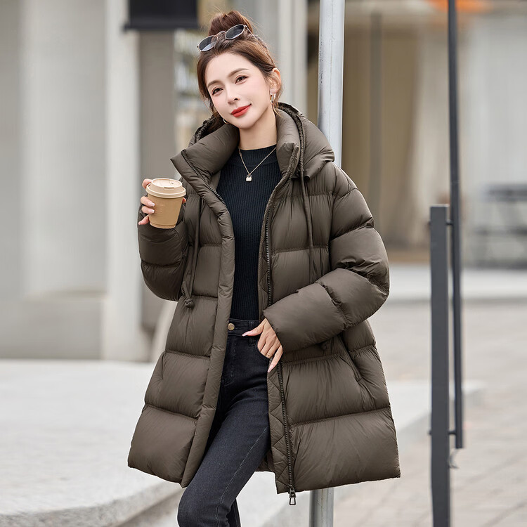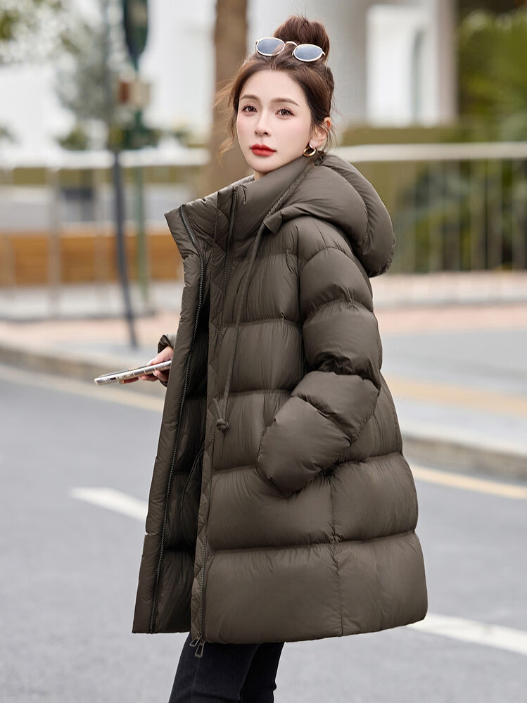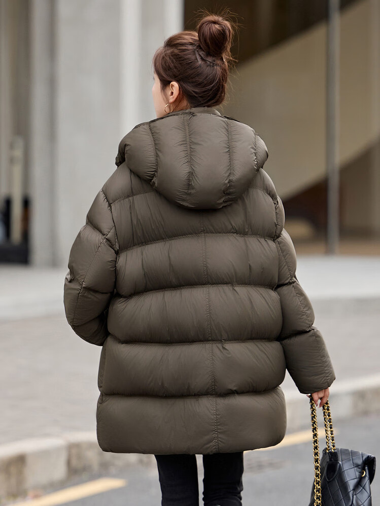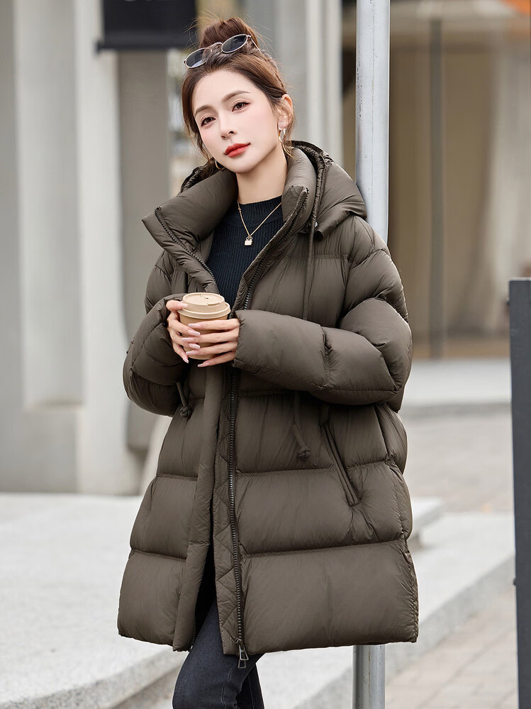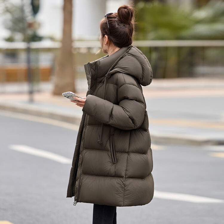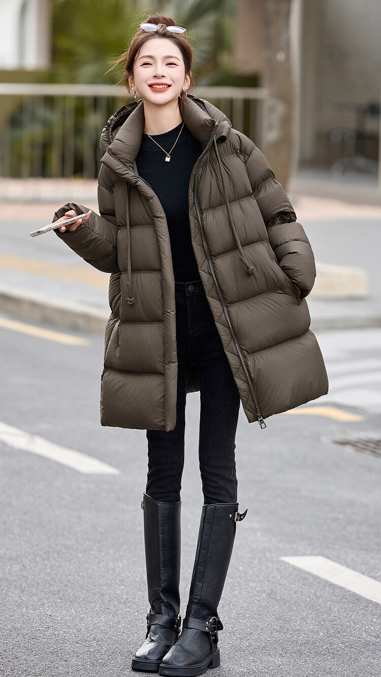 ROMON High-end Puff Hooded Down Jacket Women's Mid-Length 2025 Winter New Style Covering Buttocks, Western Style Thickened Warm Jacket, Black M