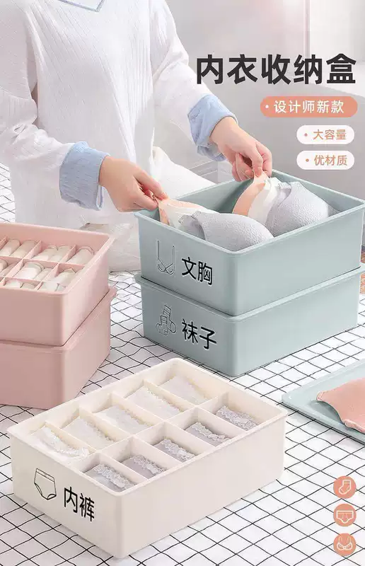 Yusenyi Underwear Storage Box Thickened and Durable for Underwear and Socks Bra Compartment Storage Box Dormitory Storage Magic 3-in-1 Girly Pink (New Design | No Odor) Thickened PP Material 2-piece Set (Underwear Box-Socks