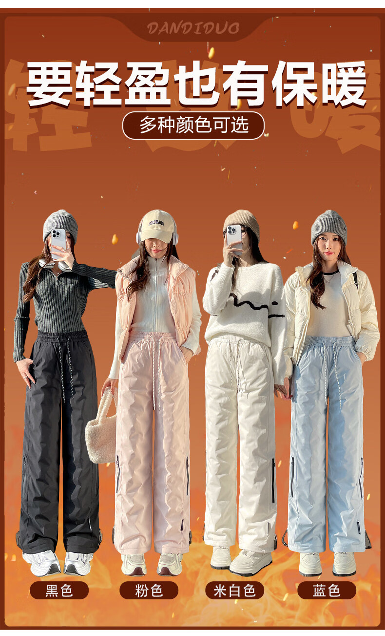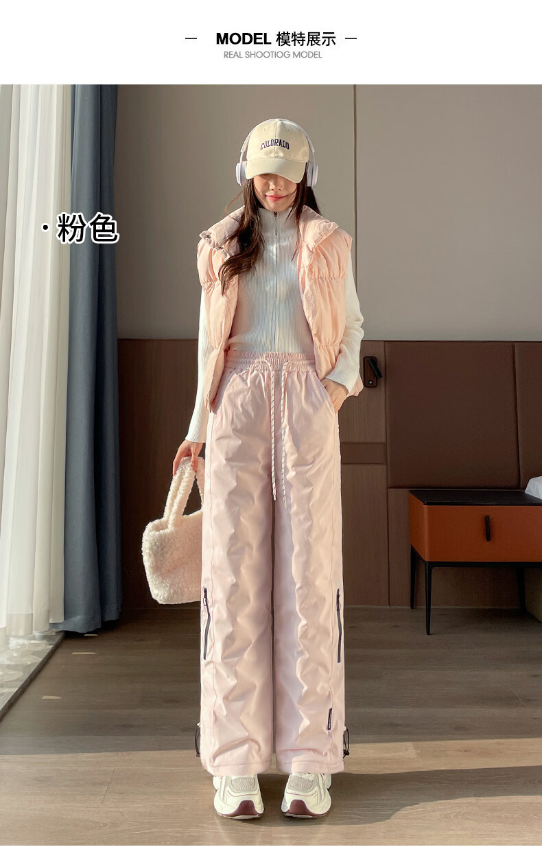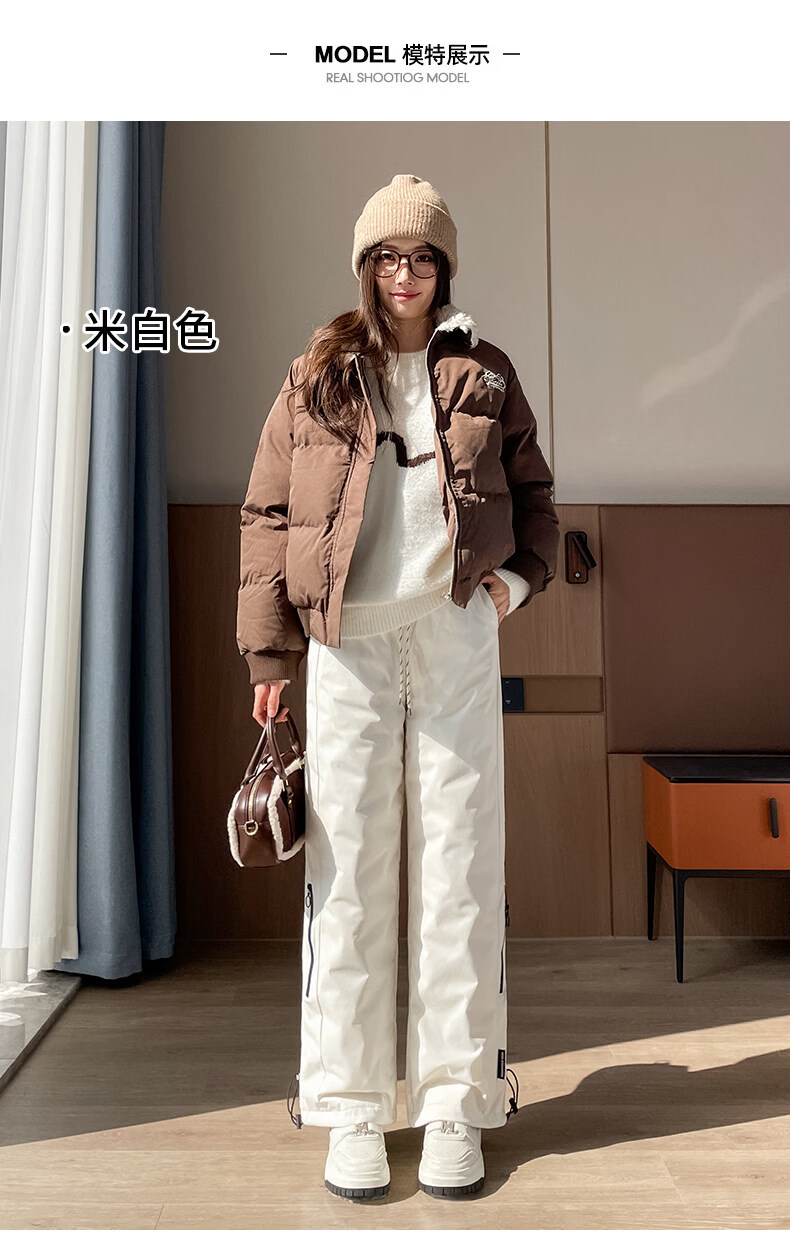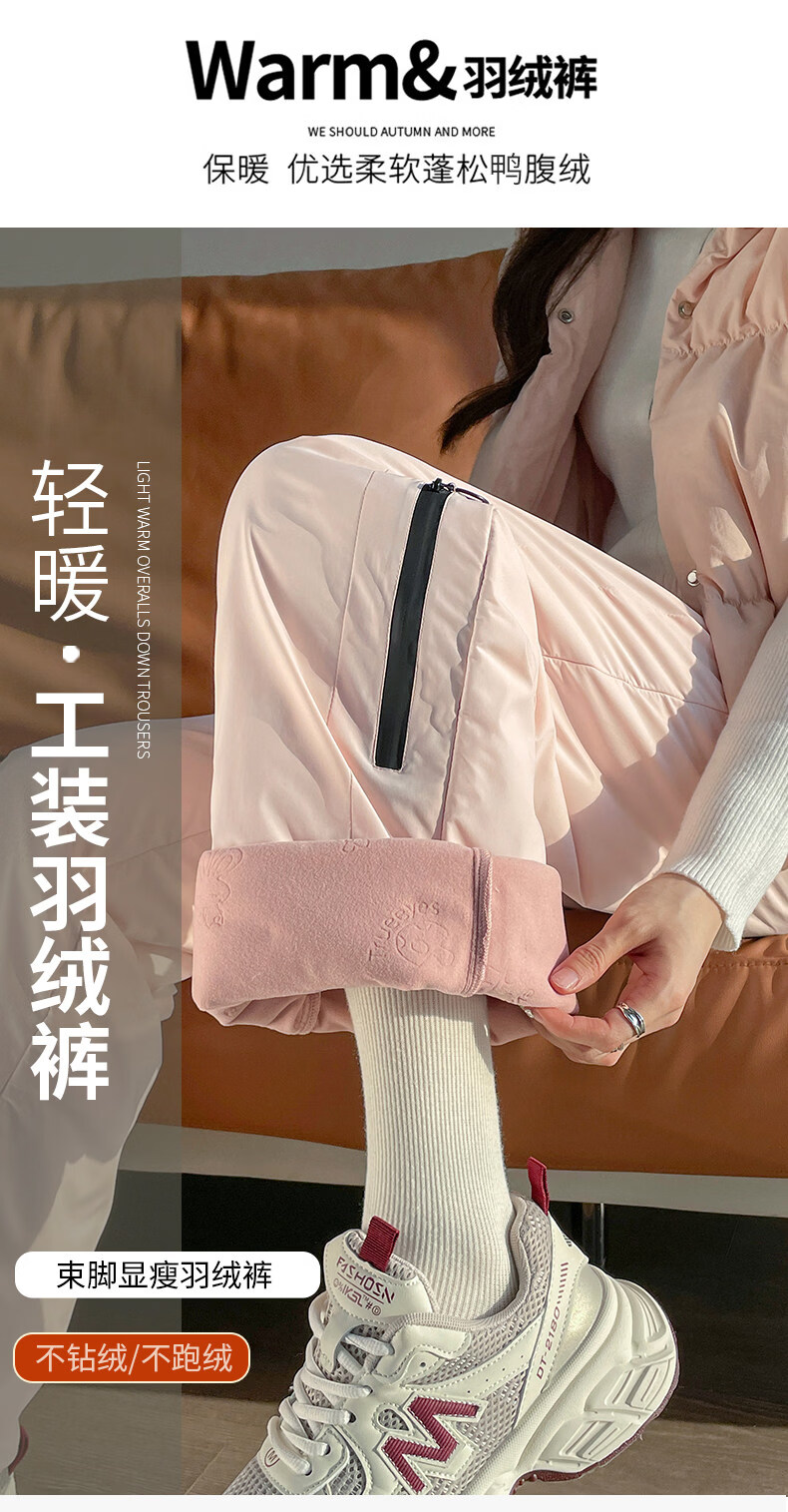 啄木鸟(TUCANO)加长阔腿工装羽绒裤女冬季外穿白鸭绒防寒保暖高个子哈尔滨厚棉裤 米白羽绒【常规款】 S 80-95斤