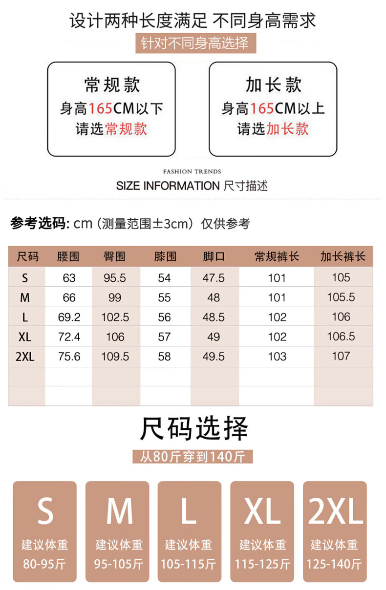 Outseam (cm) 99 cm 101.5 cm 104 cm 106.5 cm 109 cm