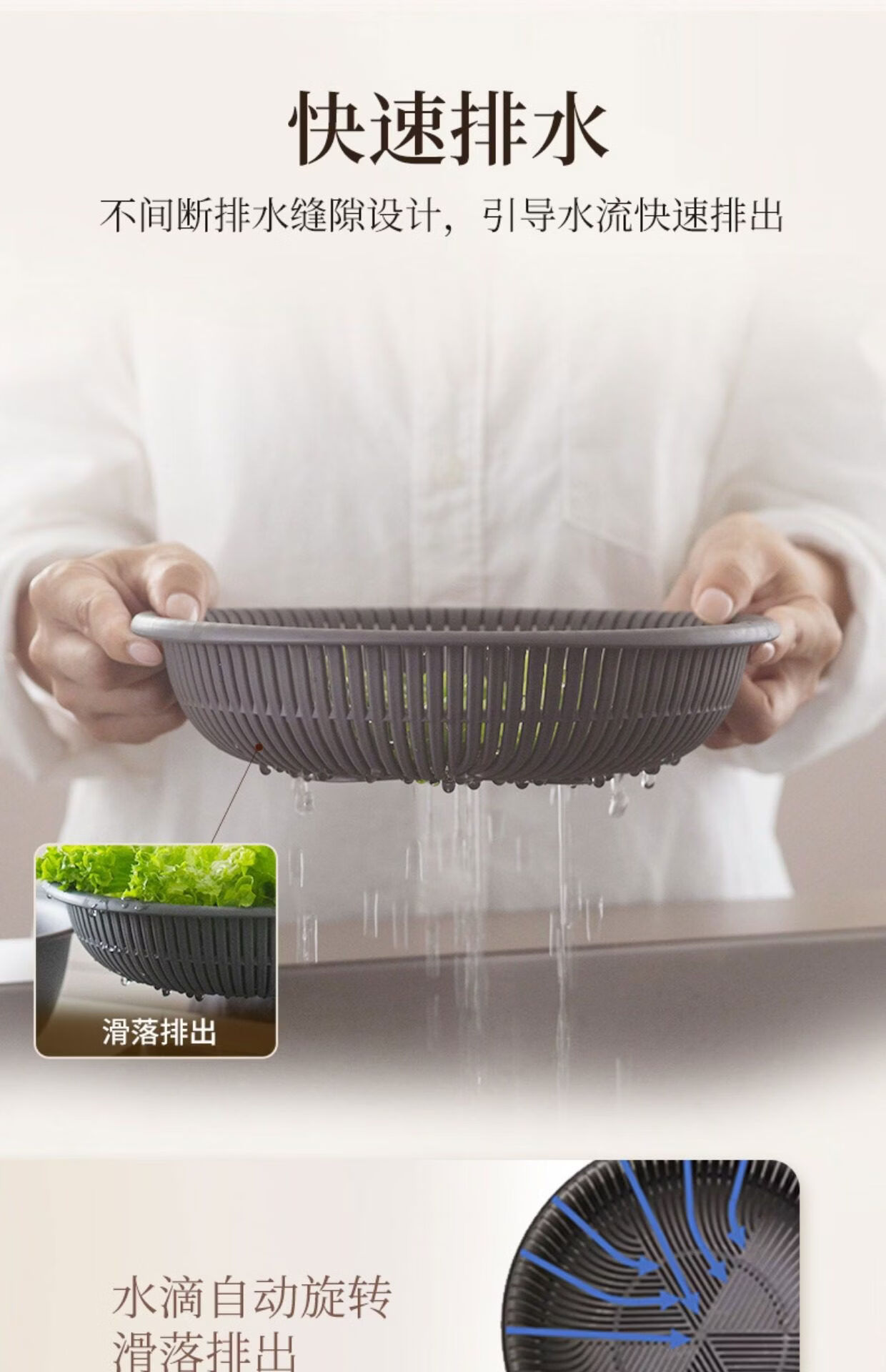 Ronghuashi Japanese MARNA multi-functional drain tray drain basket three-layer filter water washing vegetable basket washing fruit can be microwaved drain basin dark gray