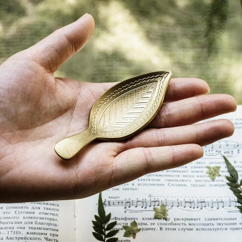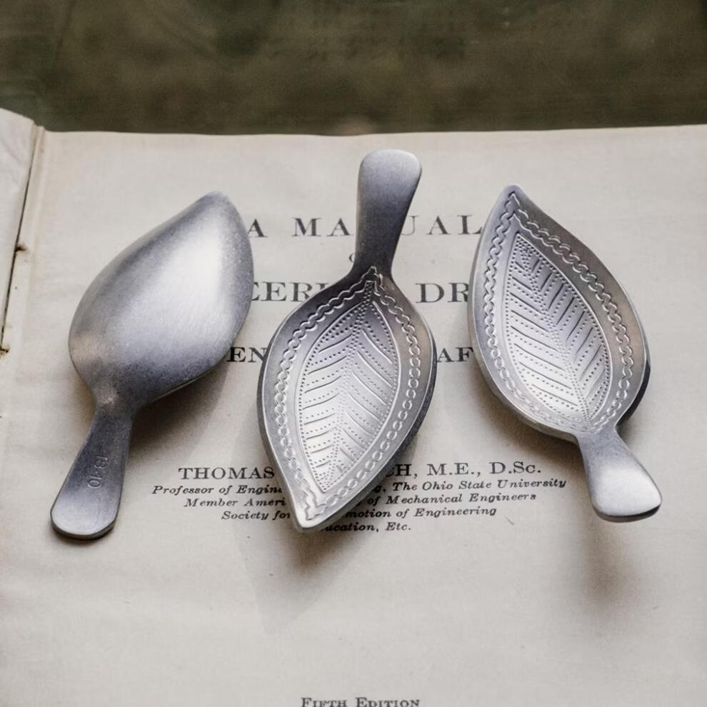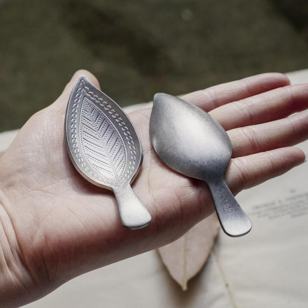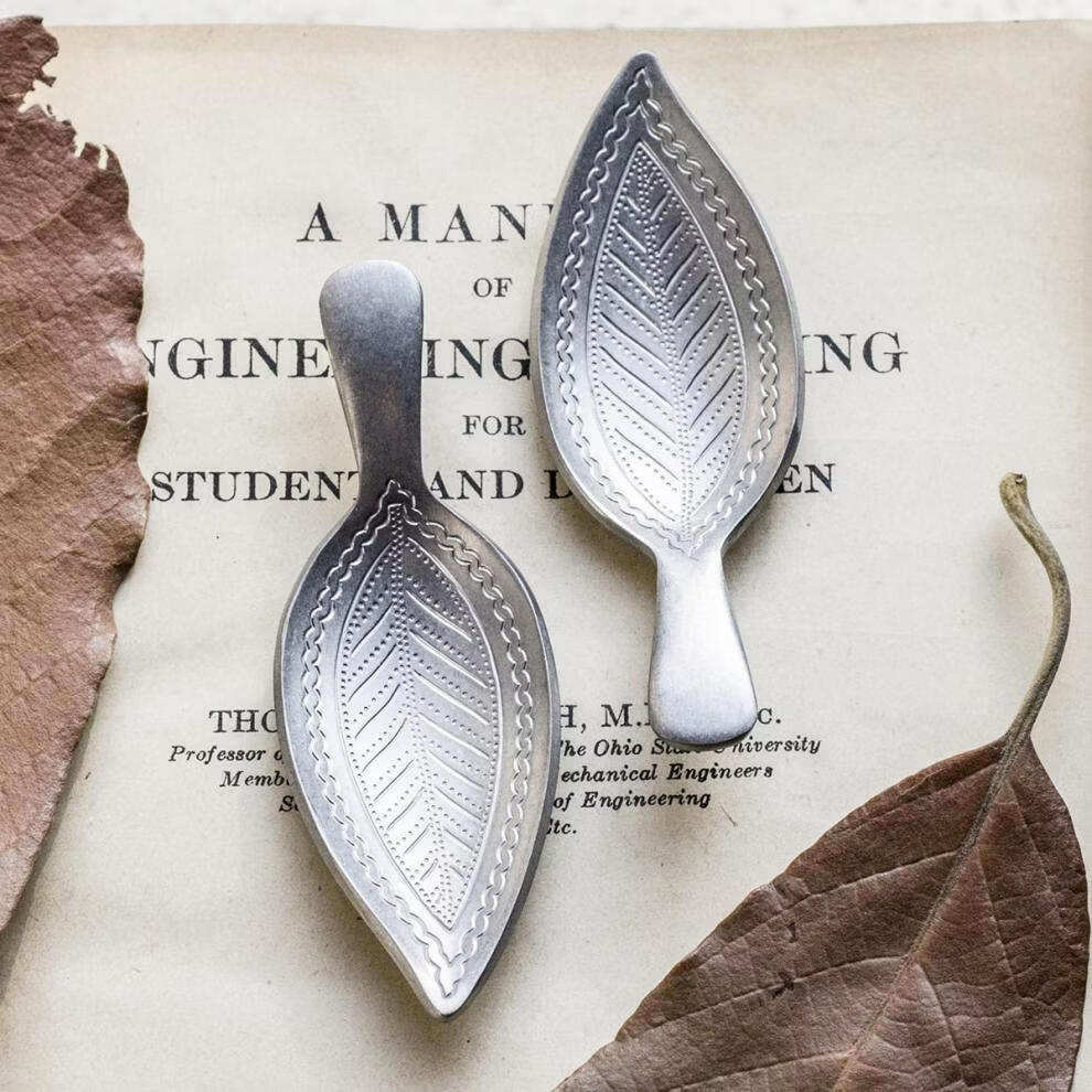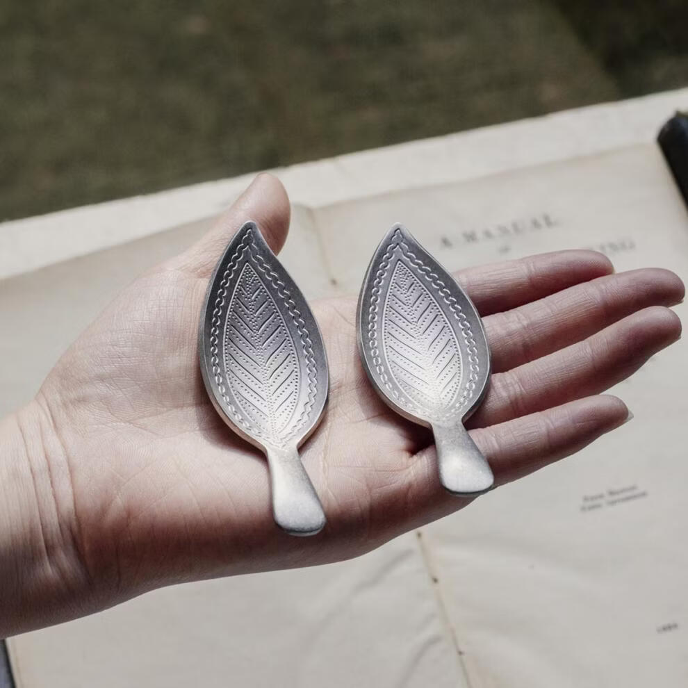 Jingdian 18-10 stainless steel retro snowflake distressed leaf art relief mini small teaspoon small tea shovel small tea utensil small tea leaf shape retro snowflake distressed 9.3cm