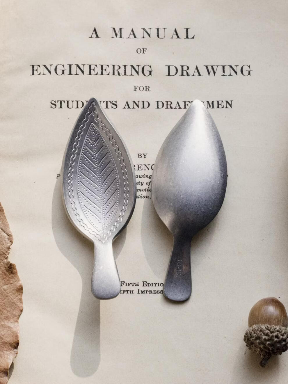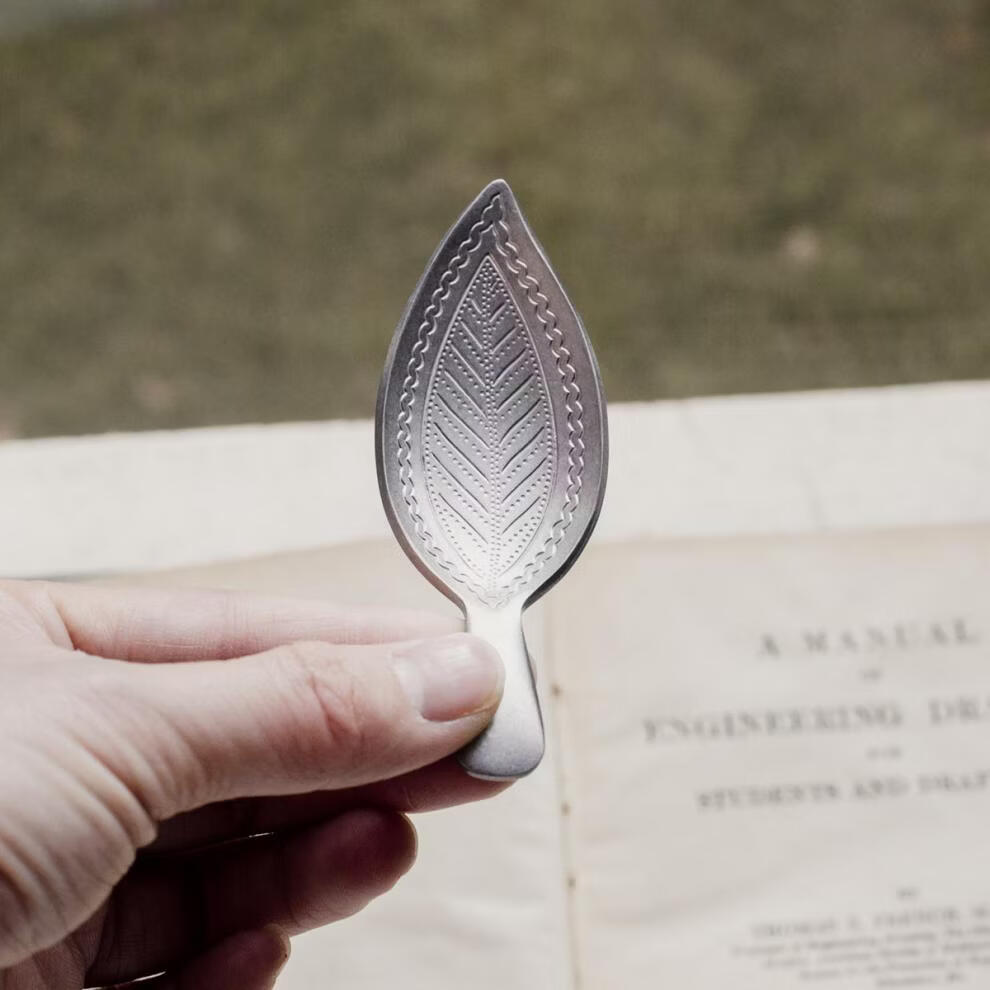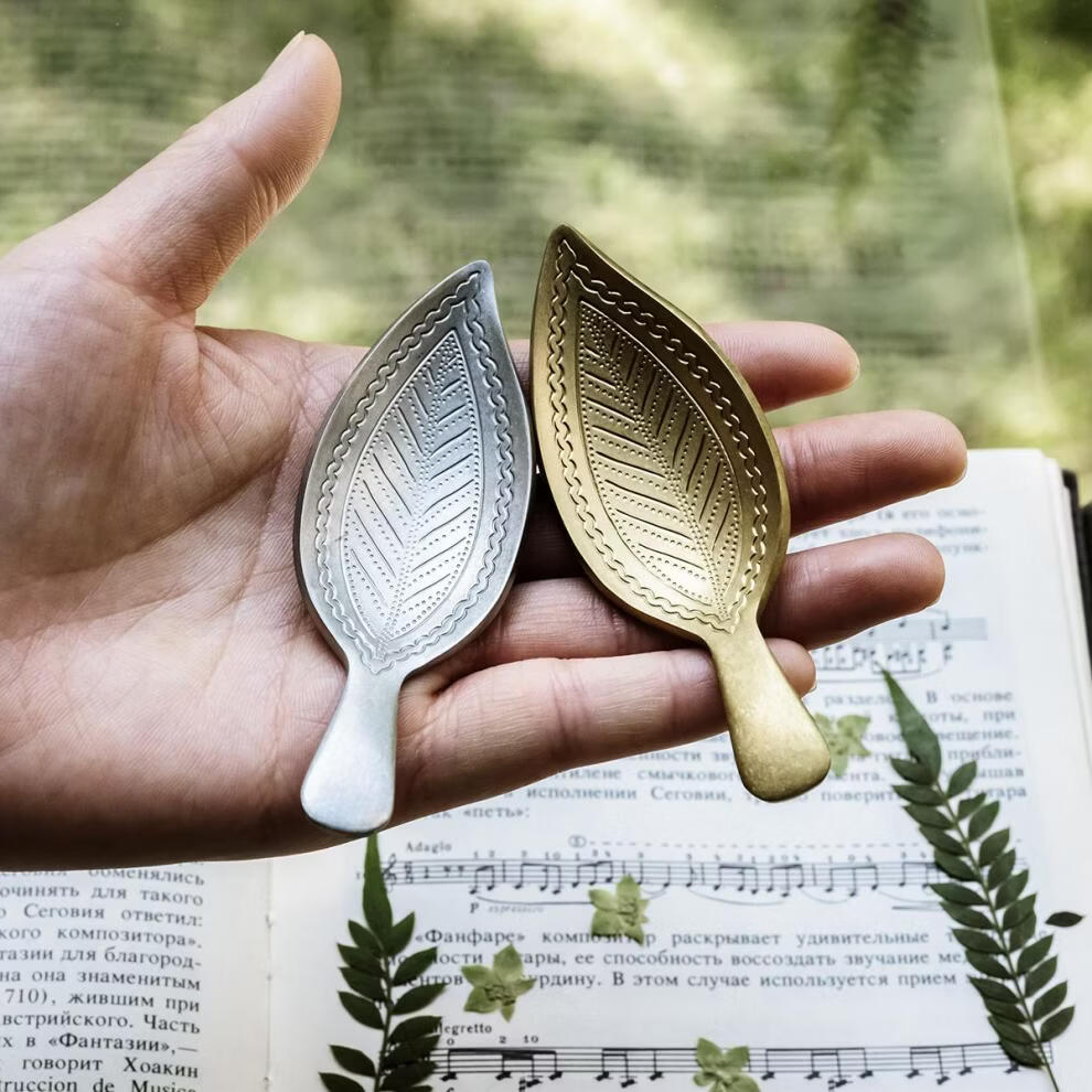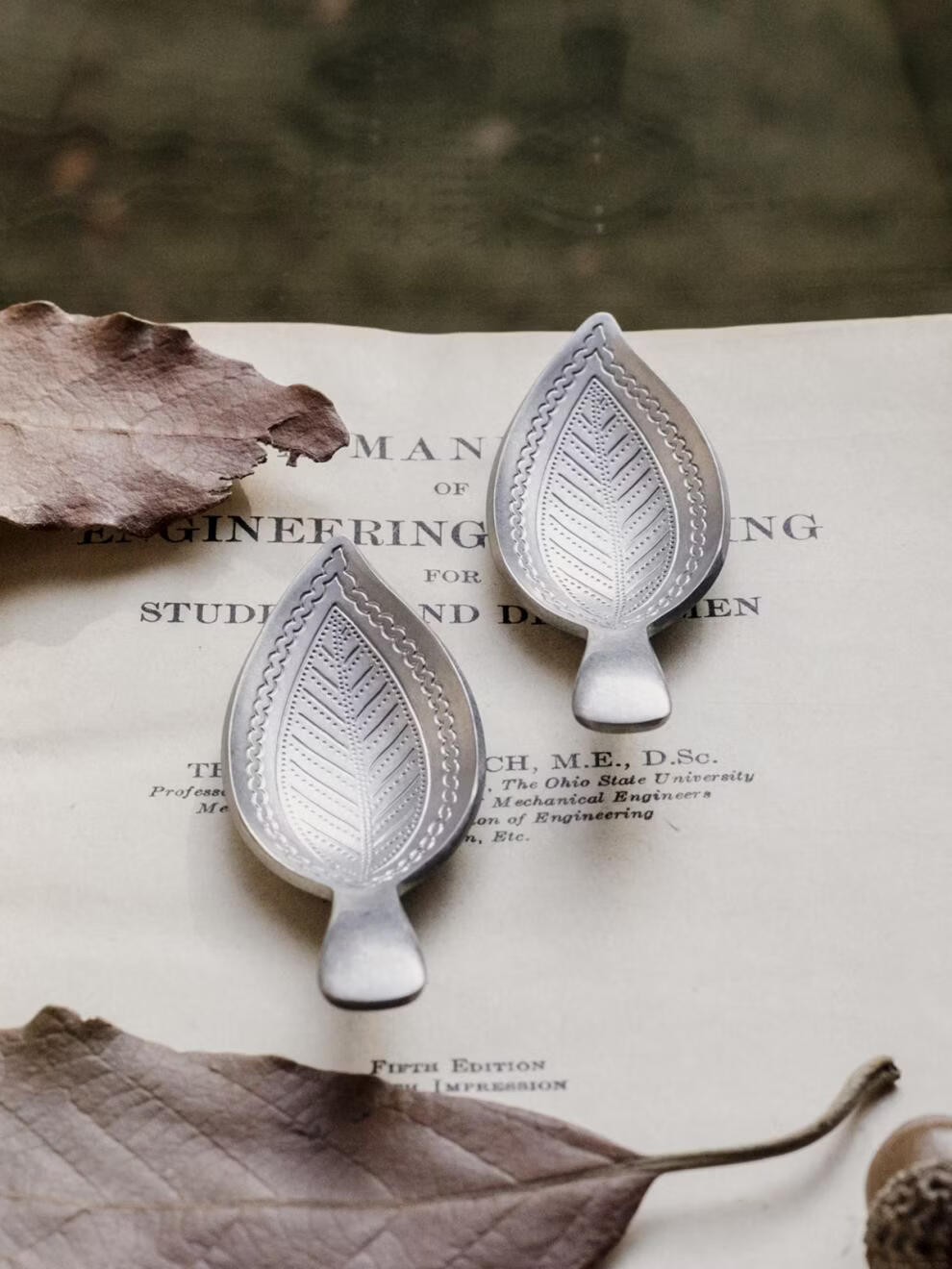 Jingdian 18-10 stainless steel retro snowflake distressed leaf art relief mini small teaspoon small tea shovel small tea utensil small tea leaf shape retro snowflake distressed 9.3cm