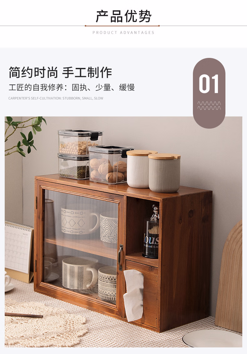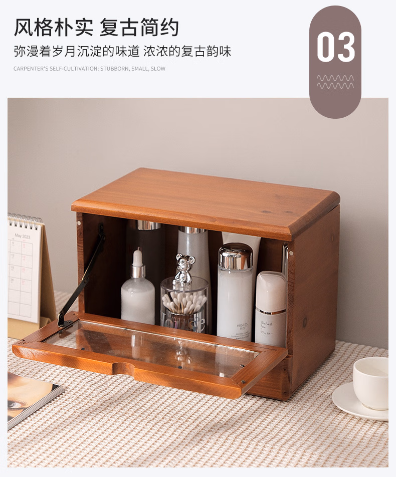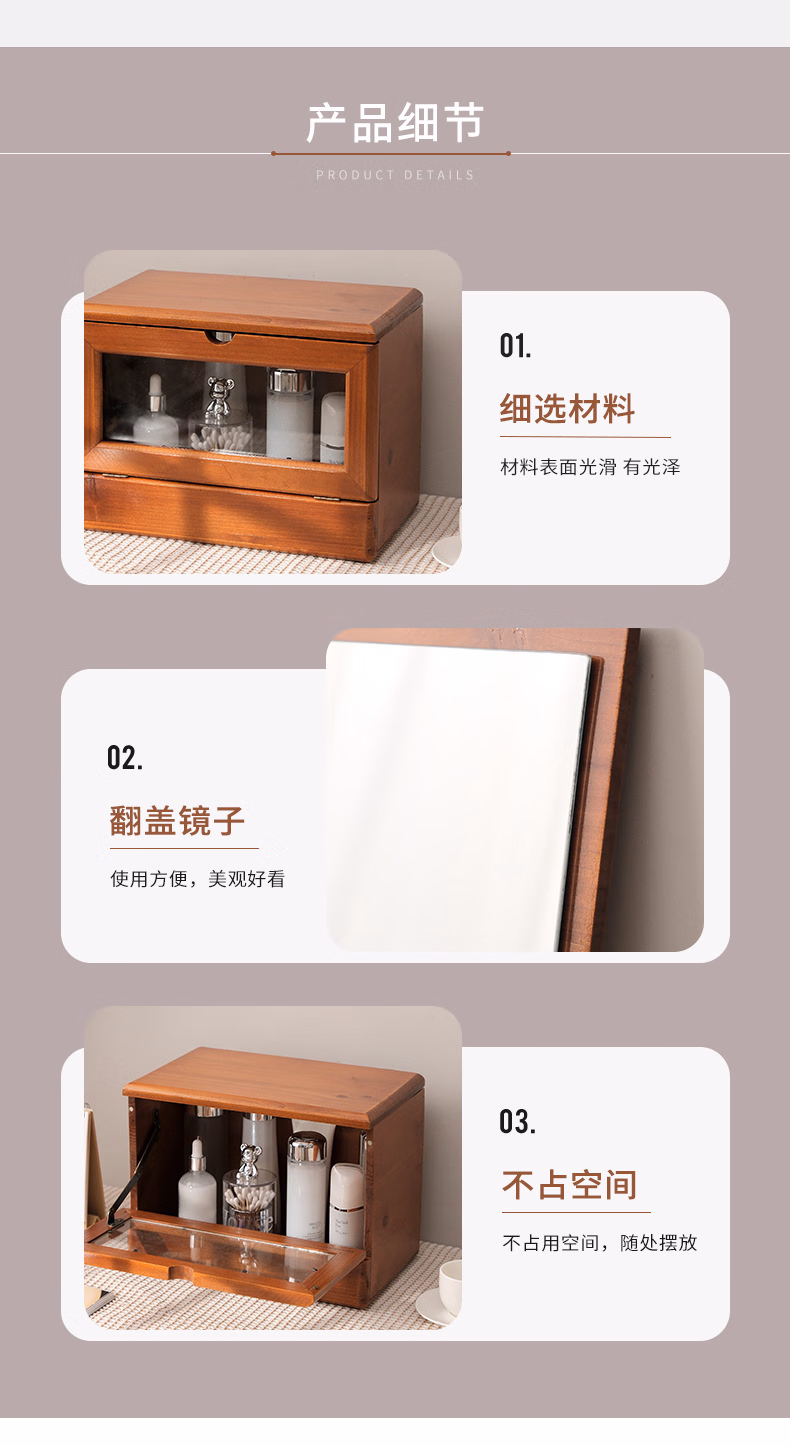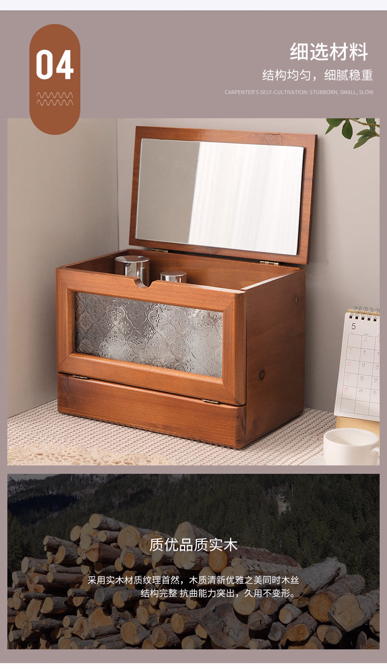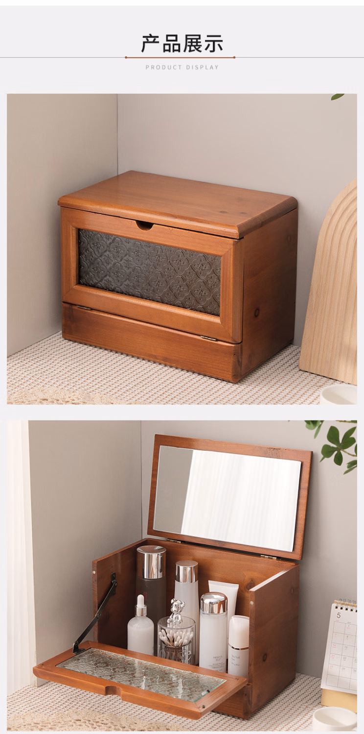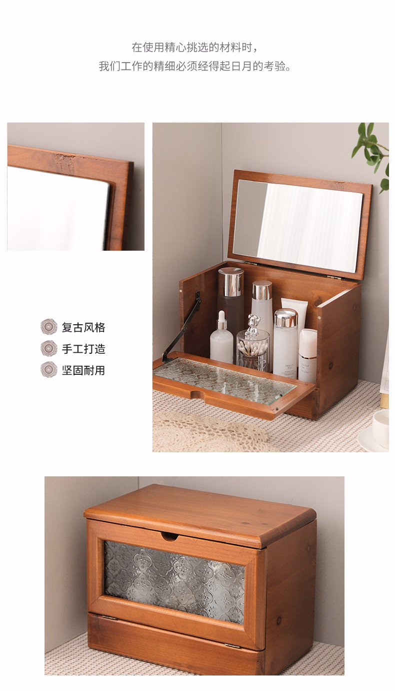 He Jiagong Vipero cosmetic mirror storage box integrated new desktop household cosmetics storage grid retro wooden large capacity default