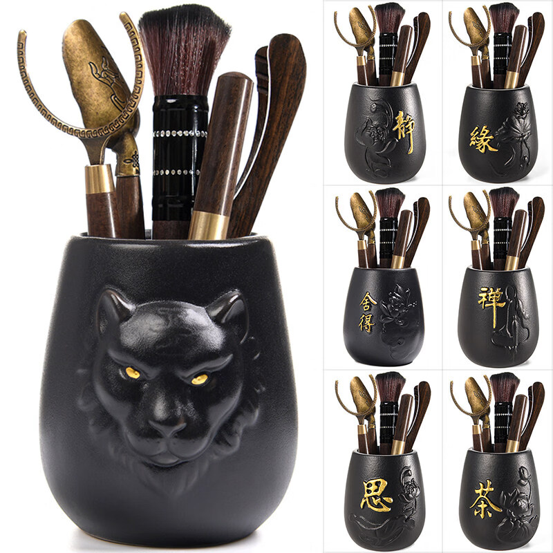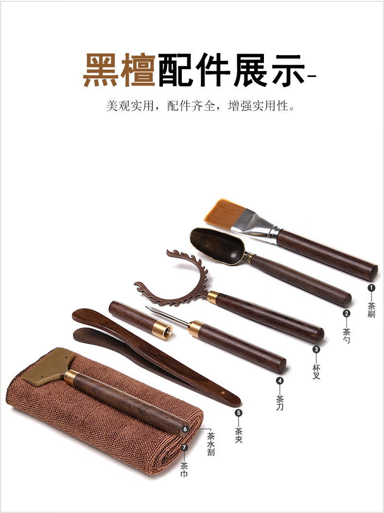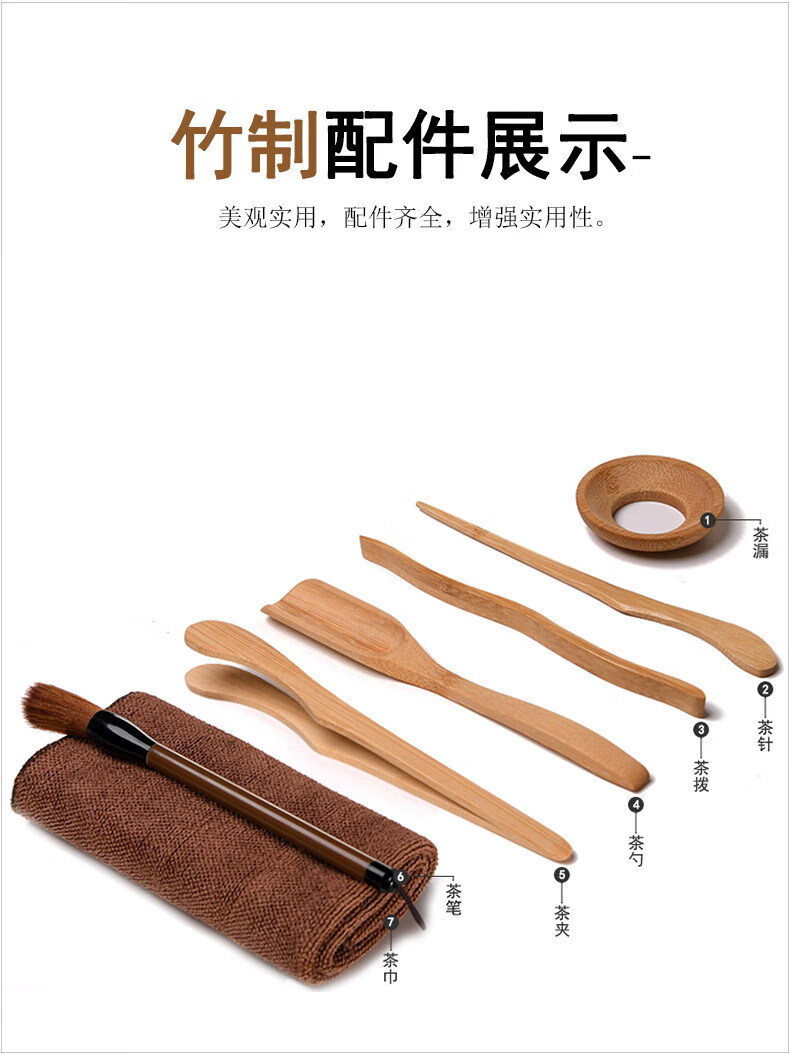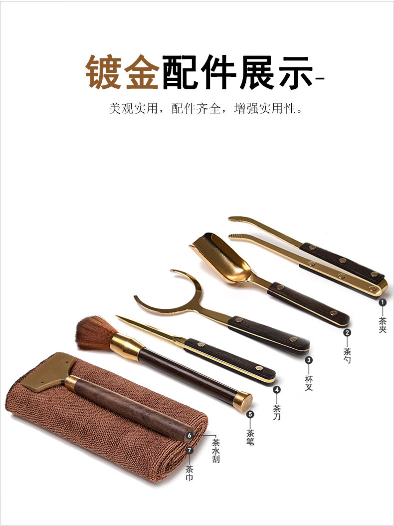 Jingdian Tea Ceremony Parts Kung Fu Tea Set Six Gentlemen Combination Set Tea Clamp Teaspoon Tea Scratcher Bamboo Sauce Gold-plated Eight-piece Set