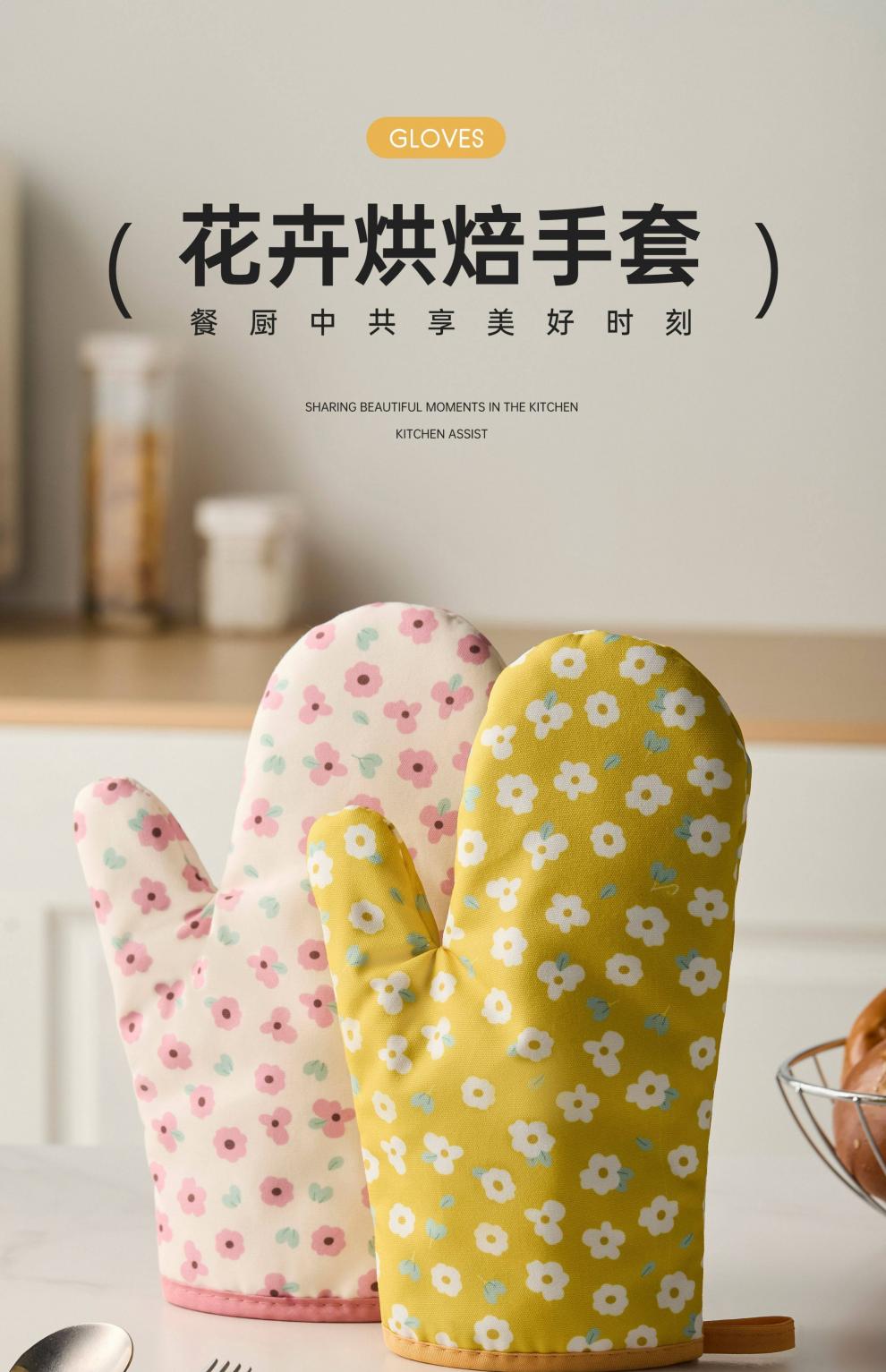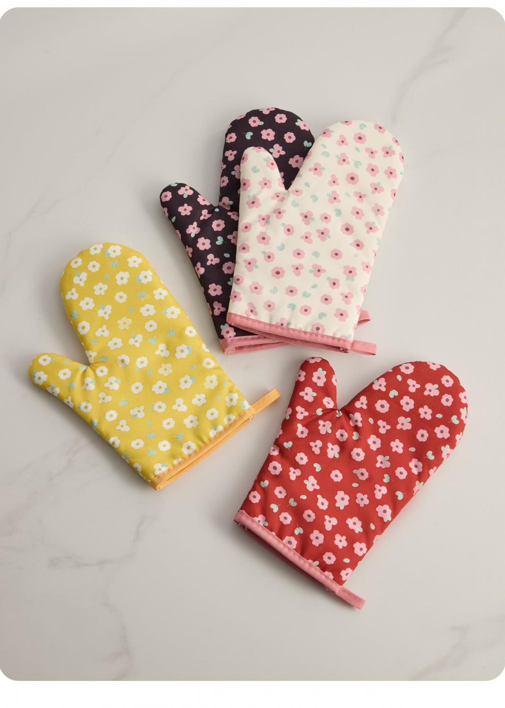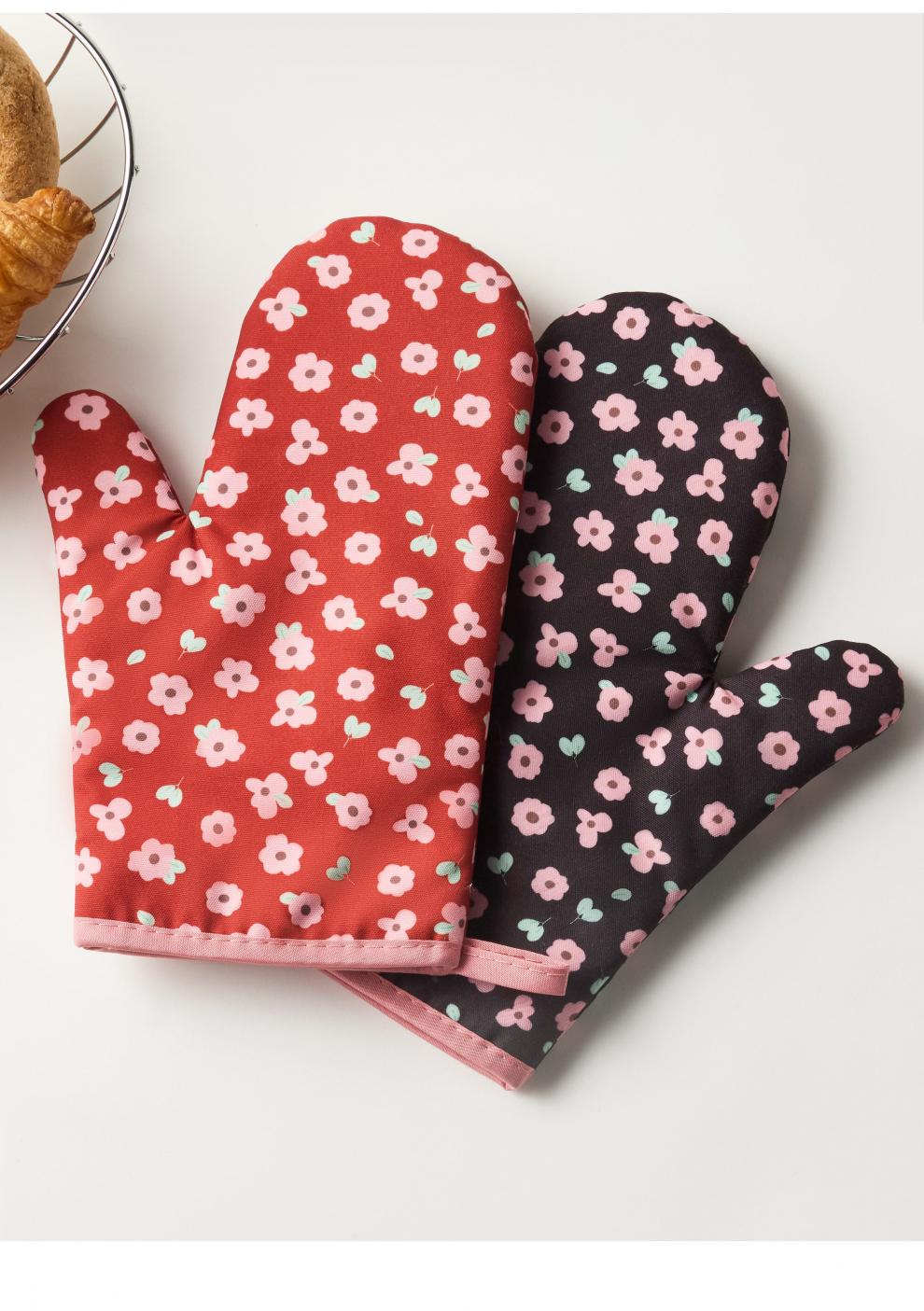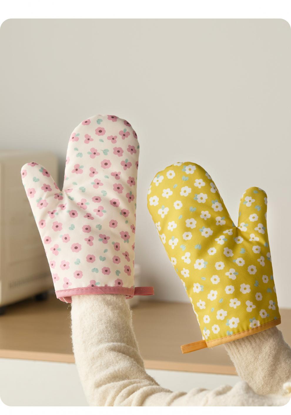 Jingdian anti-scalding gloves thickened insulated kitchen oven special microwave baking gloves Luo Qifuli flower baking gloves 2 pack