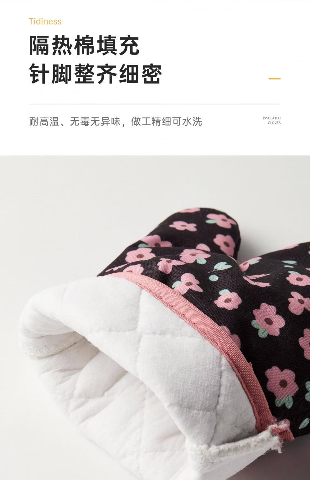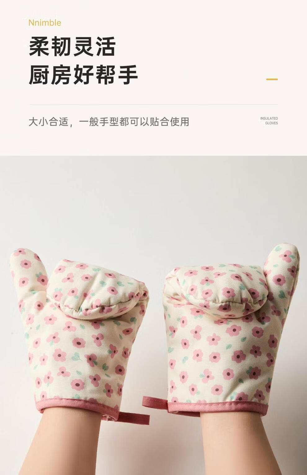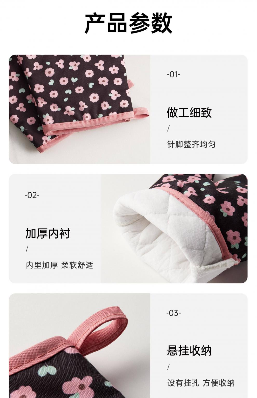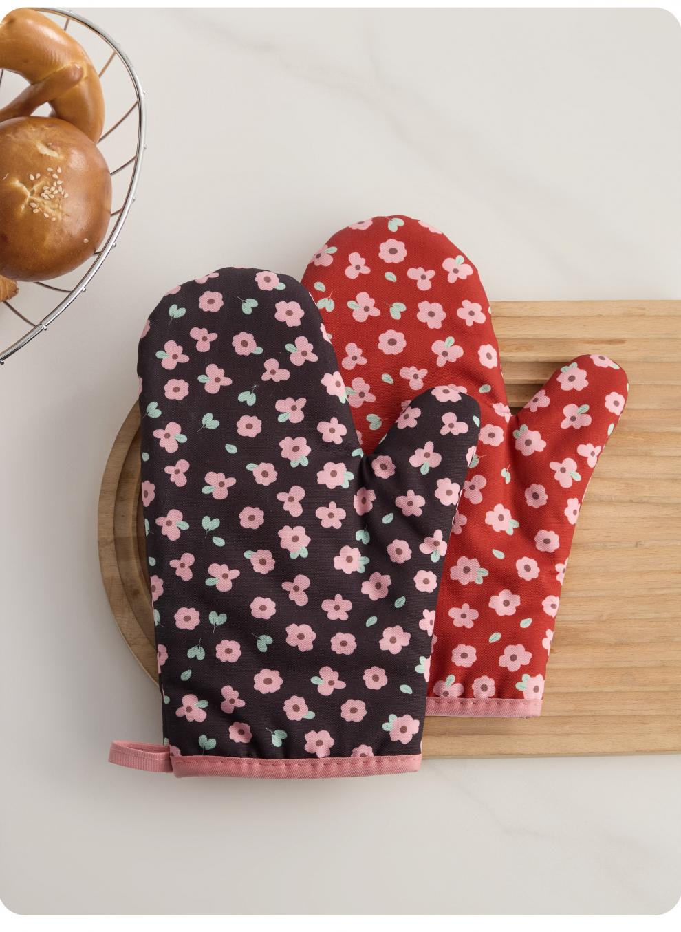 Jingdian anti-scalding gloves thickened insulated kitchen oven special microwave baking gloves Luo Qifuli flower baking gloves 2 pack